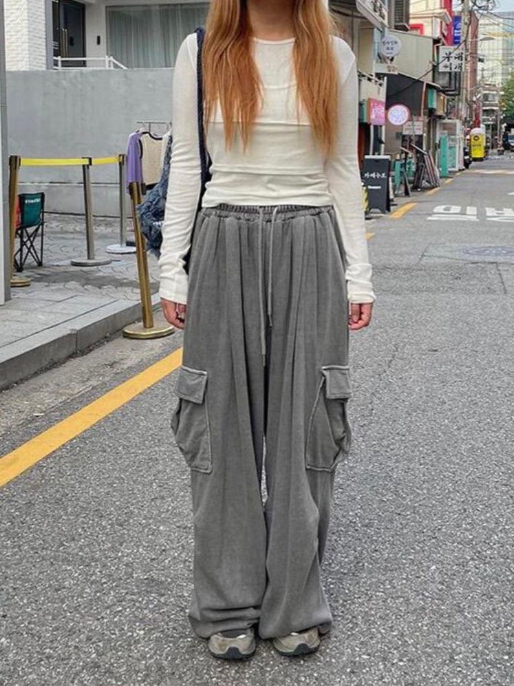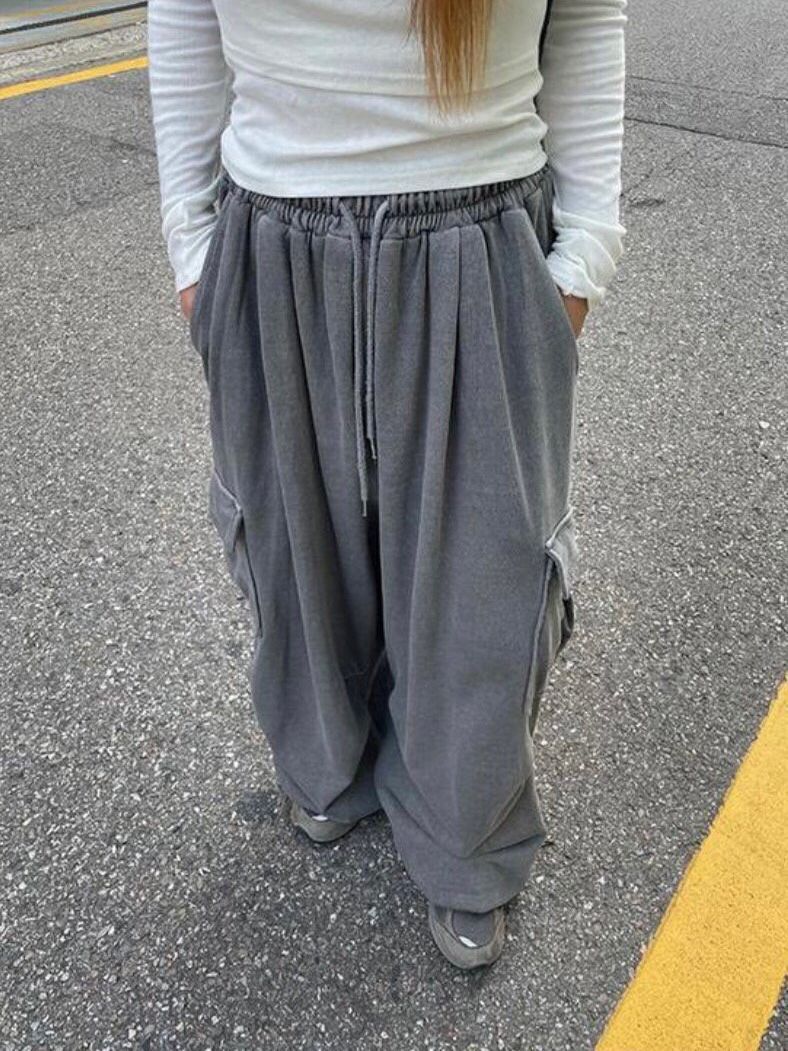洗水淨色工裝鬆身運動褲 GLEE-006P