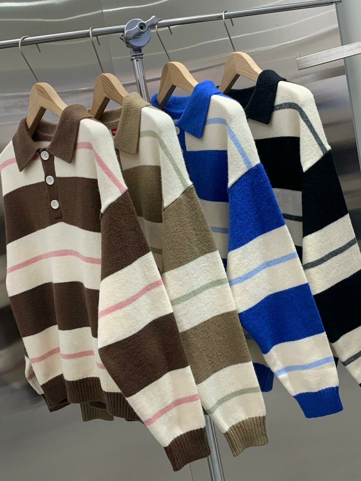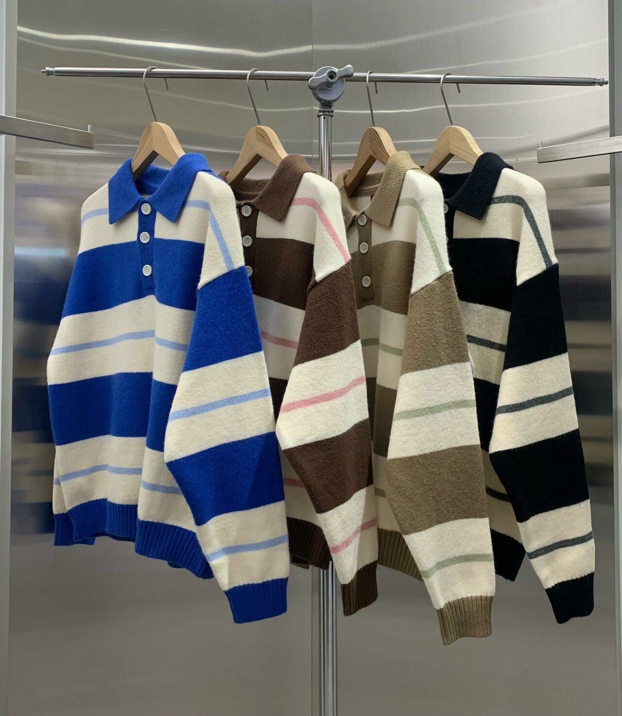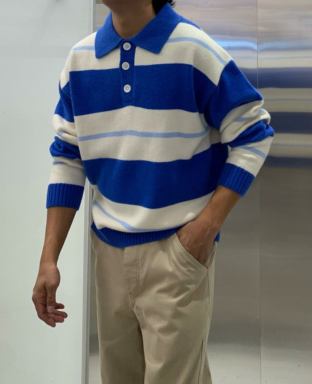 反領直間長袖針織衫 HAND-046T