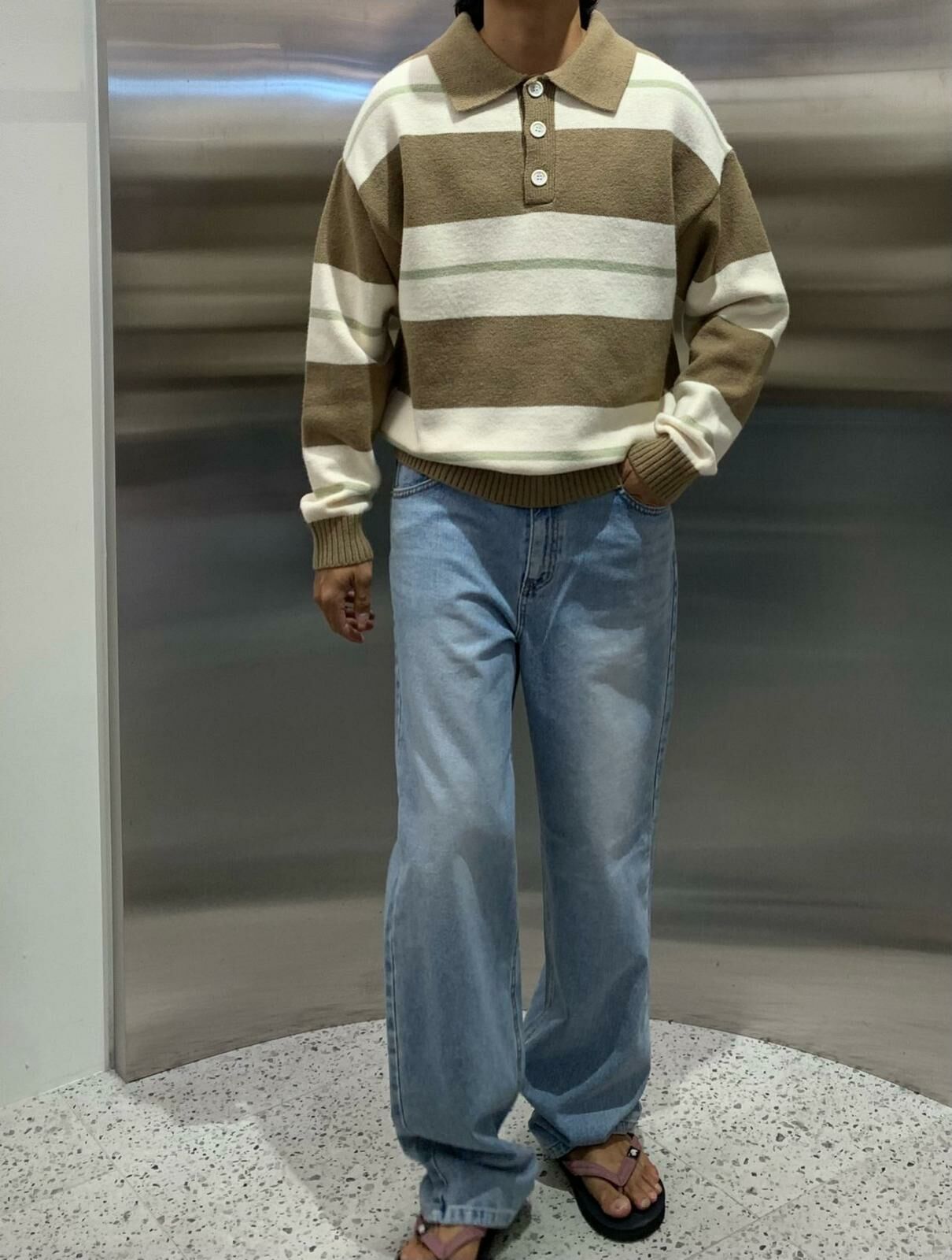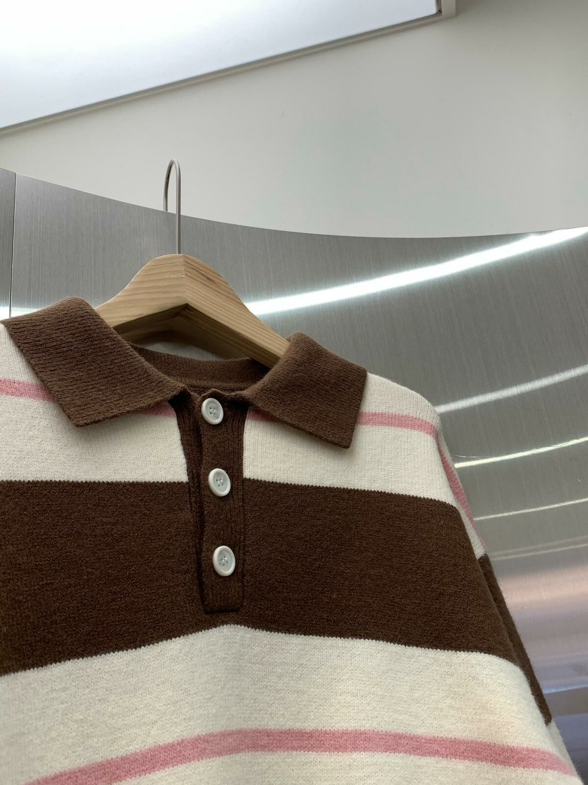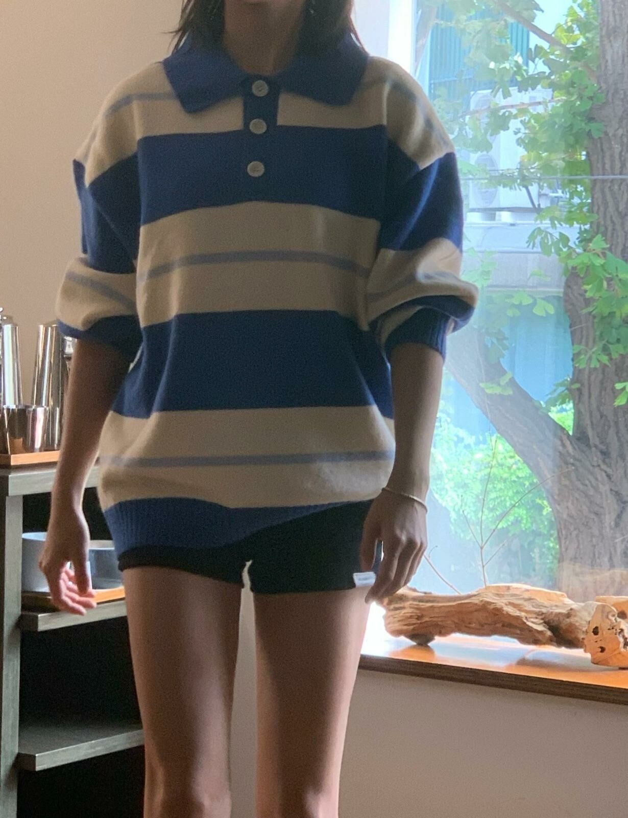 反領直間長袖針織衫 HAND-046T