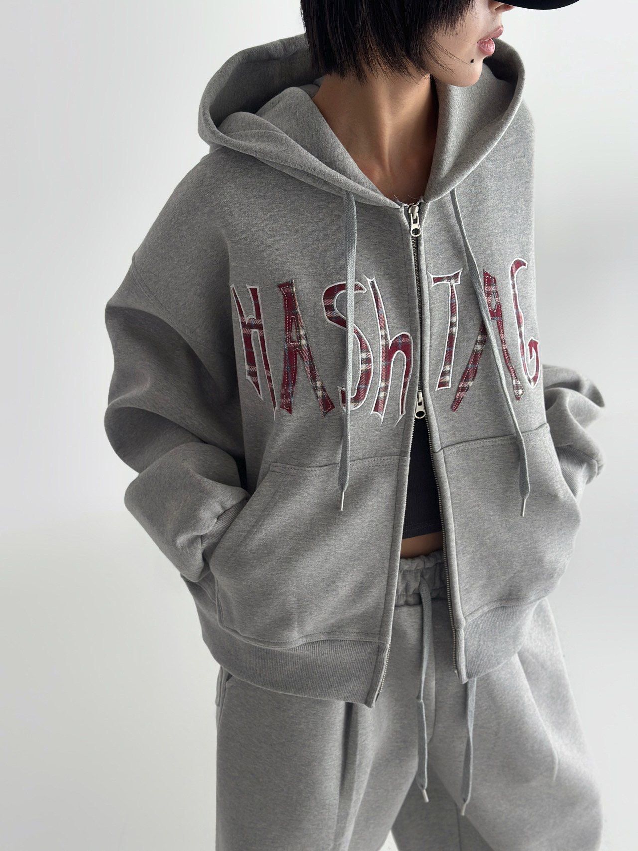 英文字連帽拉鍊外套 Hashtag-066JK