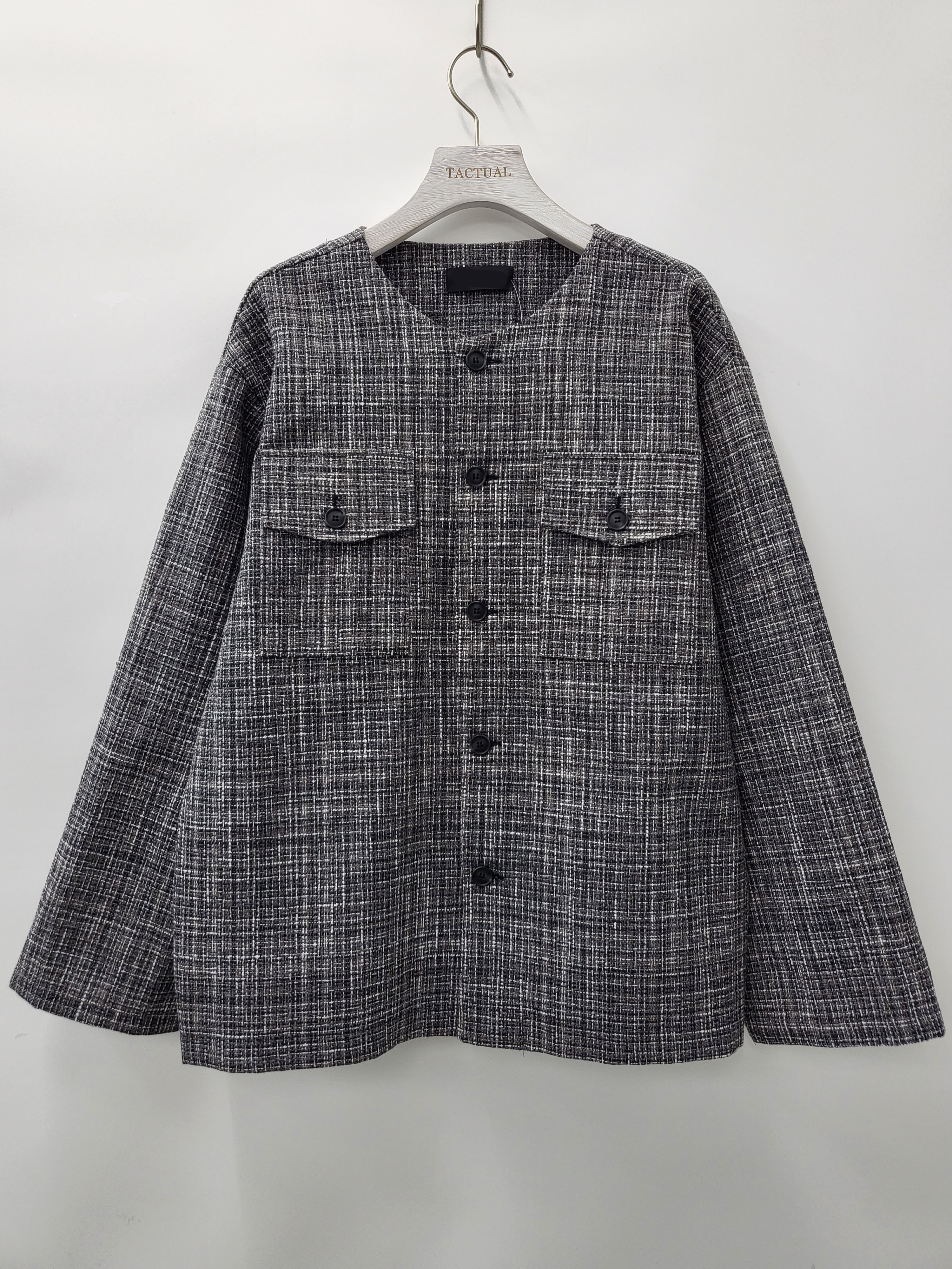 圓領格紋開胸外套 JK2391
