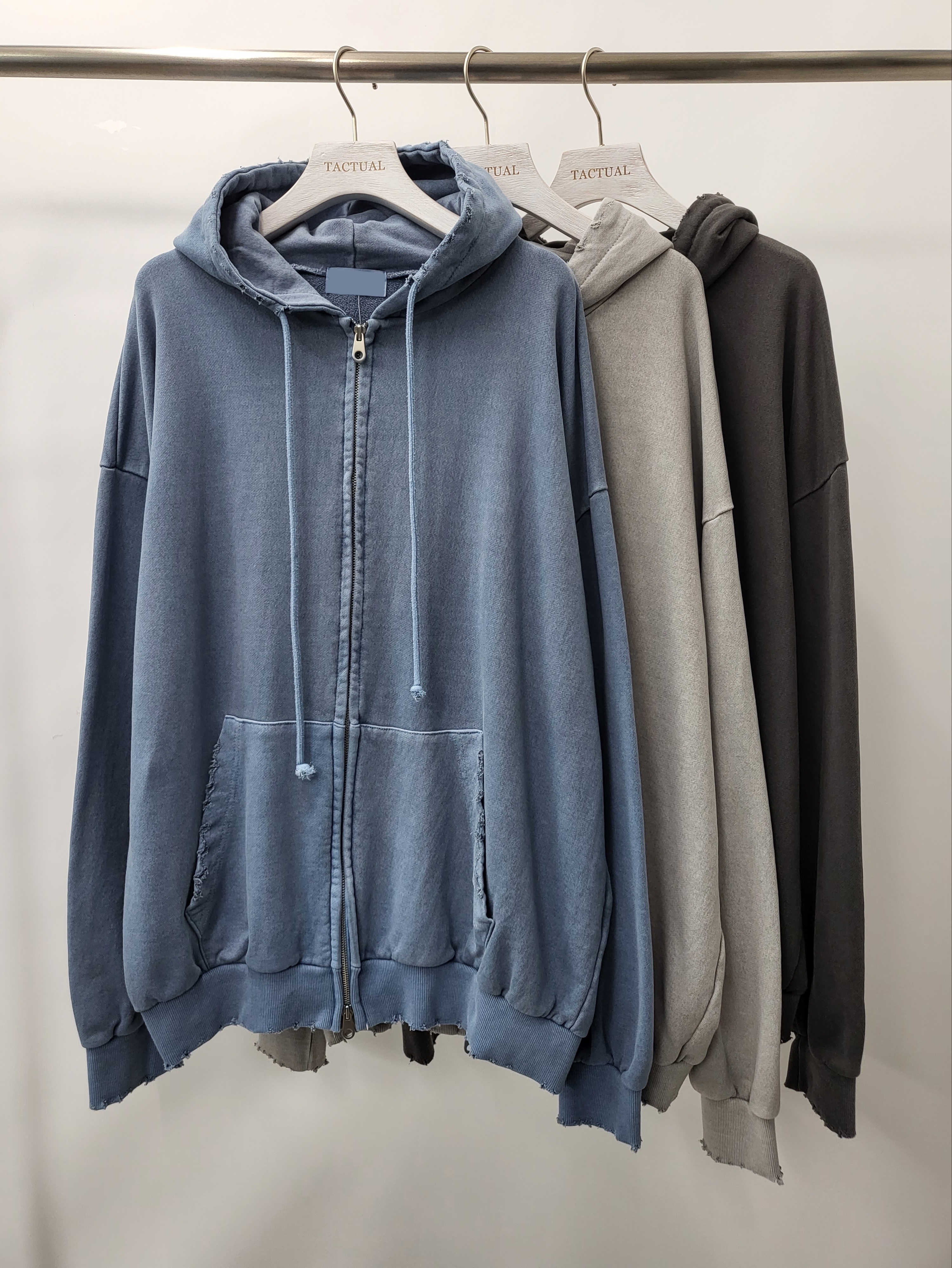 洗水破洞拉鍊連帽外套 JK2397