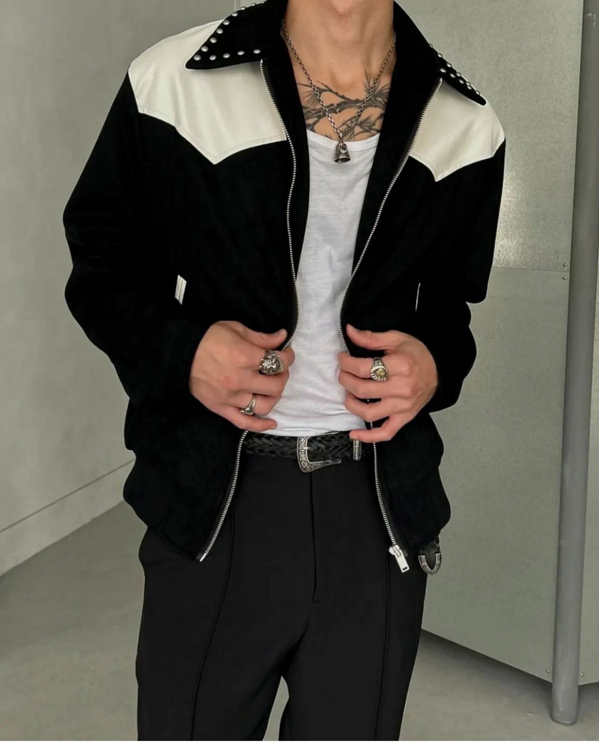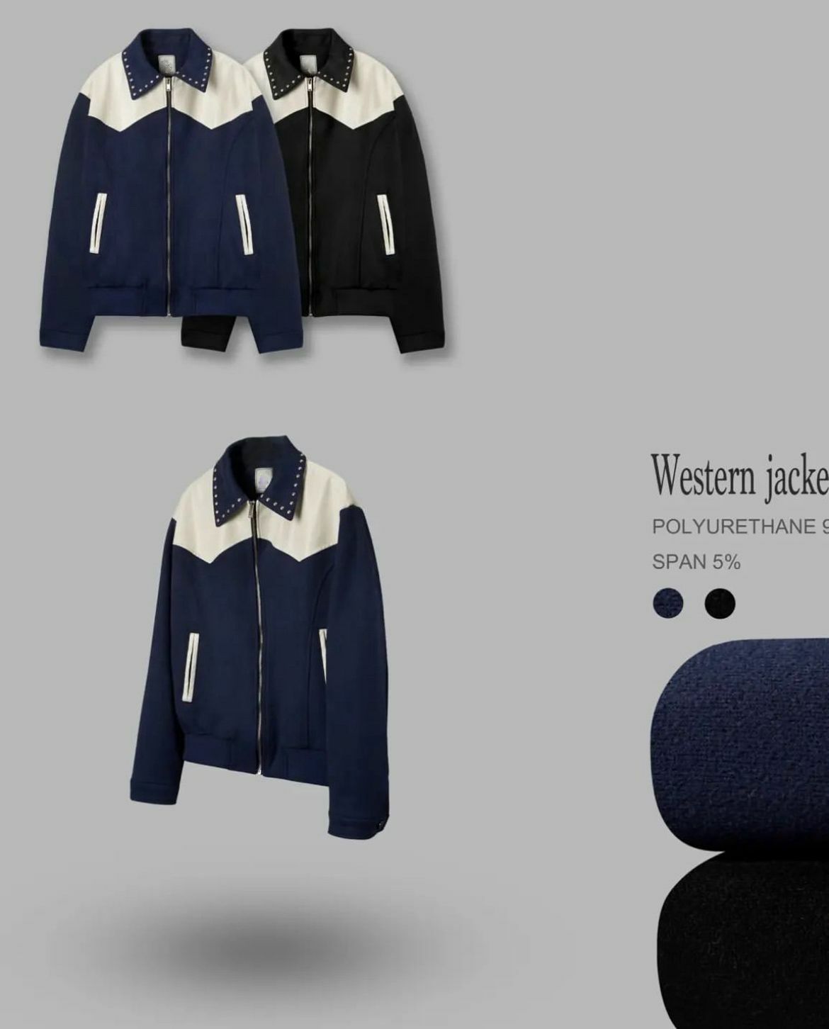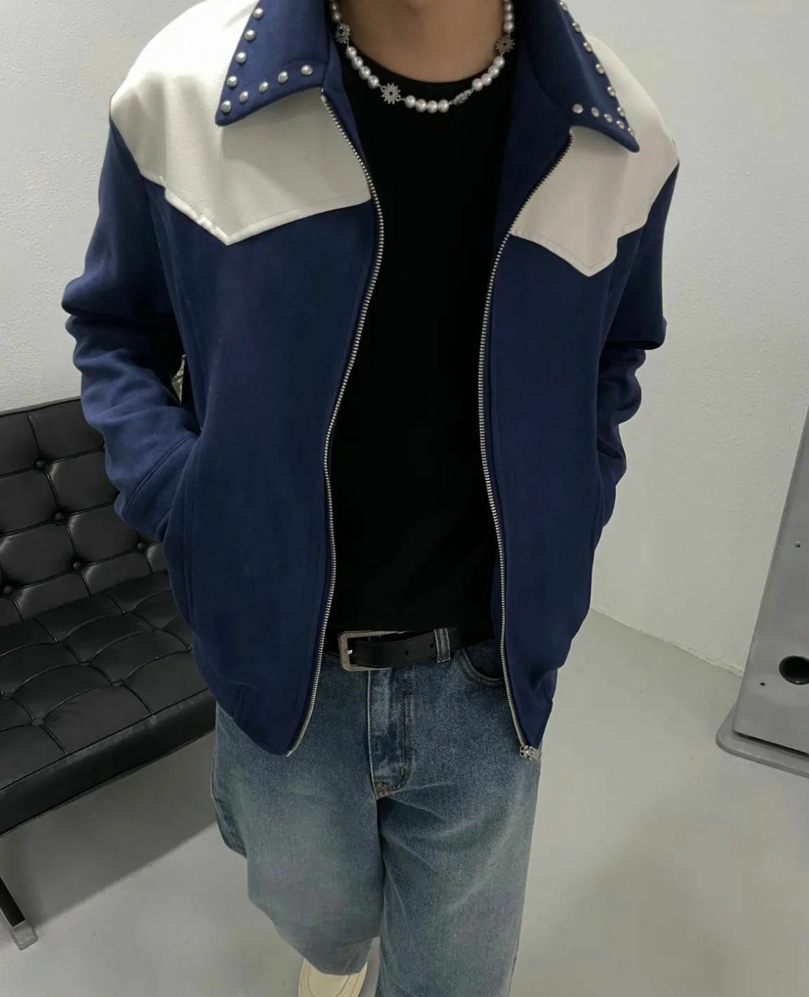 鍋釘反領猄面拼皮拉鍊外套 JK2475