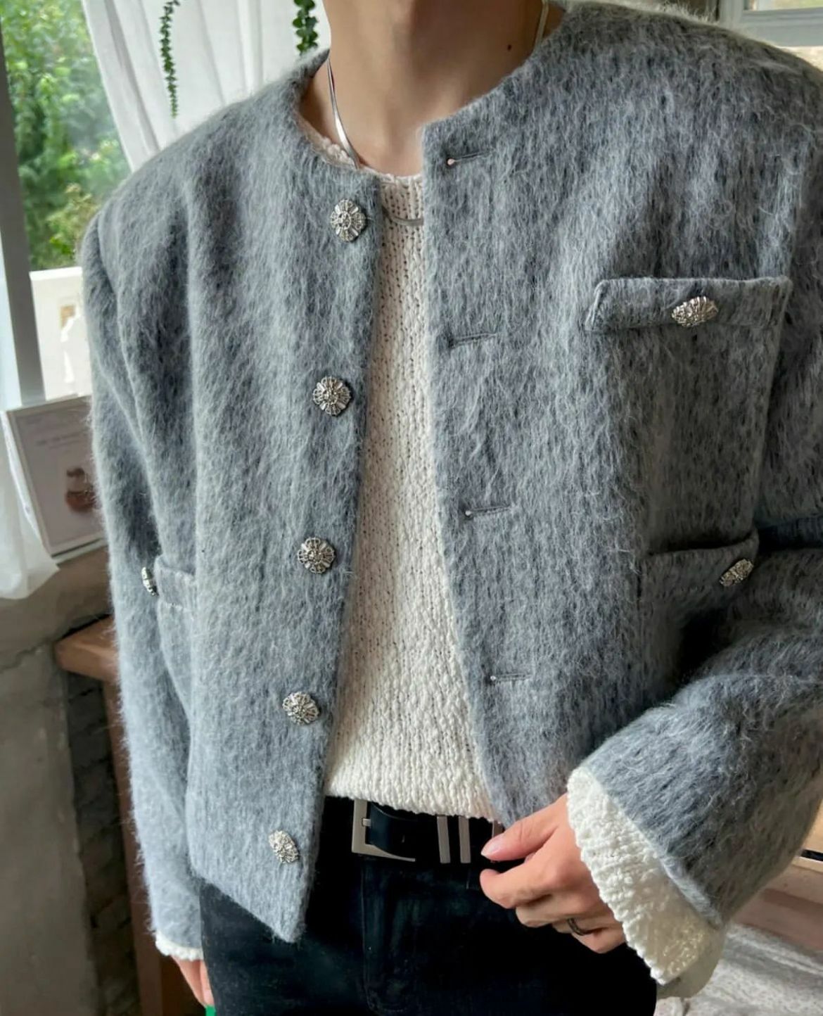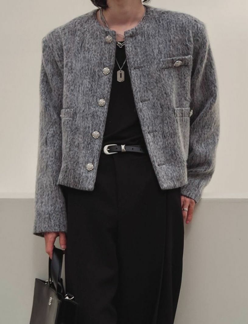 混色圓領短身開胸外套 JK2477