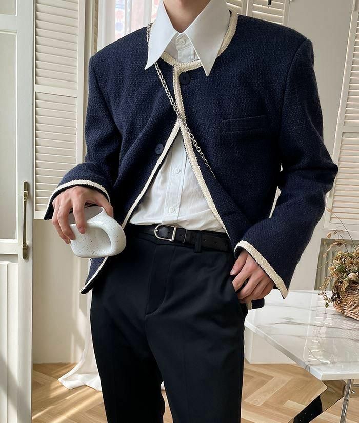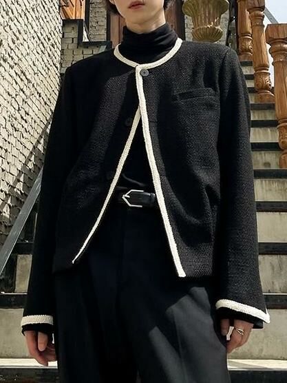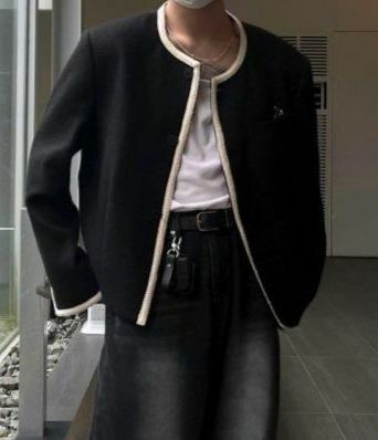 拼色圓領開胸外套 JK2495