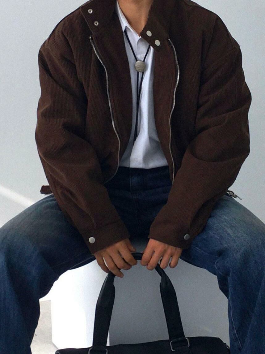 企領燈心絨拉鍊外套(夾棉) JK2605