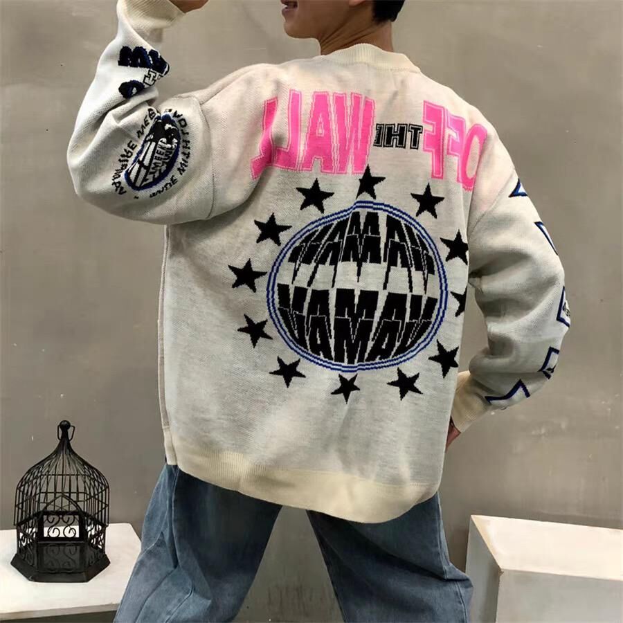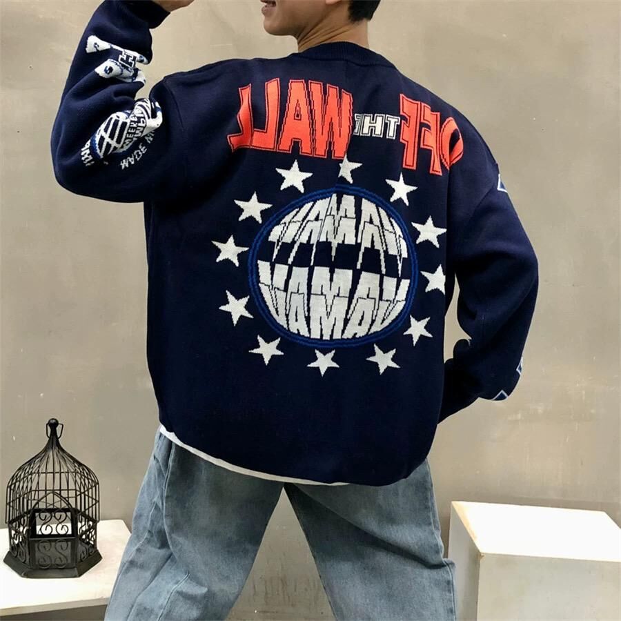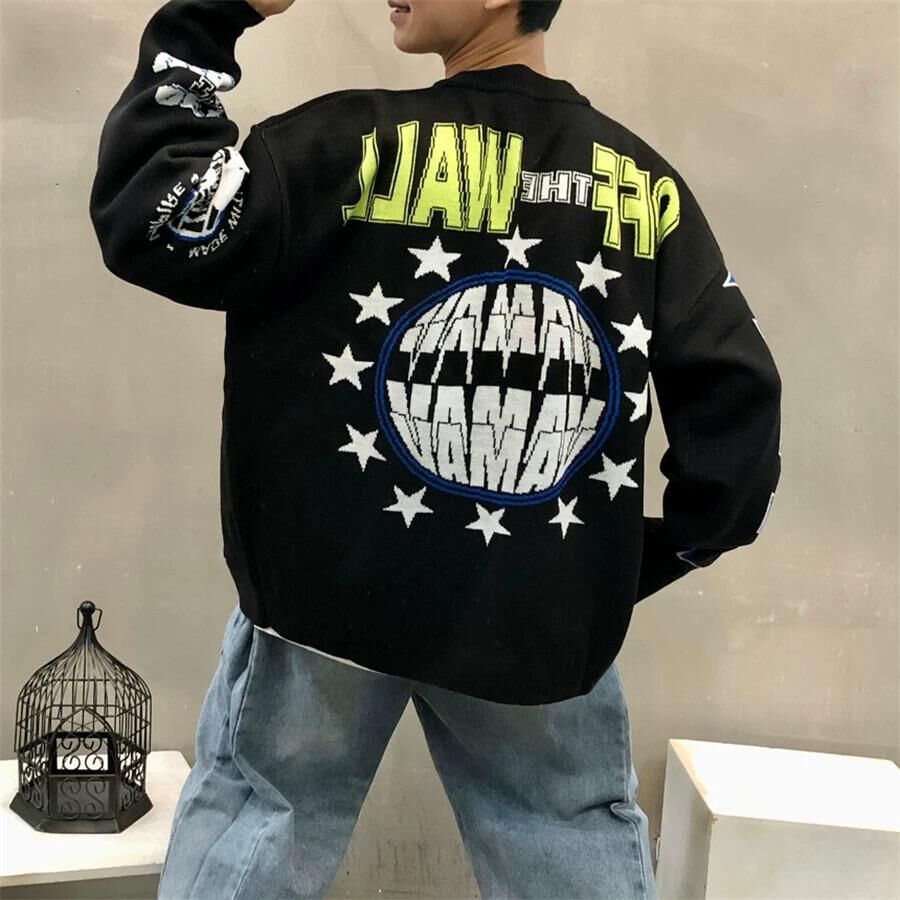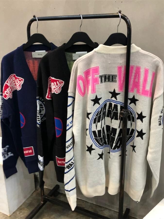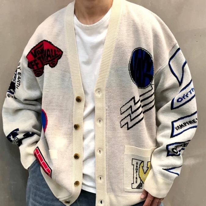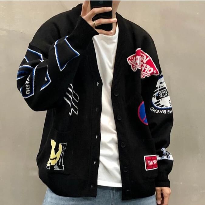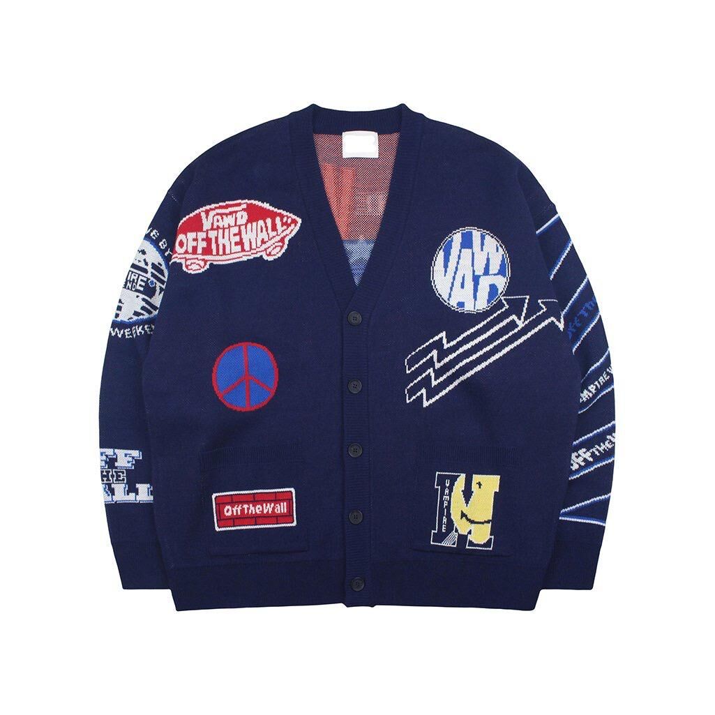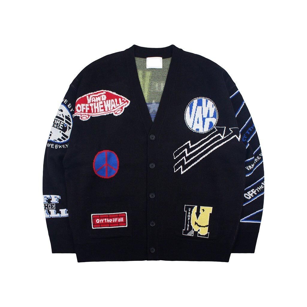 英文字圖案開胸針織外套 JK2641