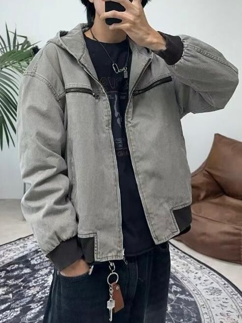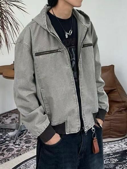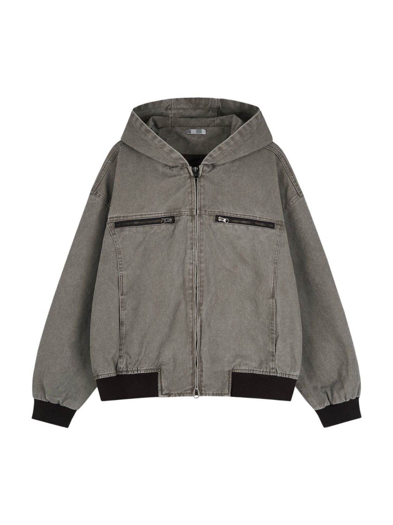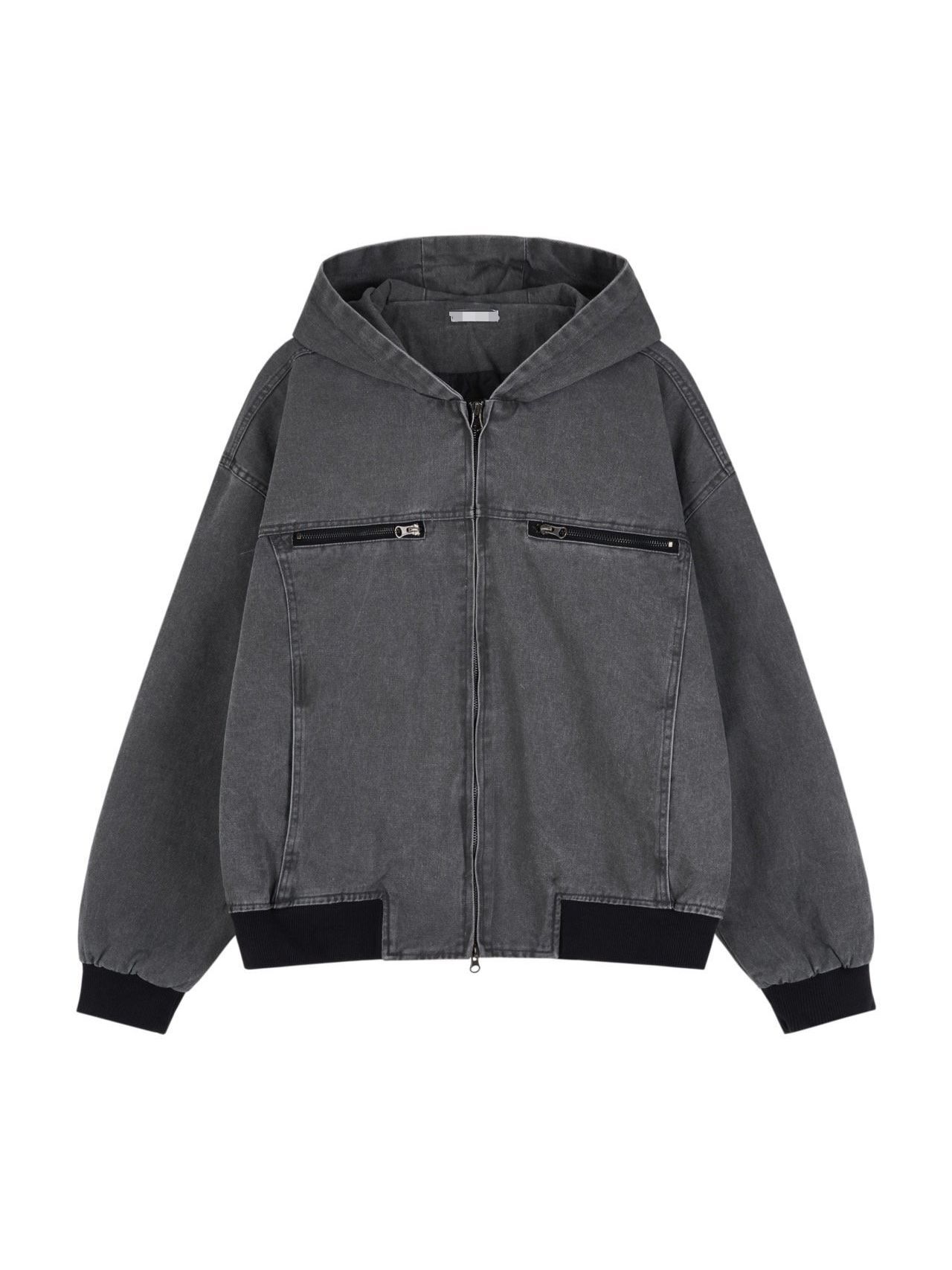 洗水淨色連帽拉鍊外套 JK2674
