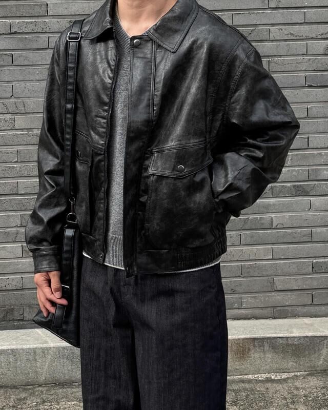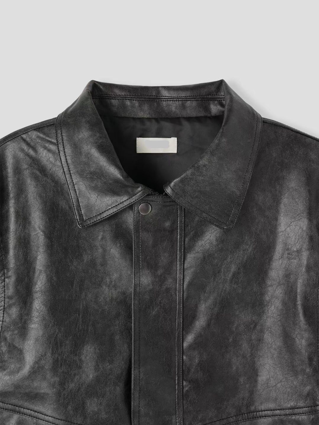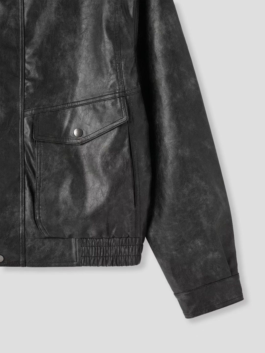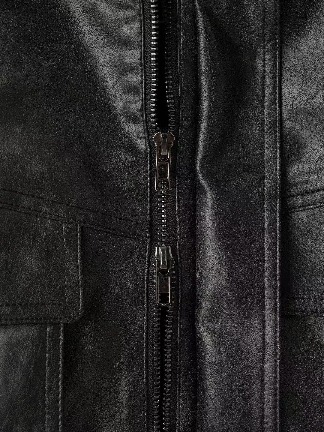 洗水反領拉鍊合成皮褸 JK2709