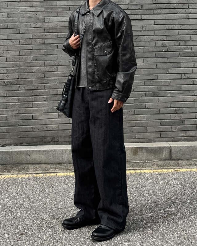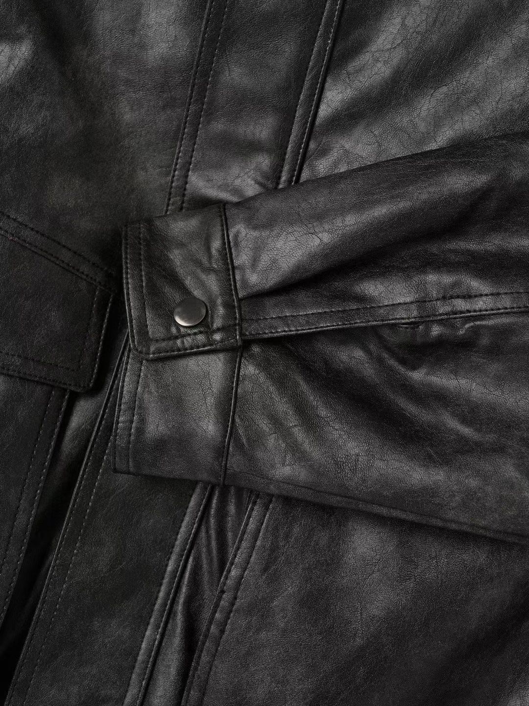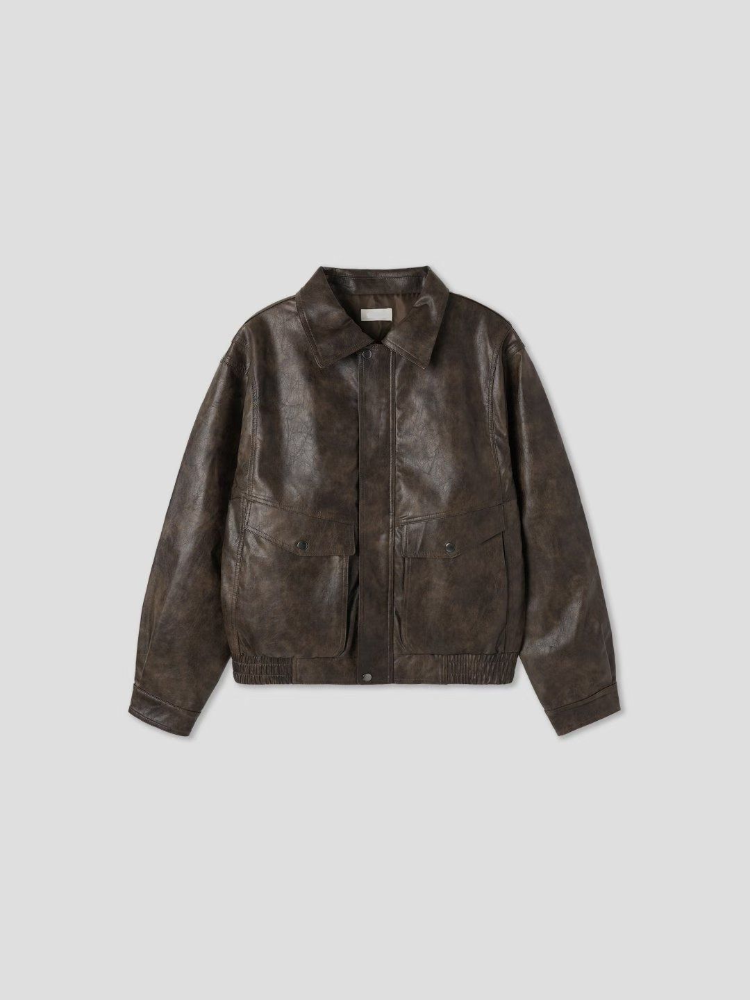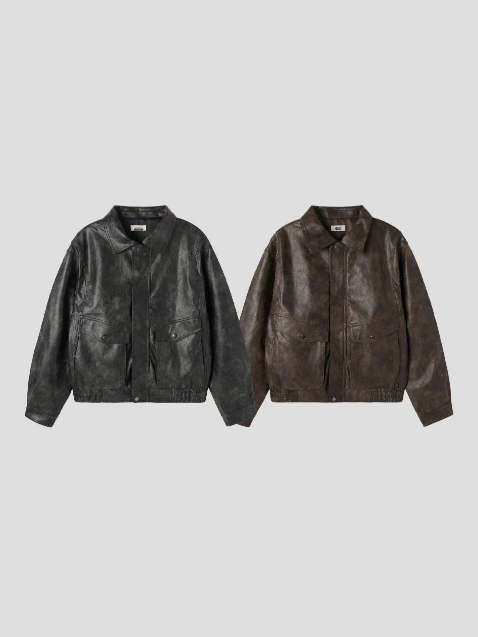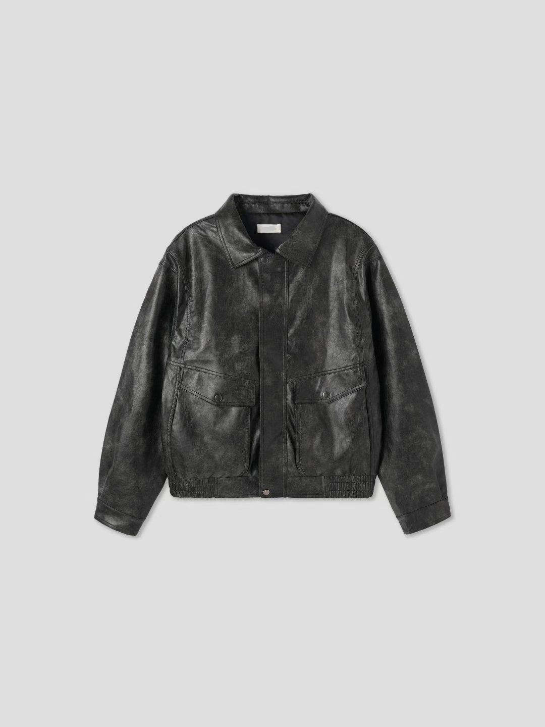 洗水反領拉鍊合成皮褸 JK2709