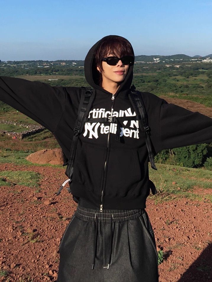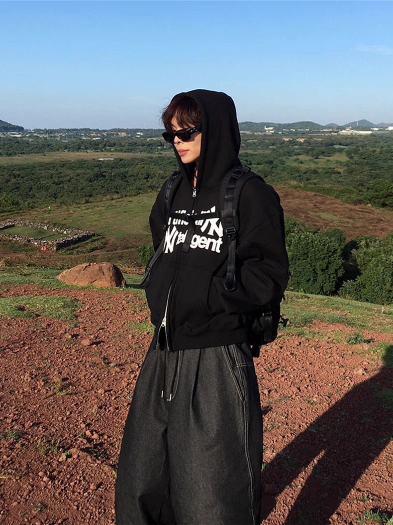 英文字連帽拉鍊外套(薄抓毛底) JK2724