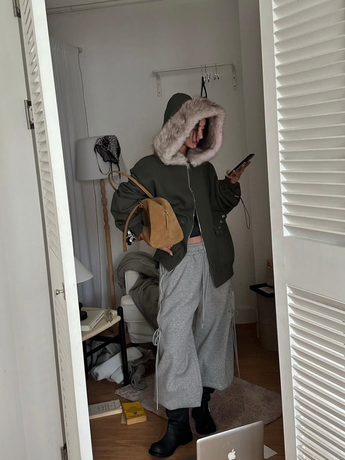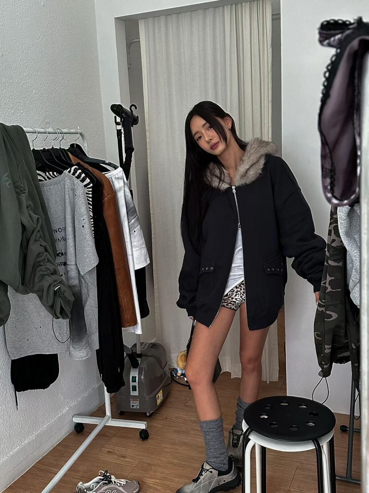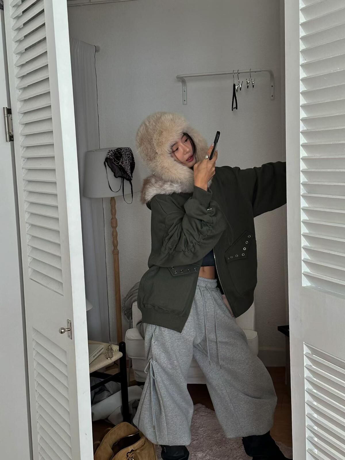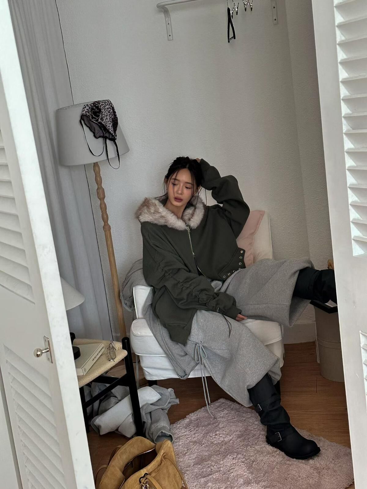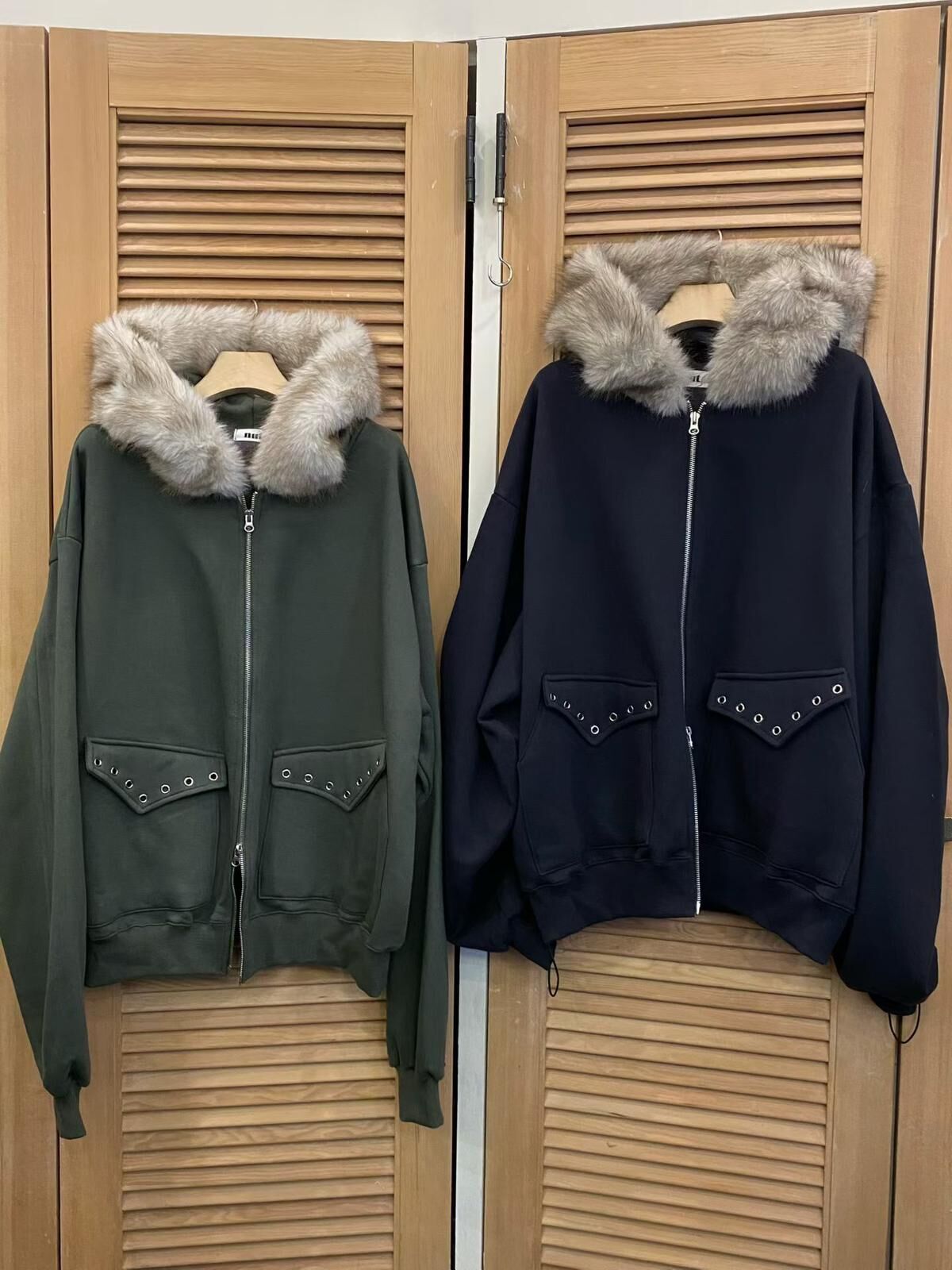 毛毛帽拉鍊外套(薄抓毛底) JK2764