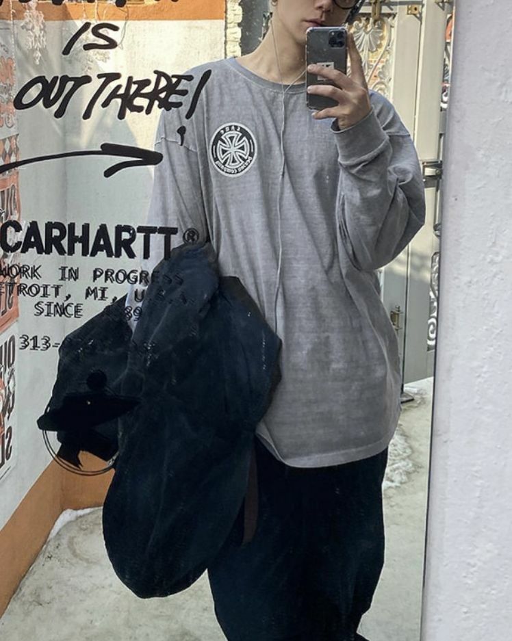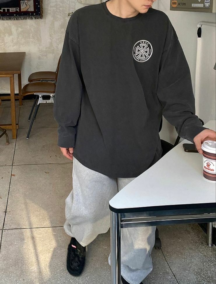 洗水英文字圖案長袖衫 LANE-057T