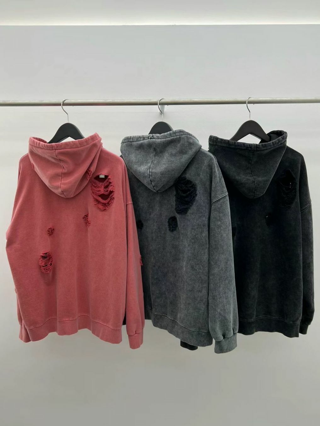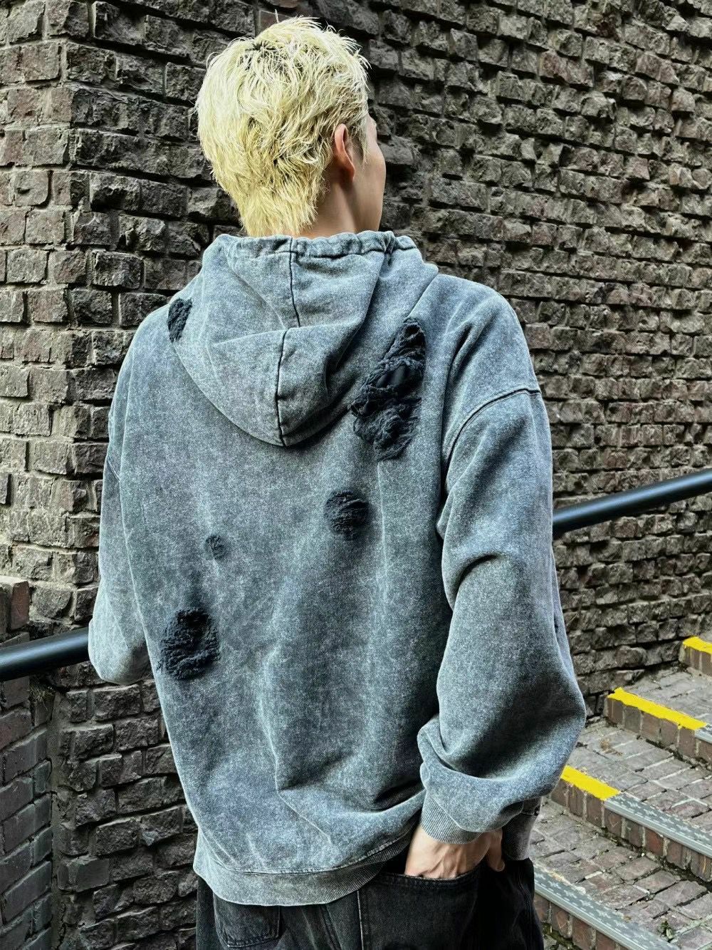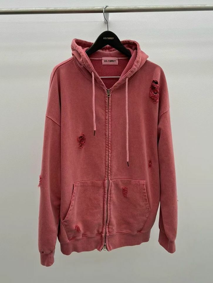 洗水破洞連帽拉鍊外套 LIL-015JK