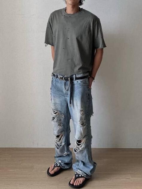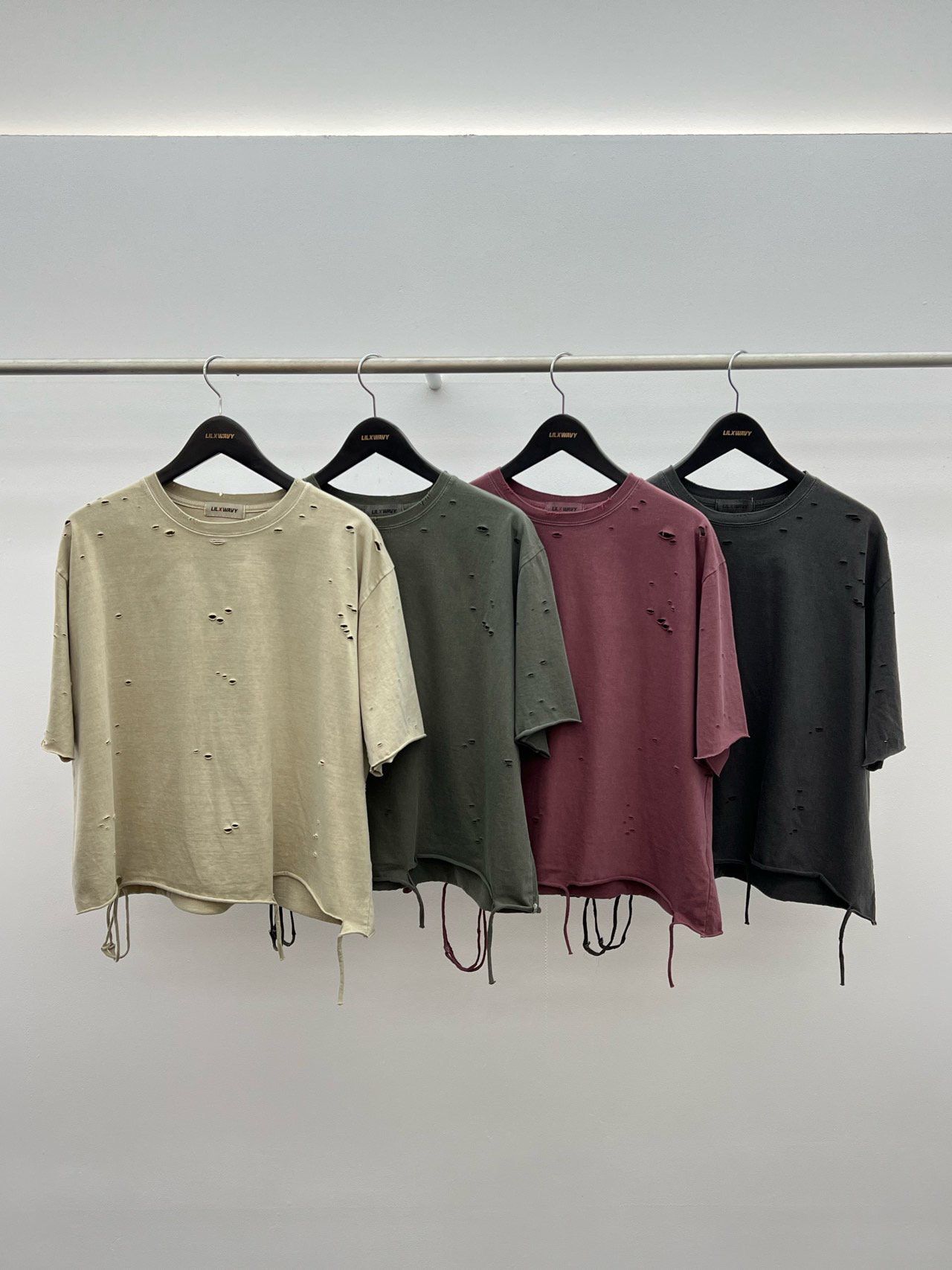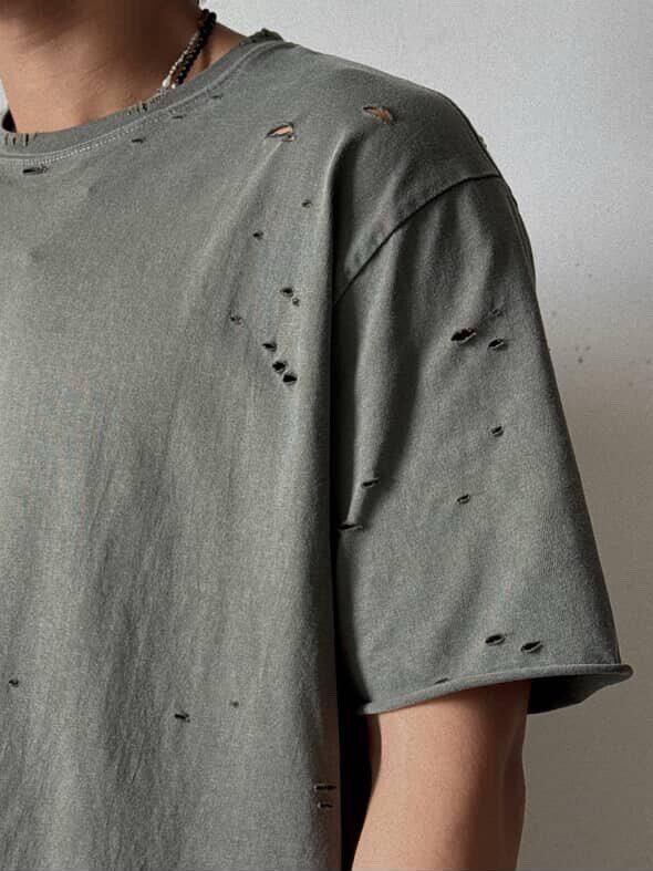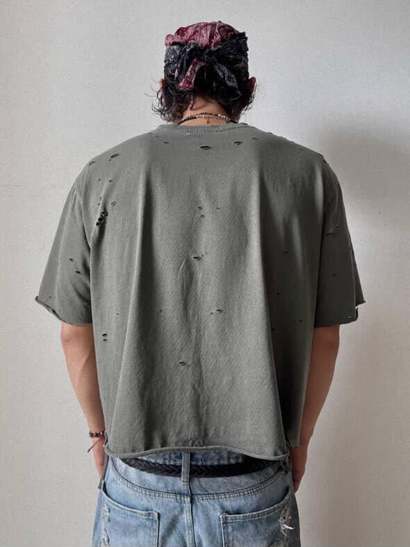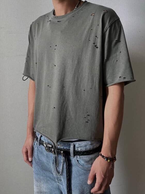 洗水淨色破洞Boxy短袖Tee LIL-060T