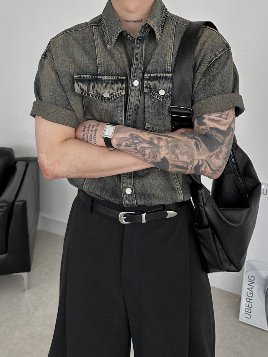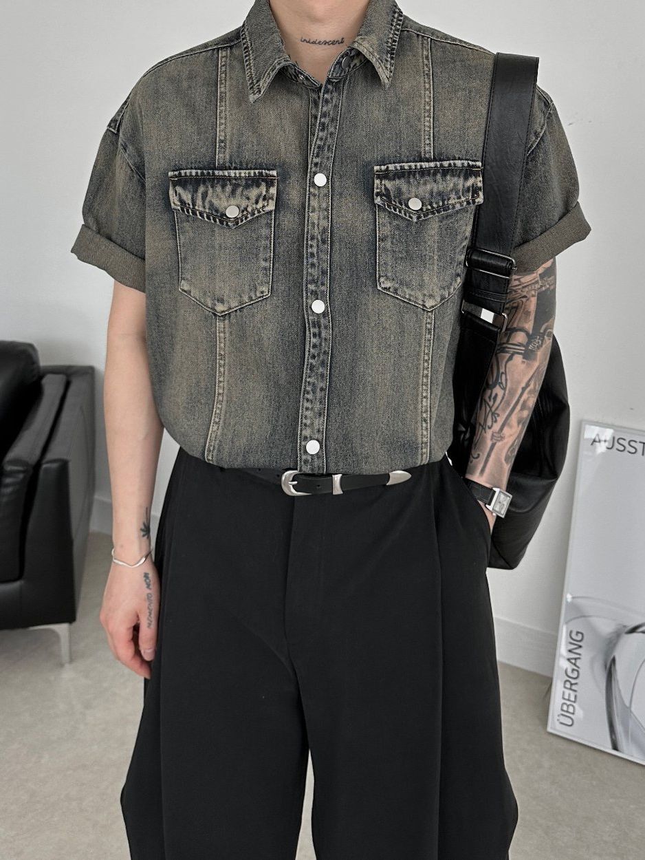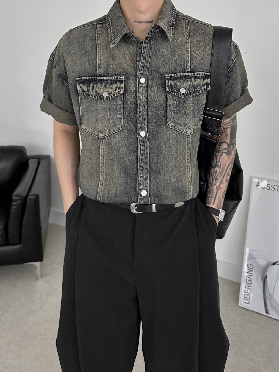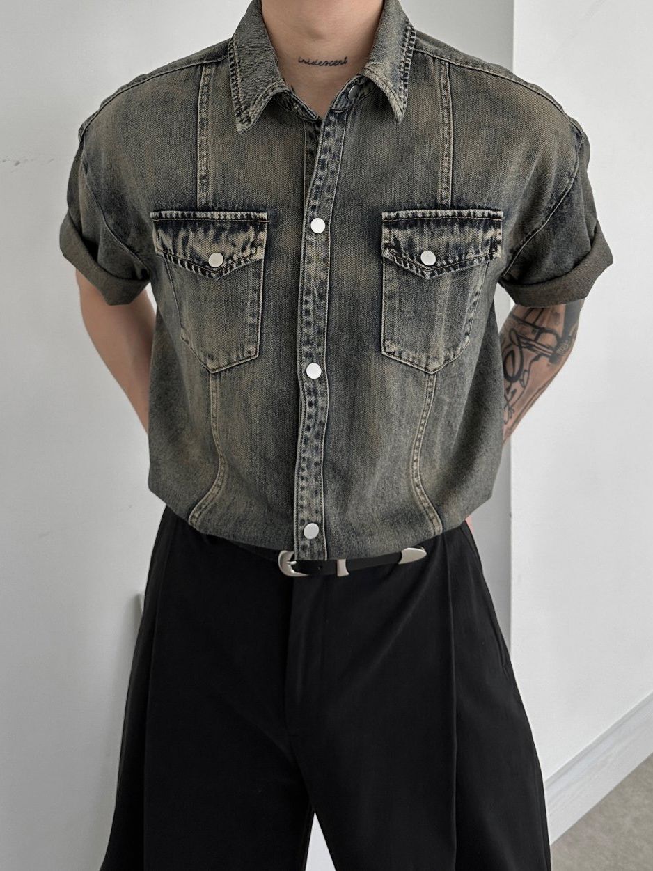 洗水牛仔短袖恤衫 Lowell-042S