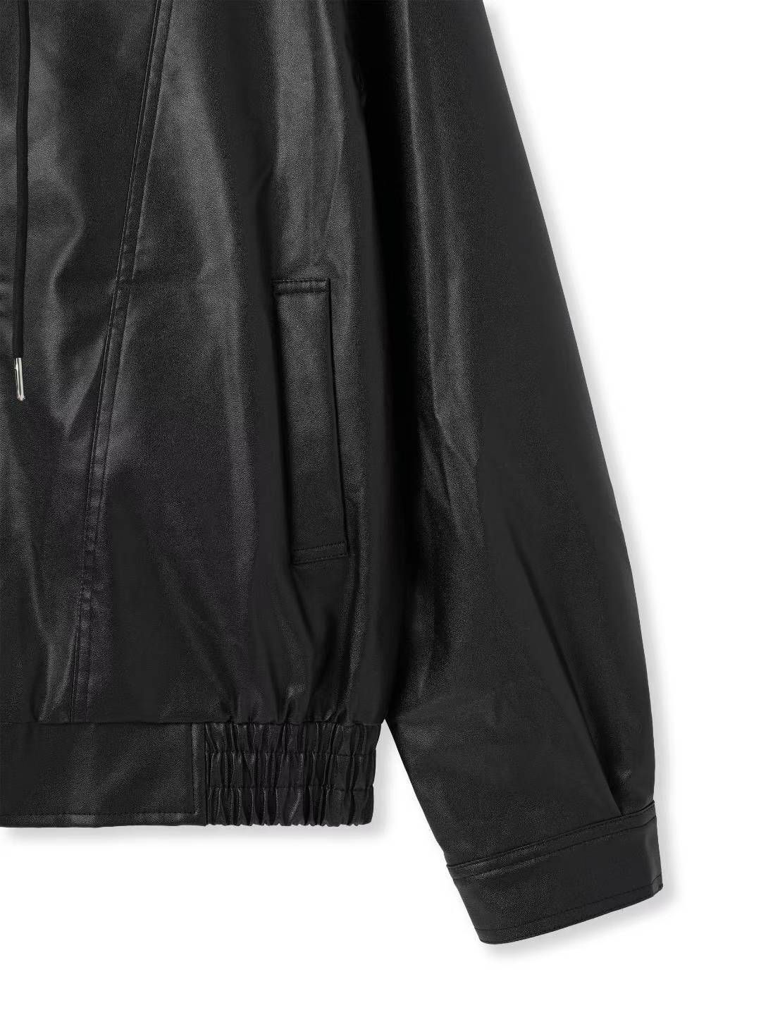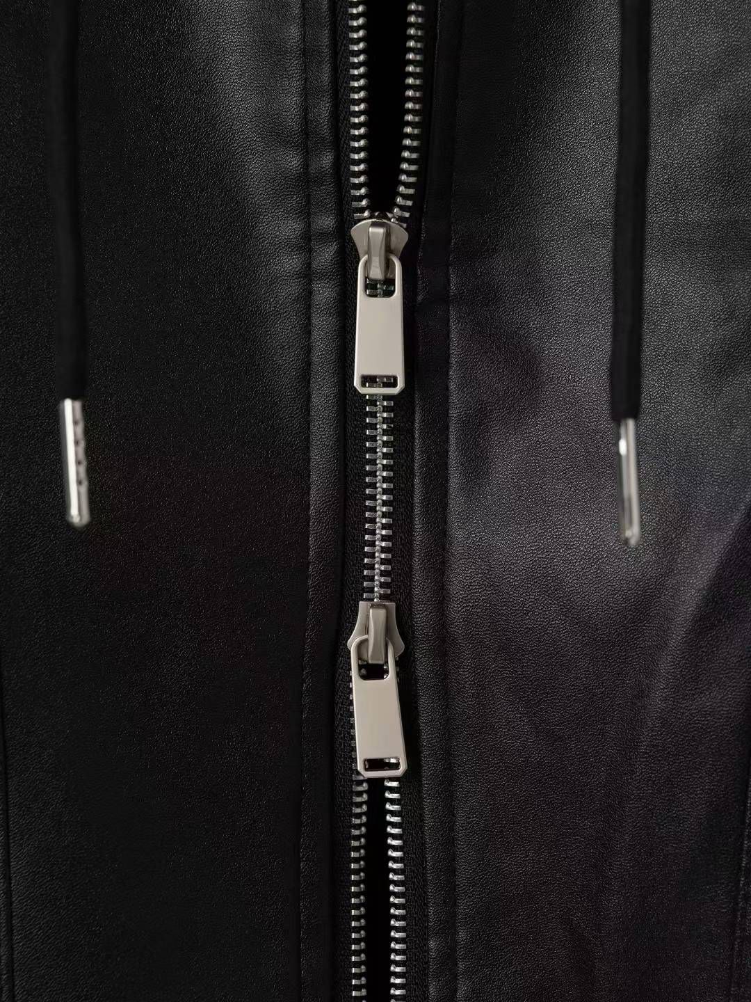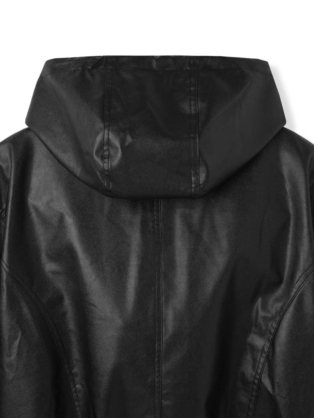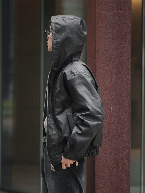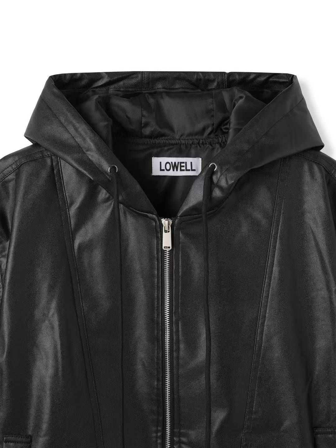 淨色連帽拉鍊合成皮褸 Lowell-085Jk