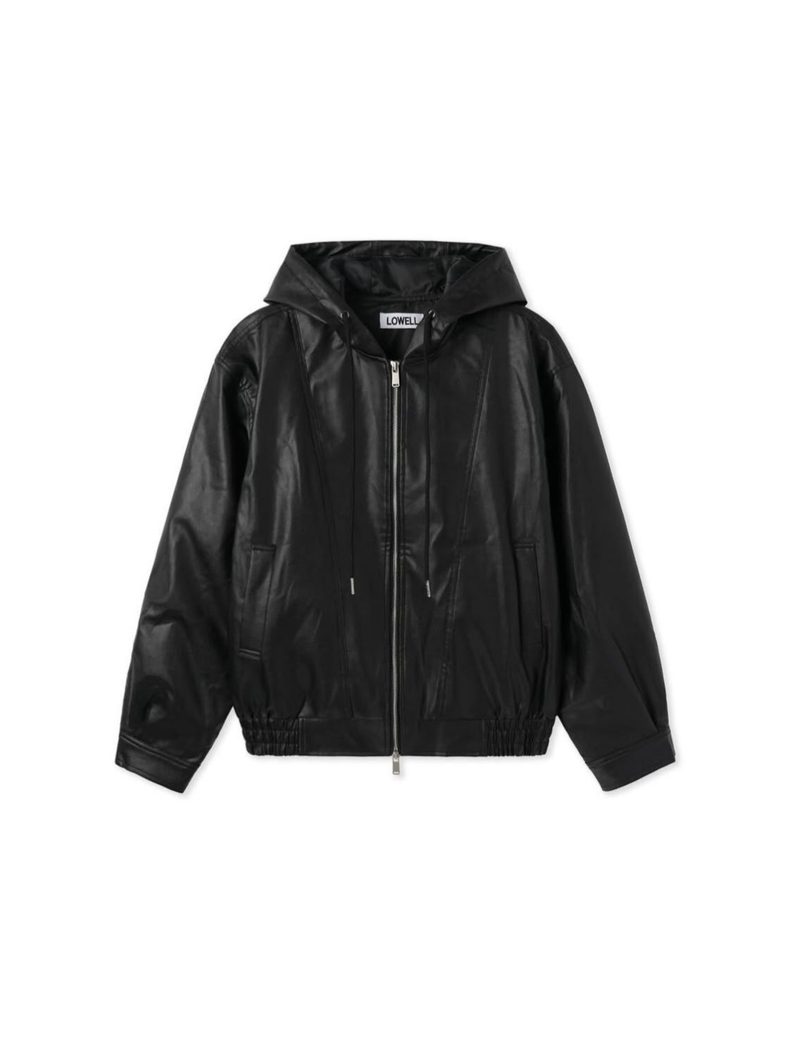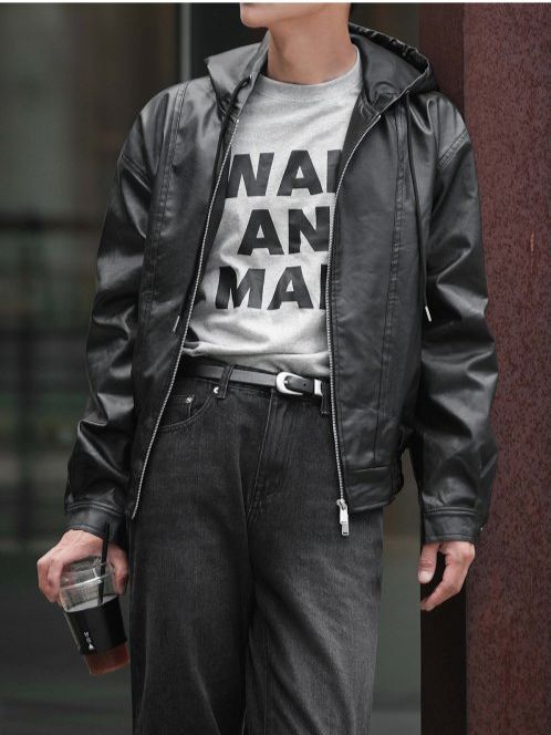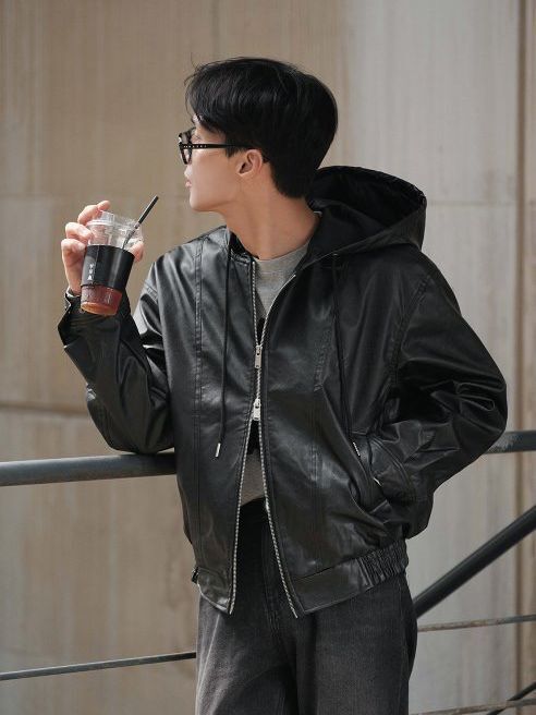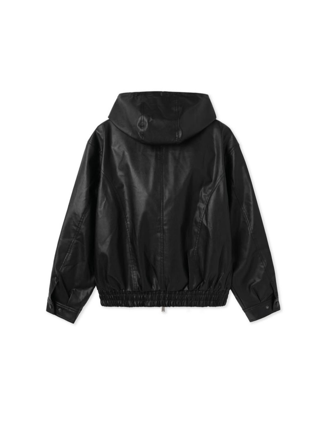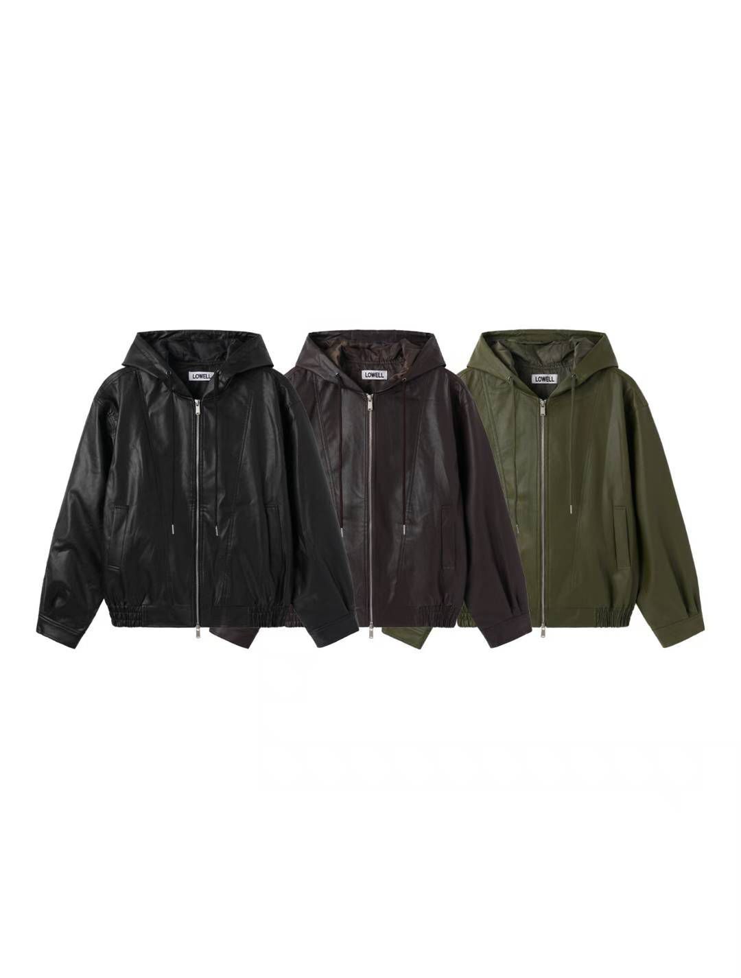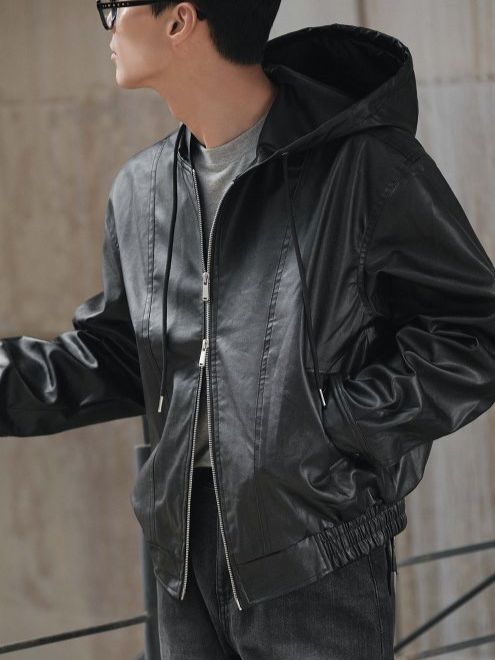 淨色連帽拉鍊合成皮褸 Lowell-085Jk