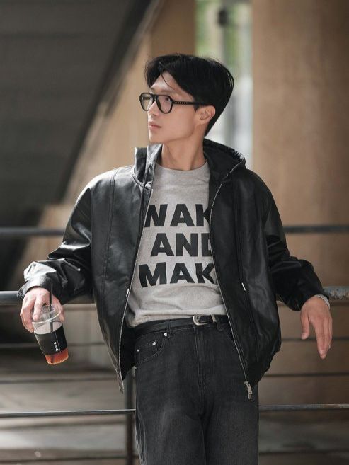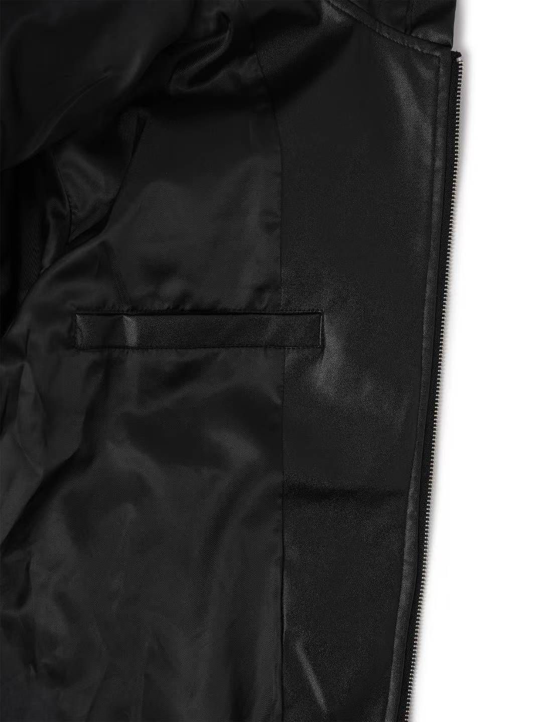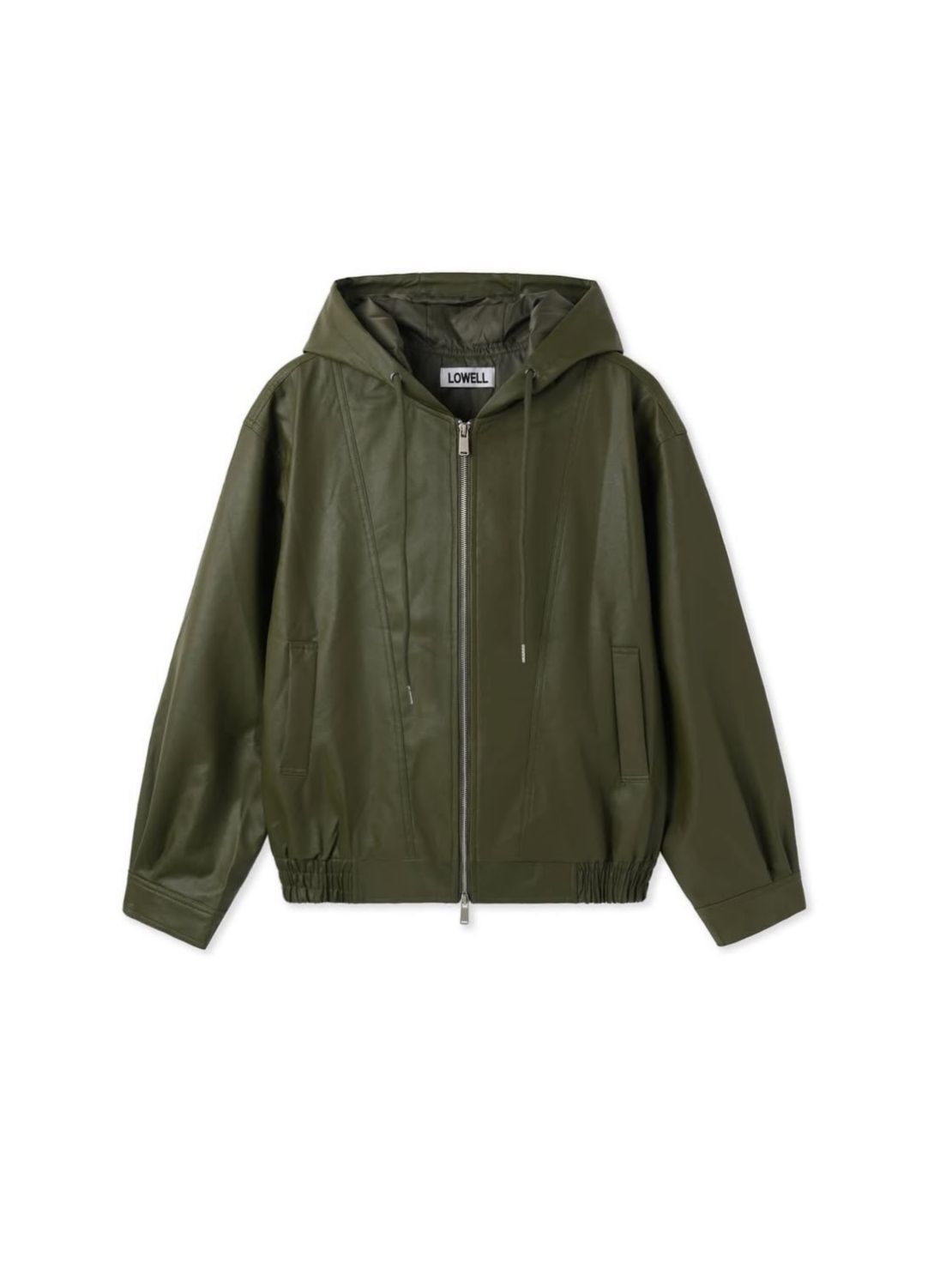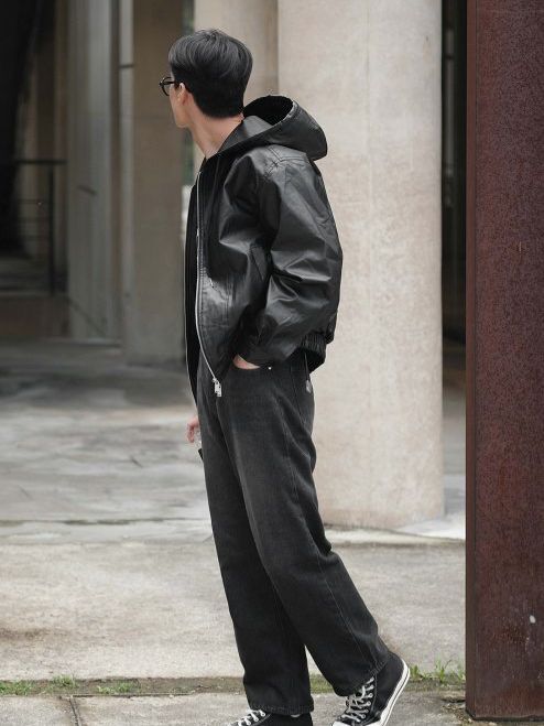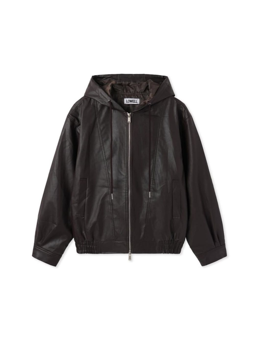 淨色連帽拉鍊合成皮褸 Lowell-085Jk