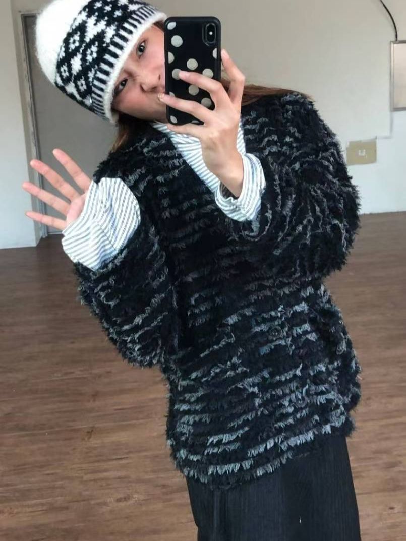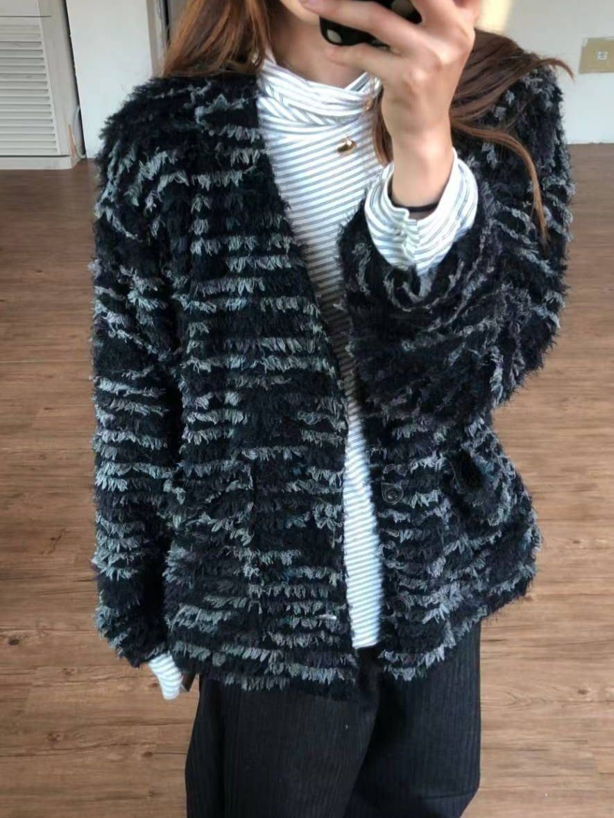 橫紋開胸針織外套 MALENKII-185JK
