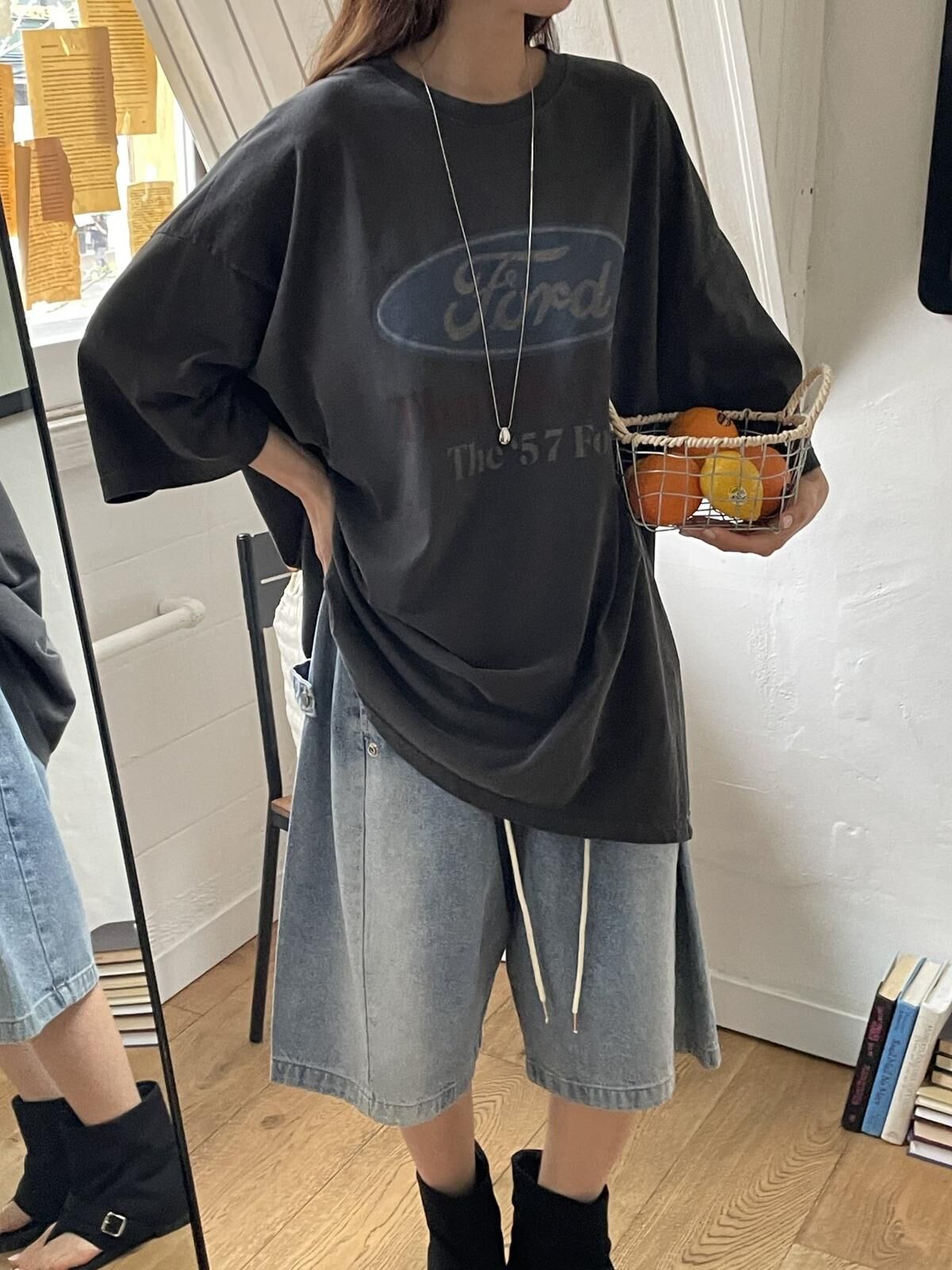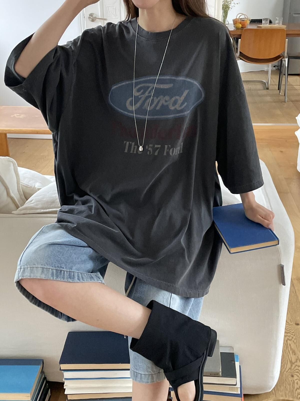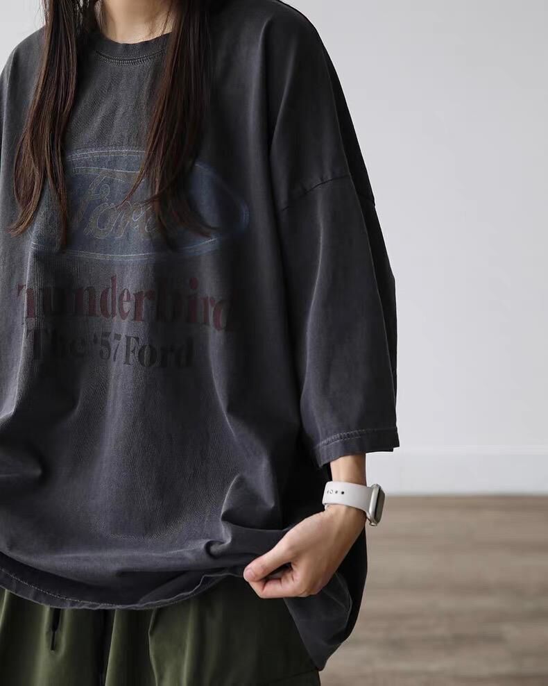 OverSize洗水英文字圖案短袖Tee MB-003T
