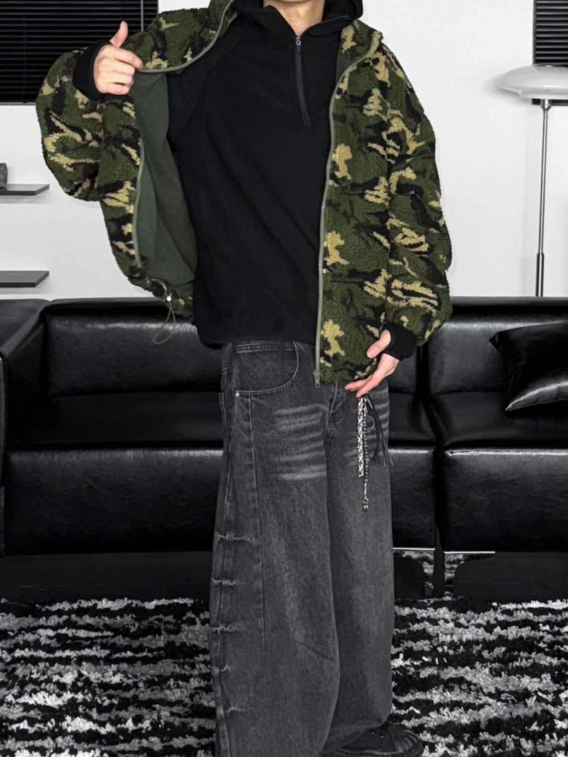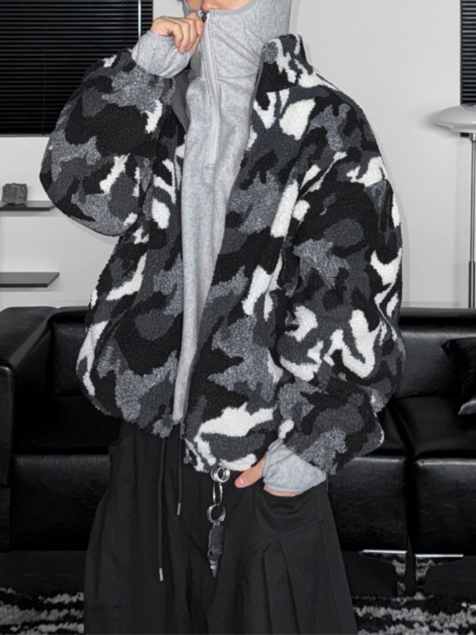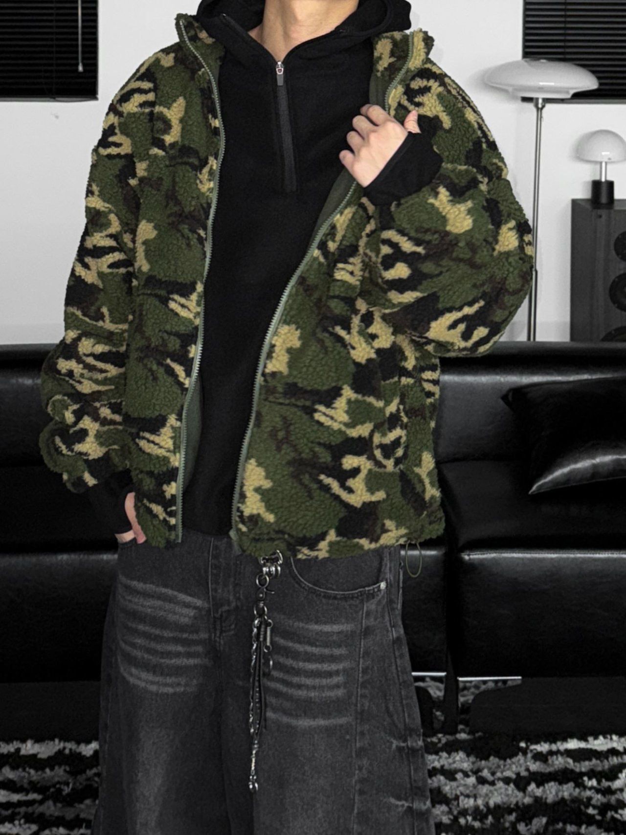 迷彩企領拉鍊外套(薄抓毛底) MEMENTO-049JK