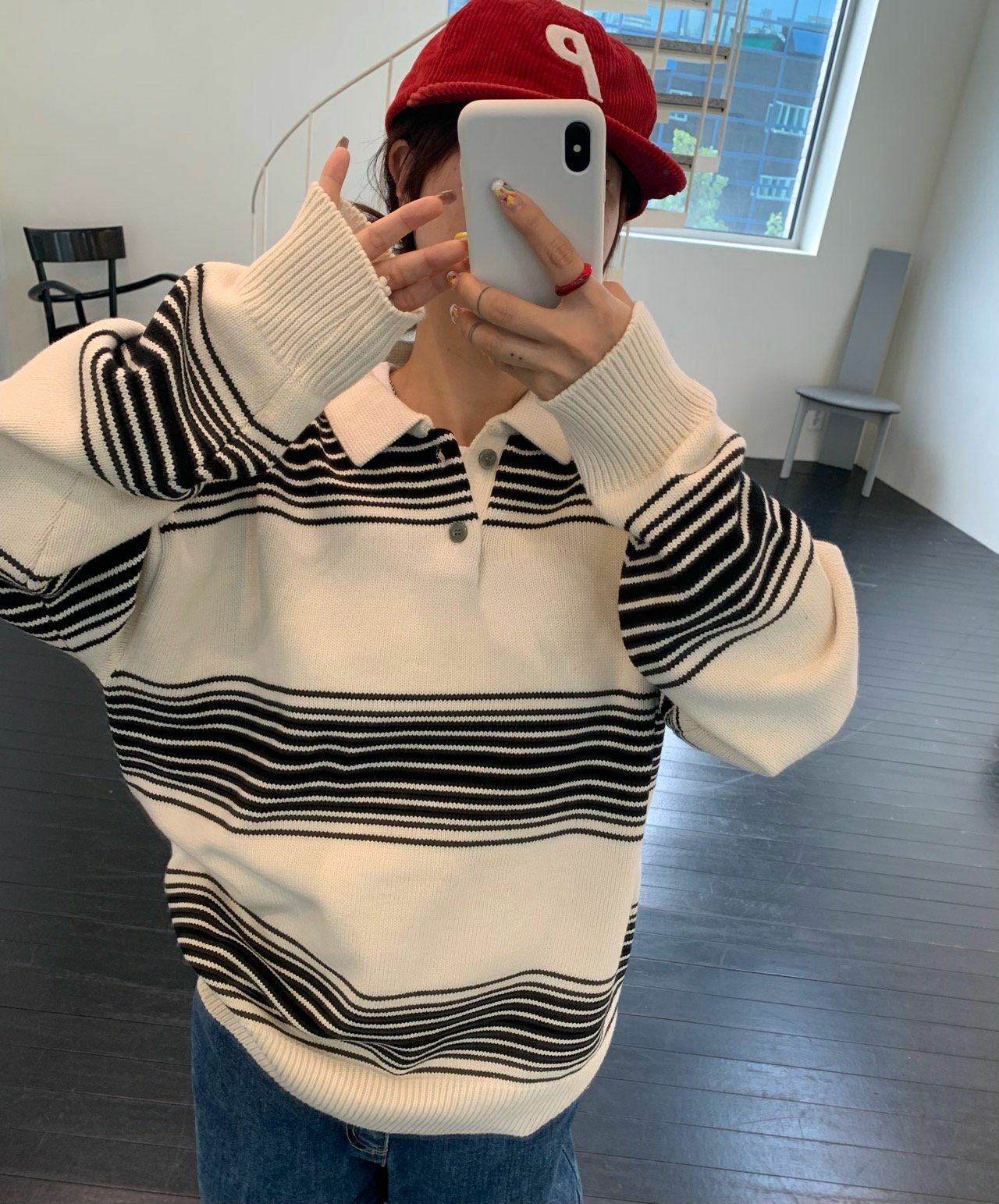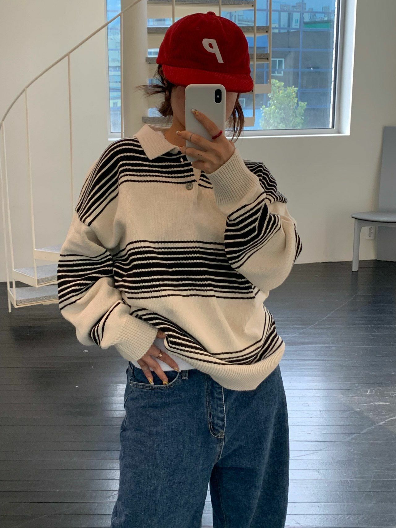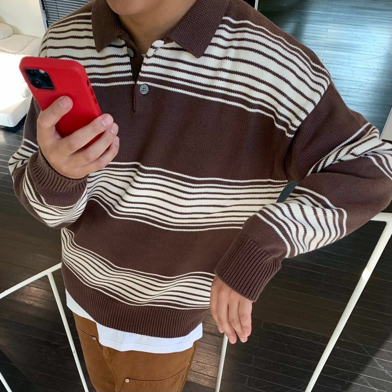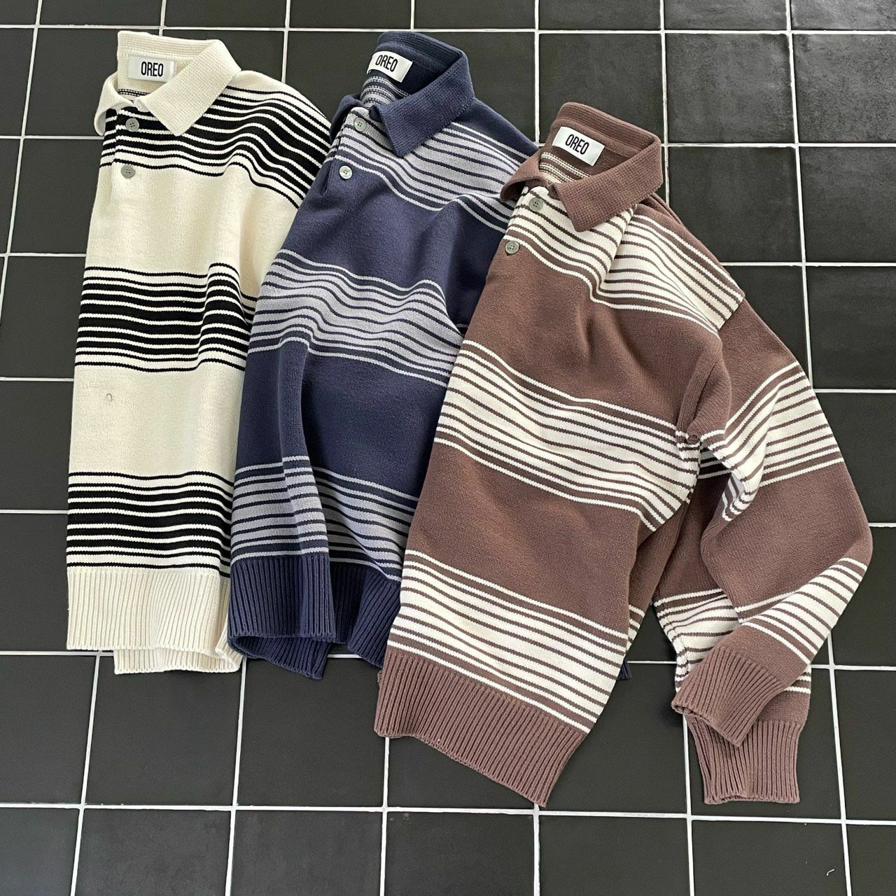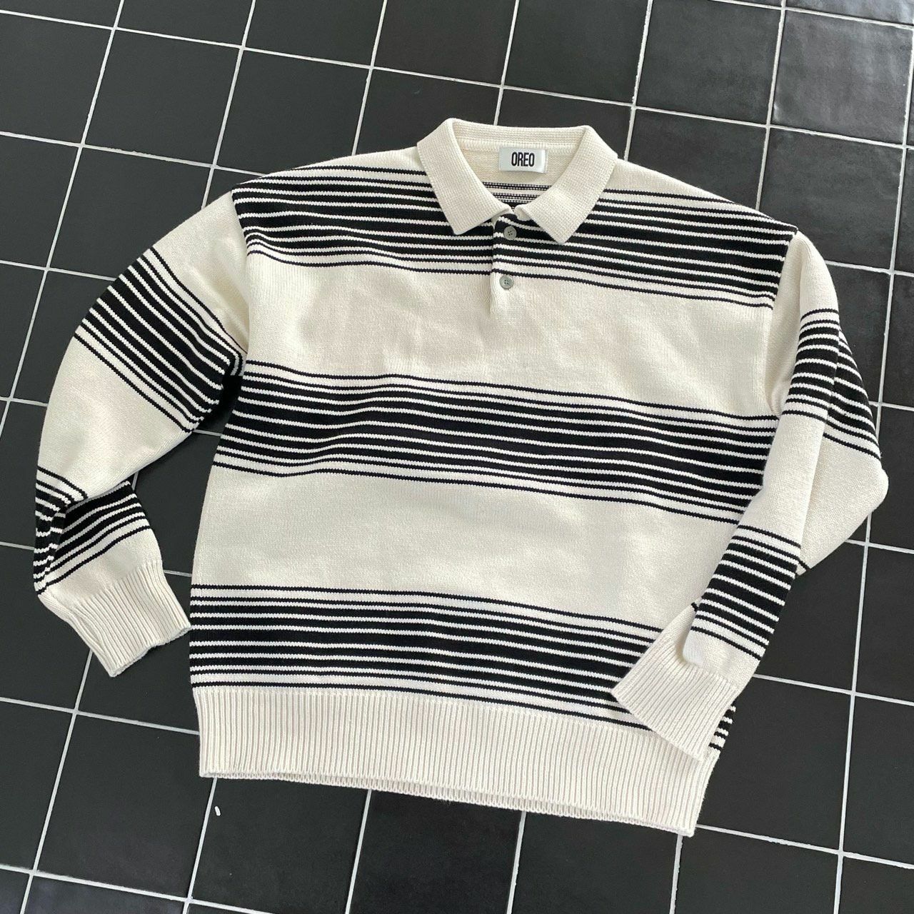 橫間長袖Polo Tee OREO-086T