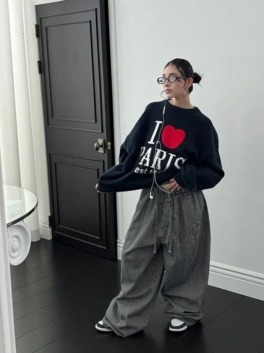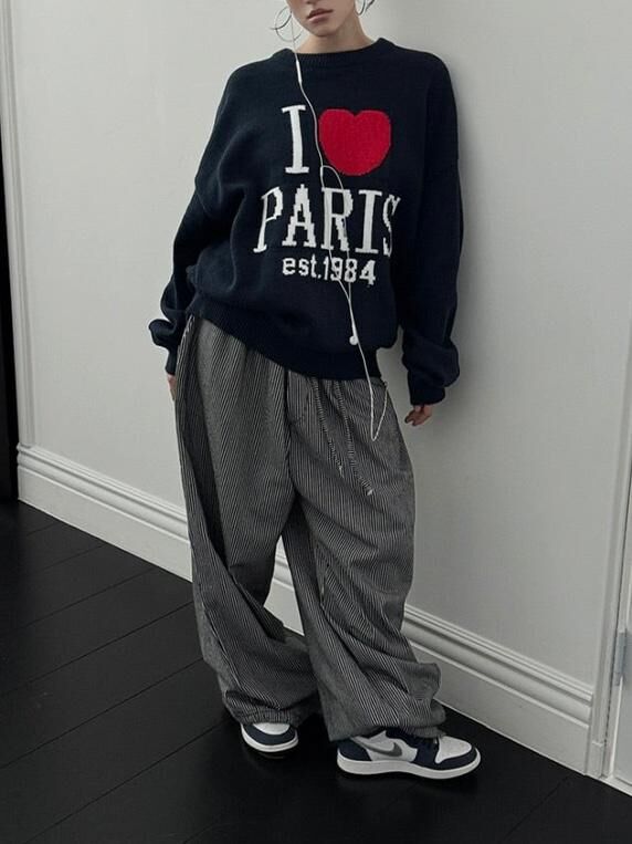 直紋可束腳鬆身褲 OUR-163P