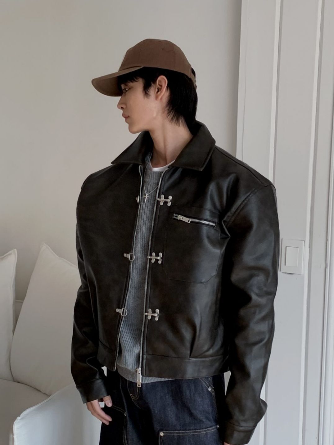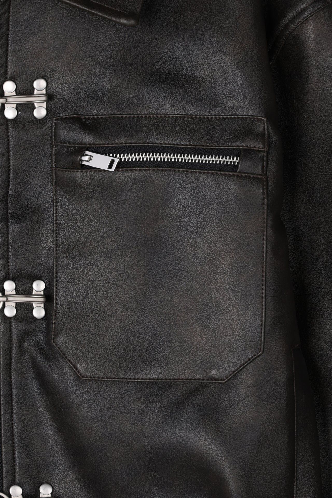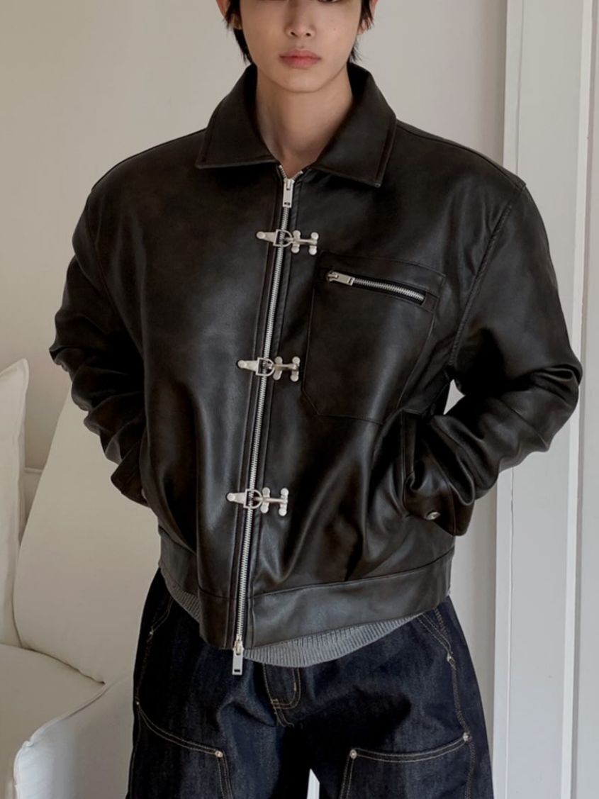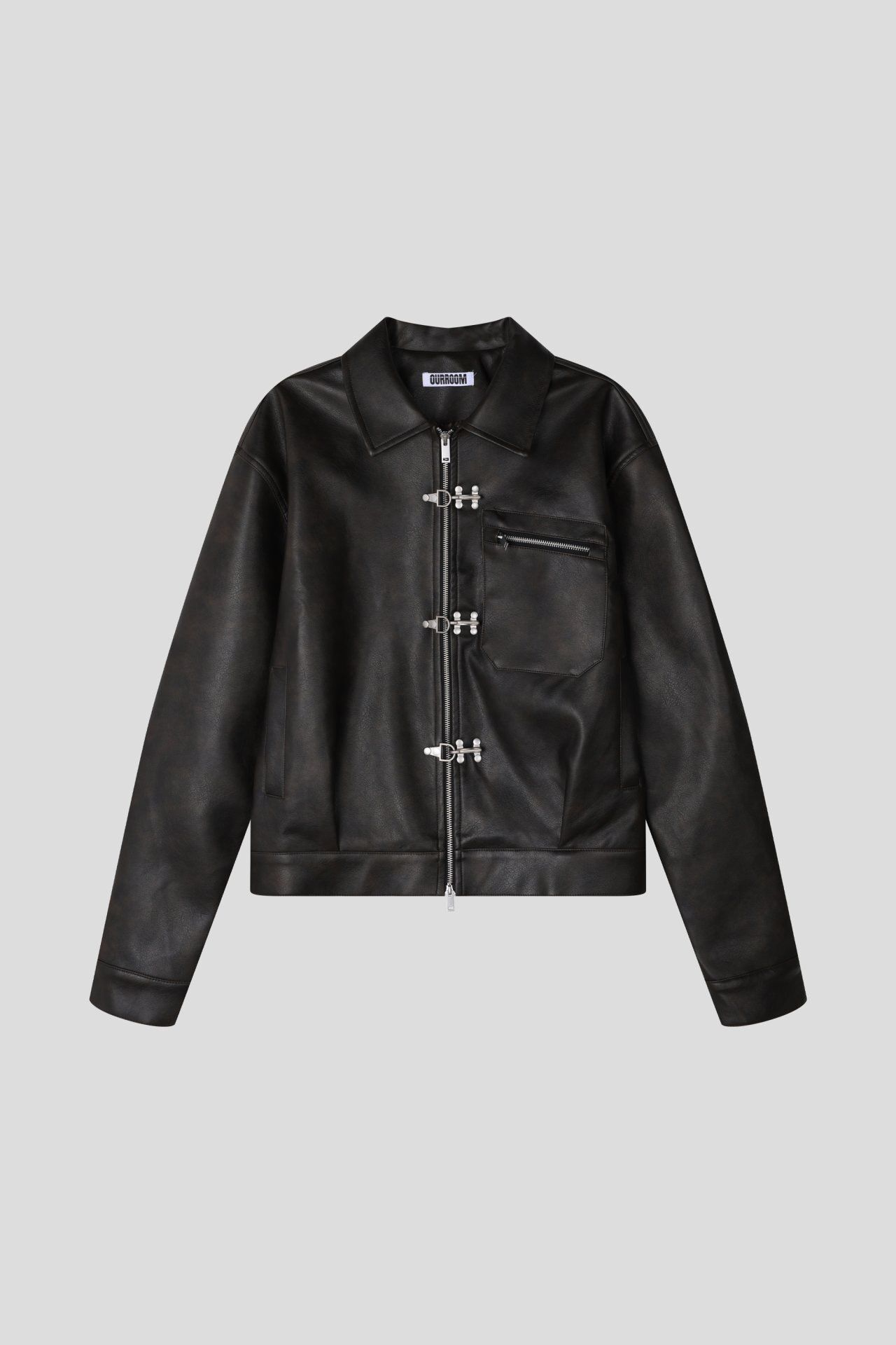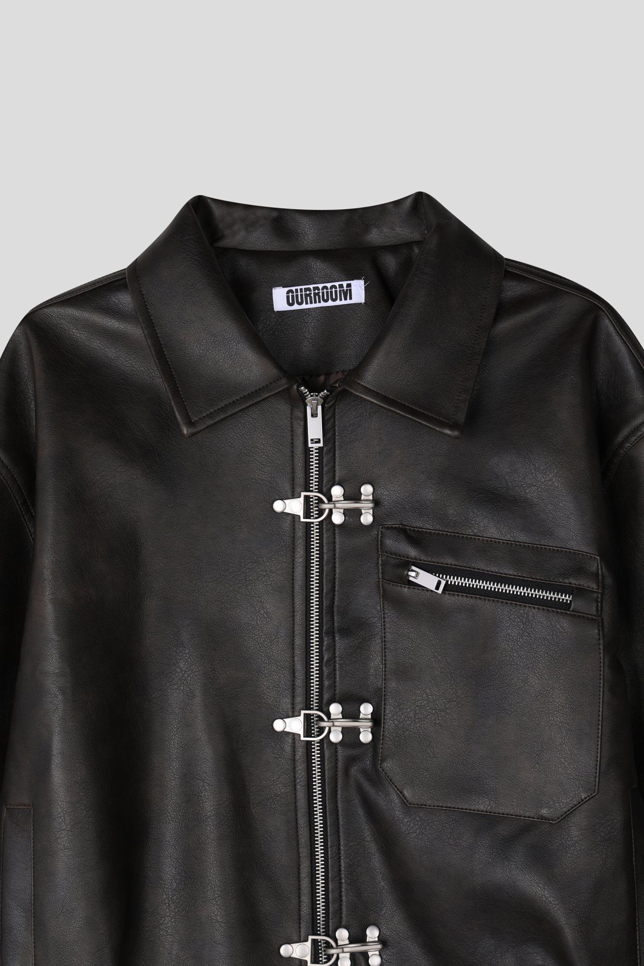淨色反領合成皮褸 OUR-174JK