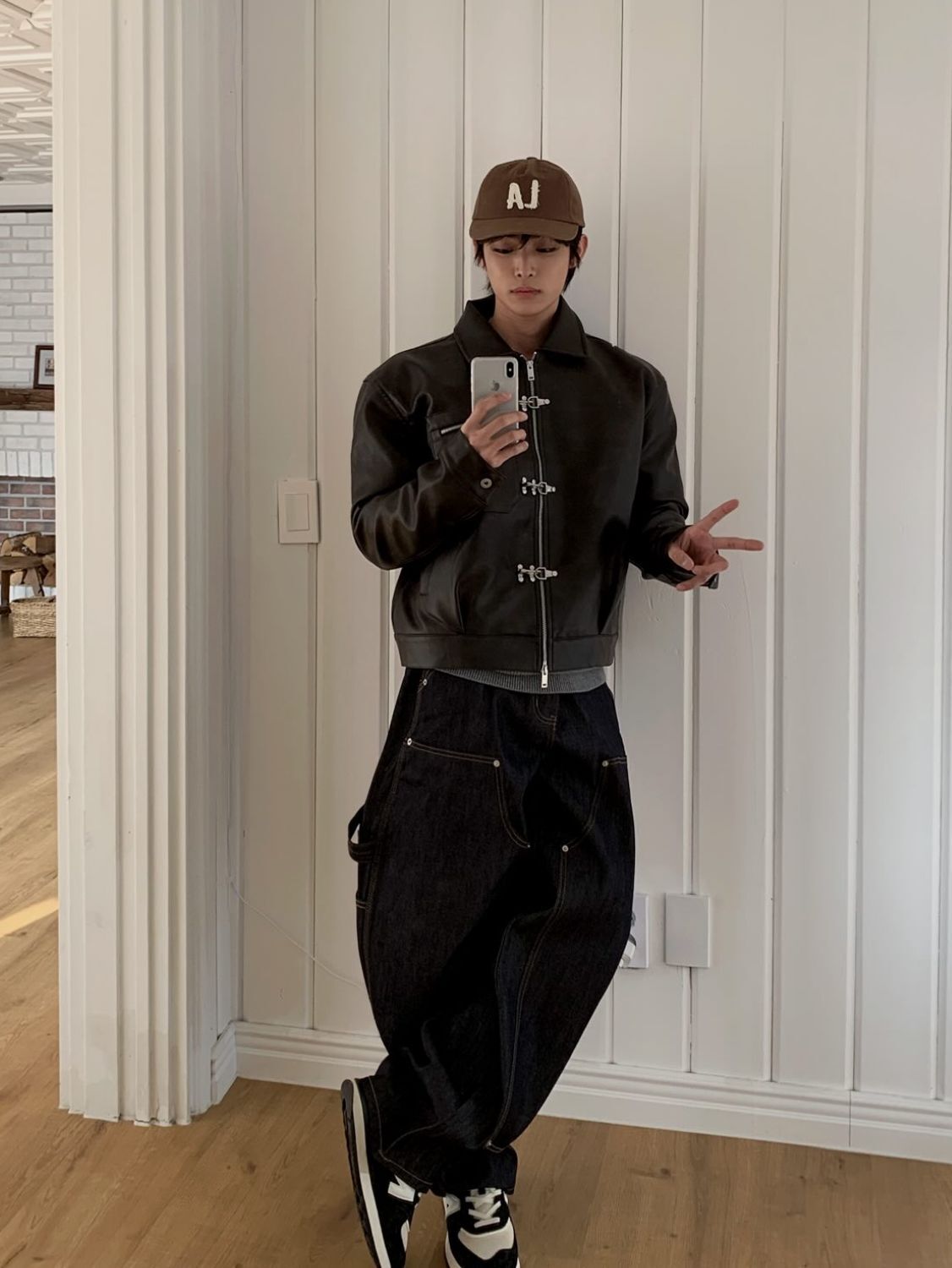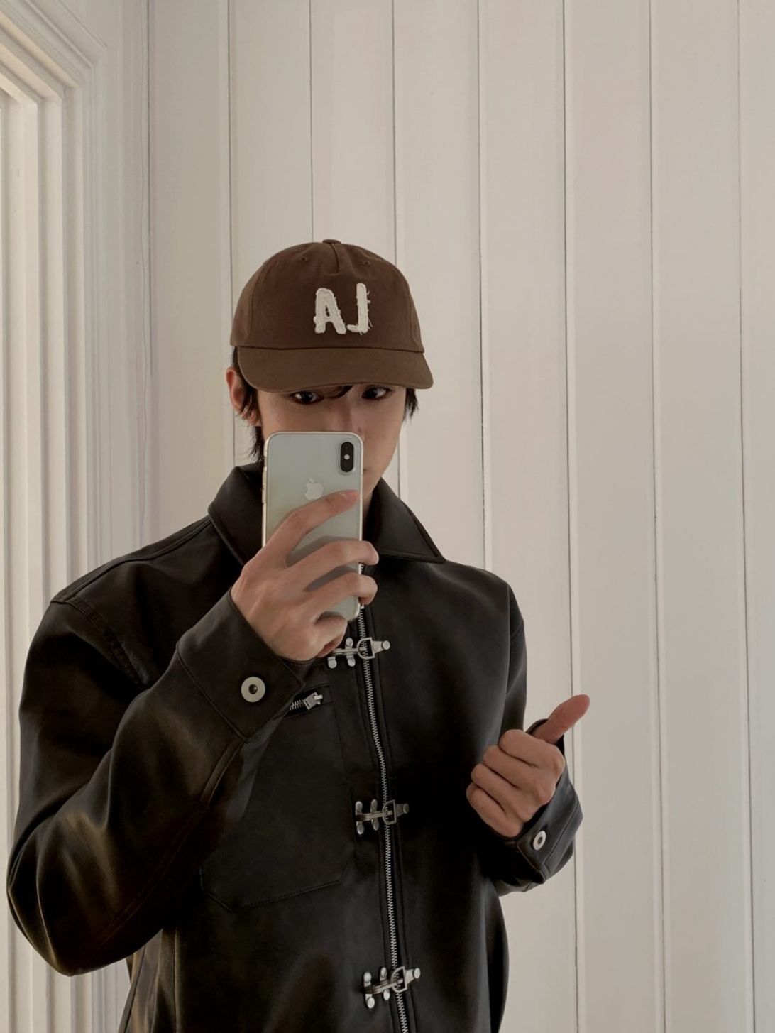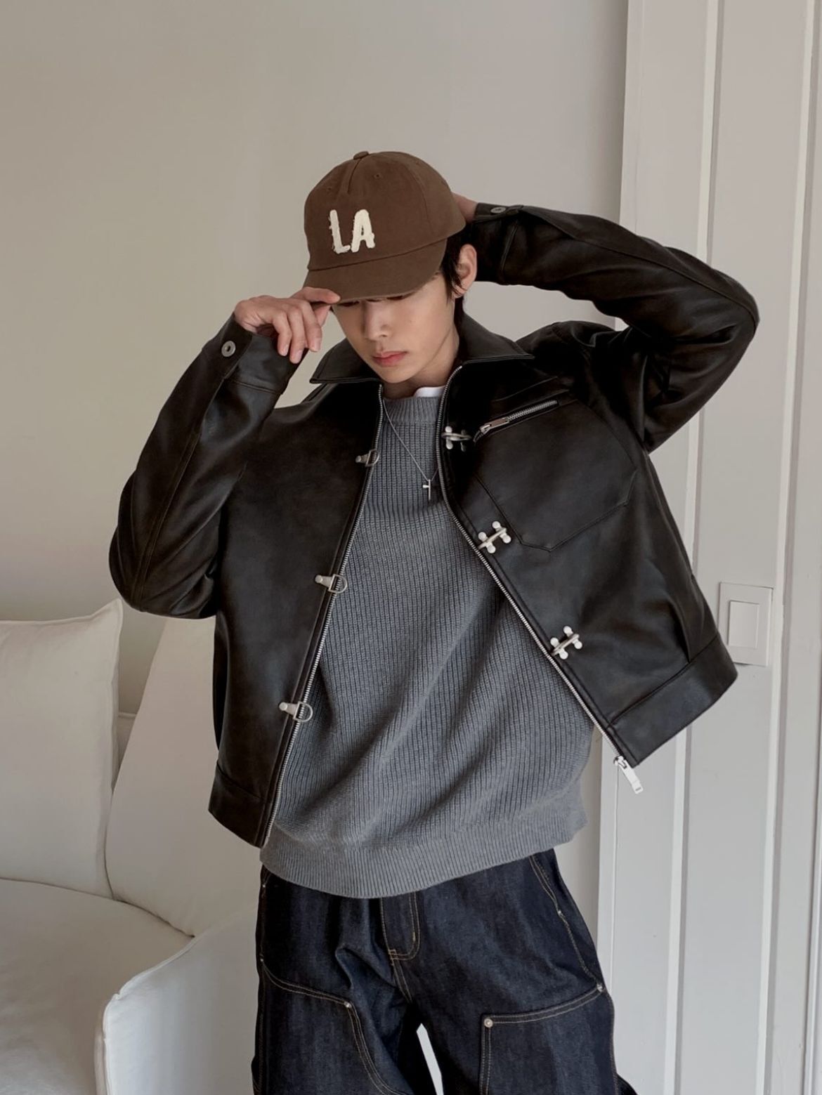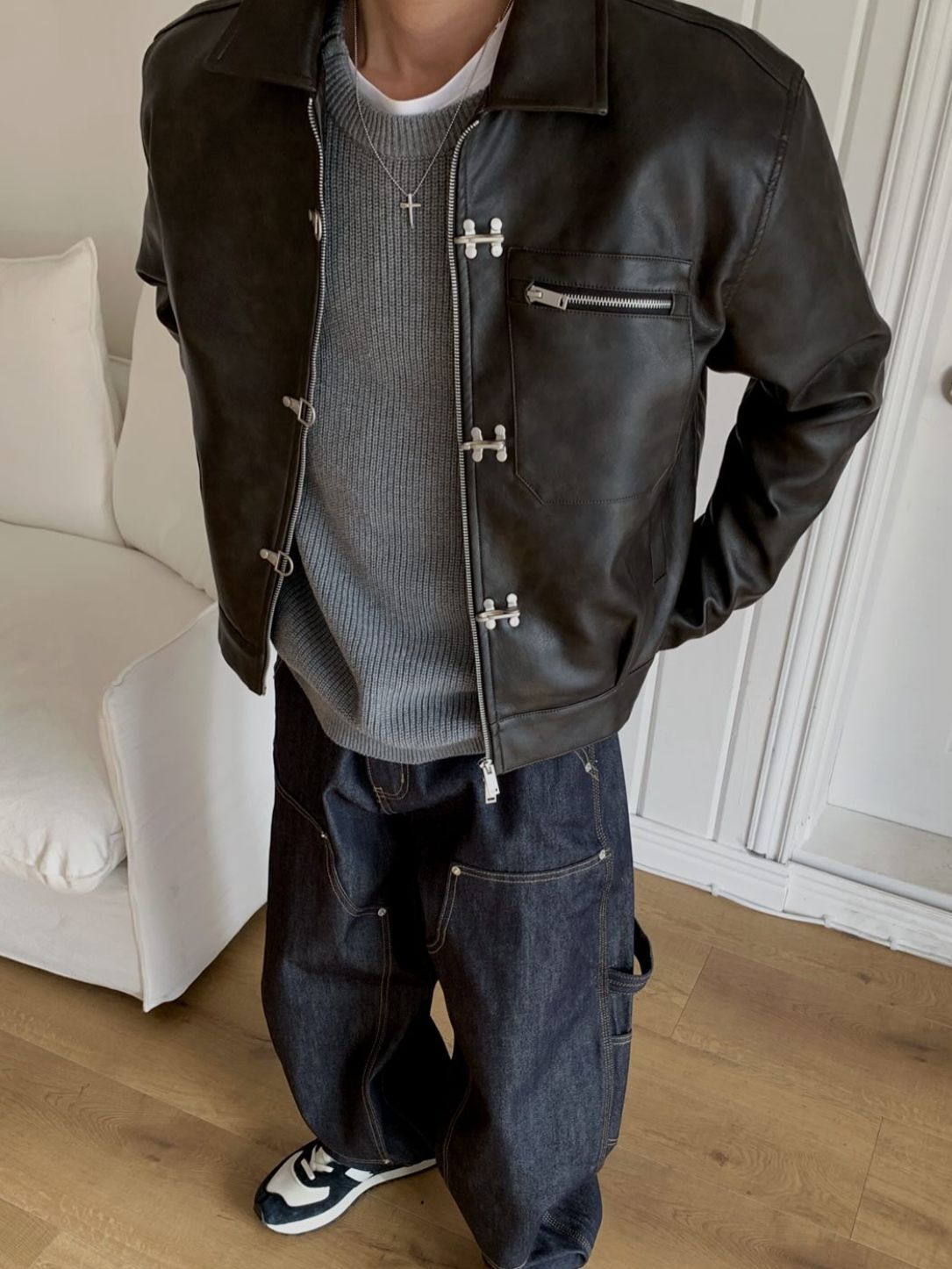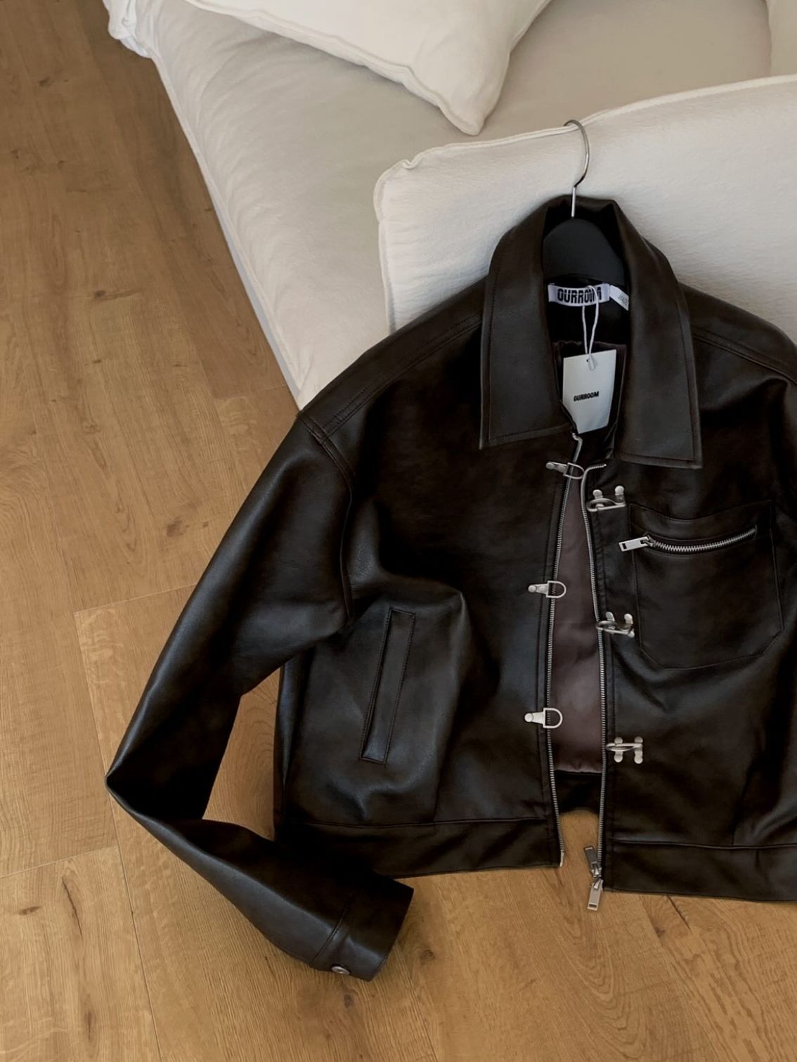 淨色反領合成皮褸 OUR-174JK