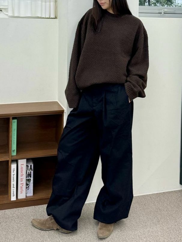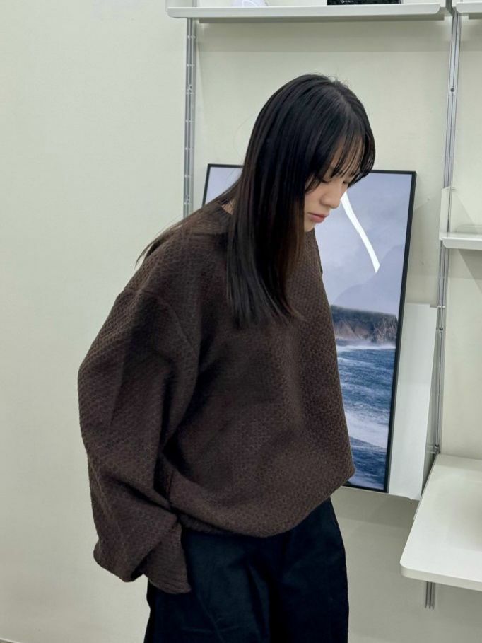 淨色圓領暗紋針織衫 OWN-059T