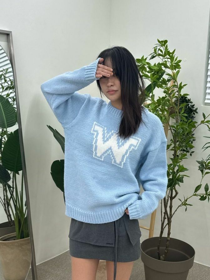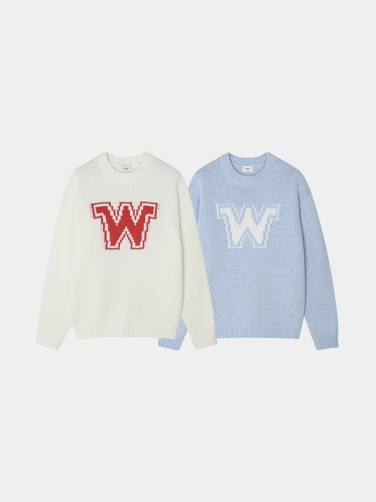 圓領英文字針織衫 OWN-082T