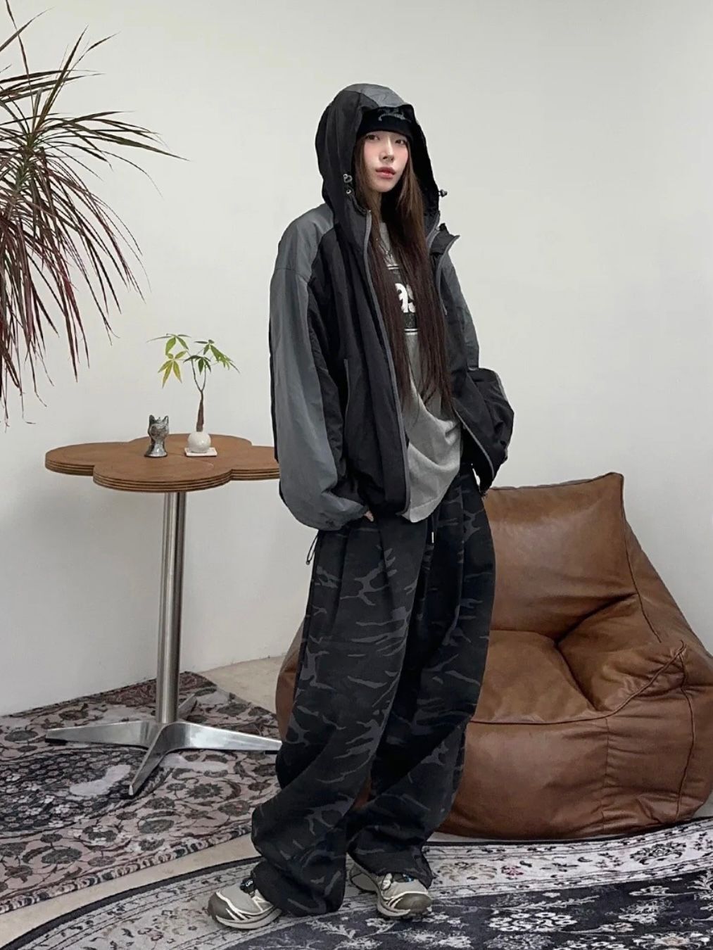 拼色連帽拉鍊外套 OWN-117JK