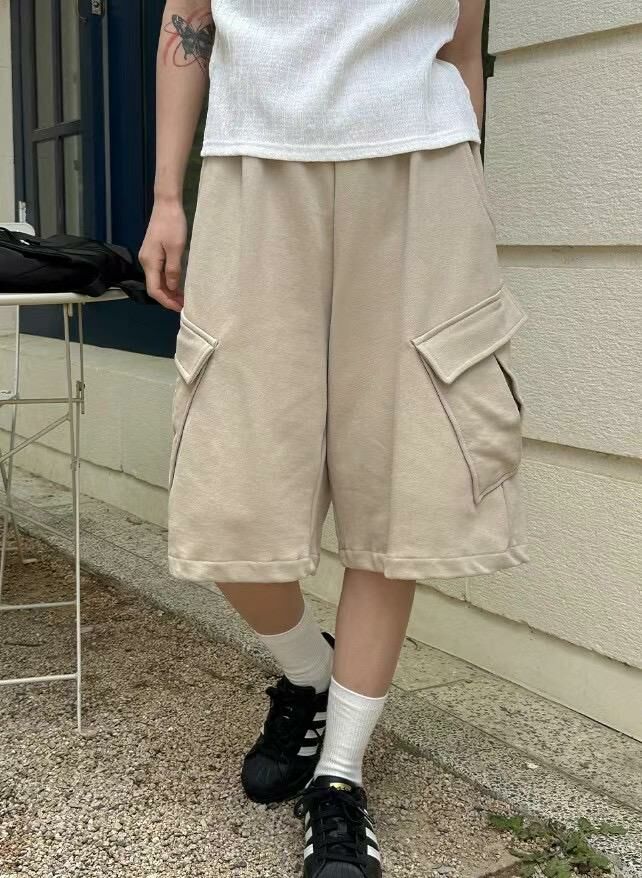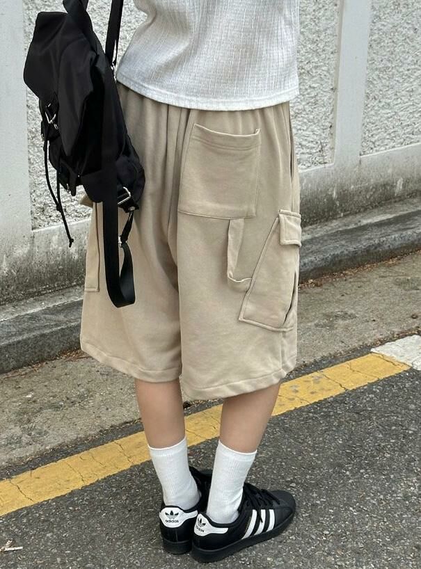 淨色棉質工裝短褲 P2947