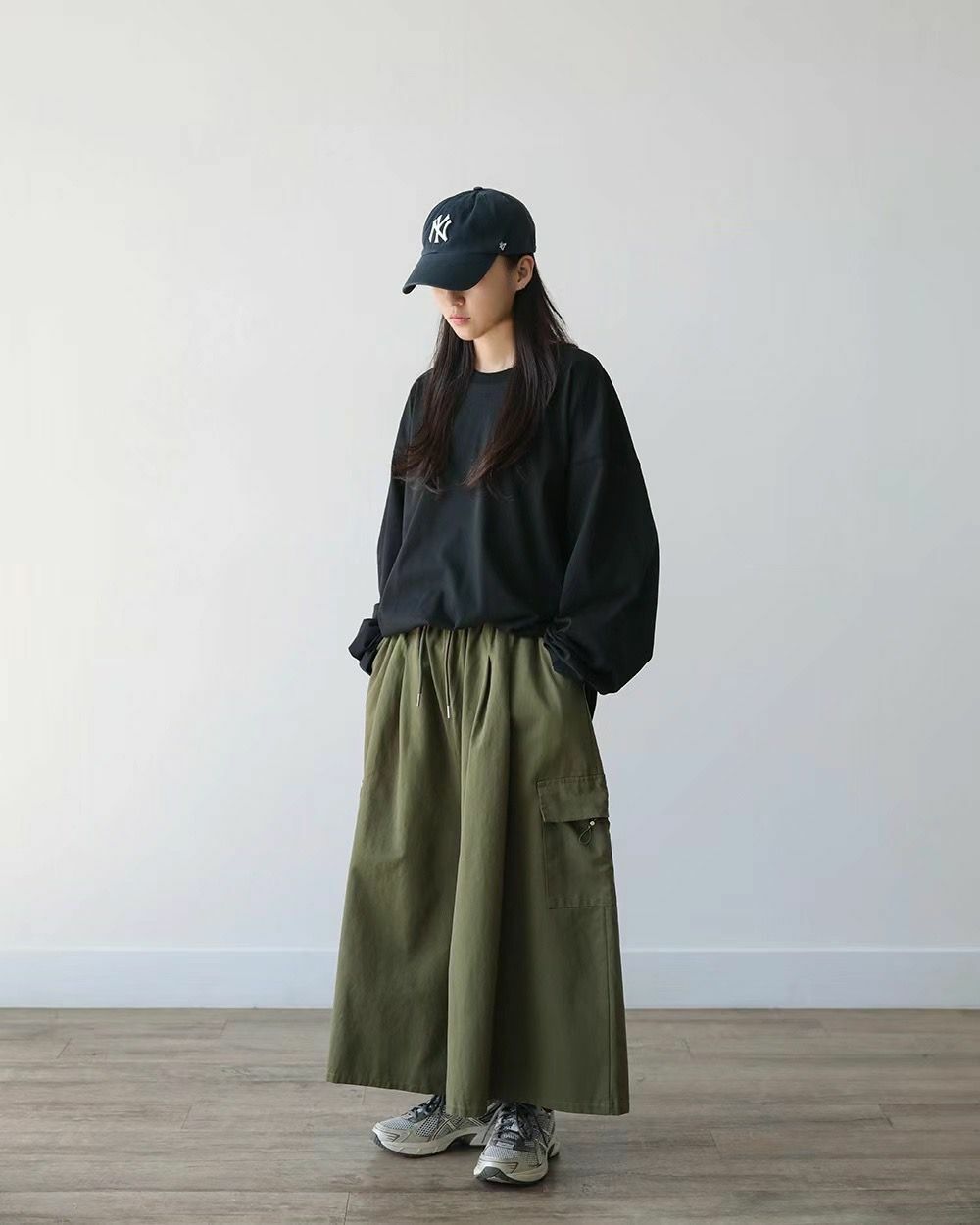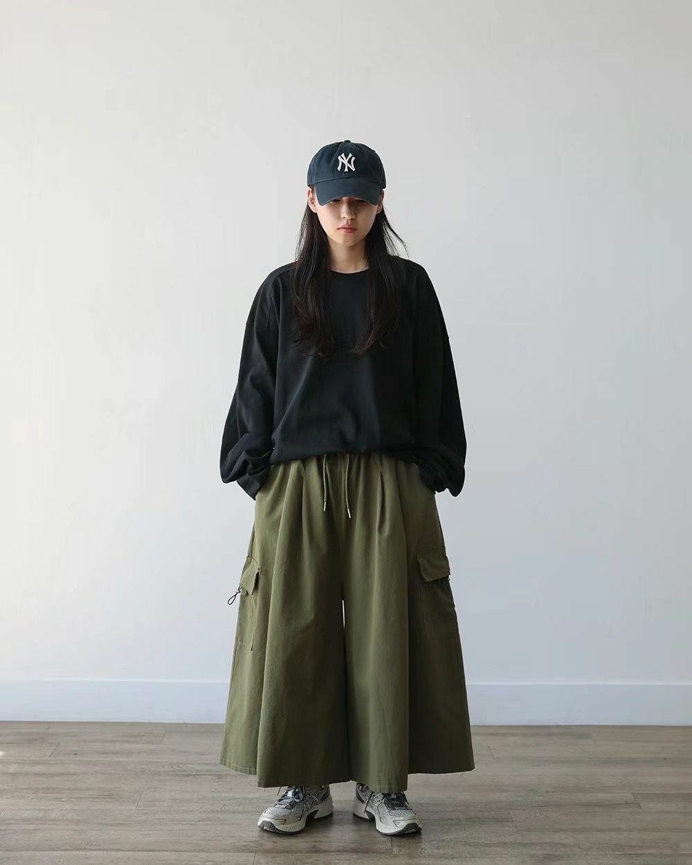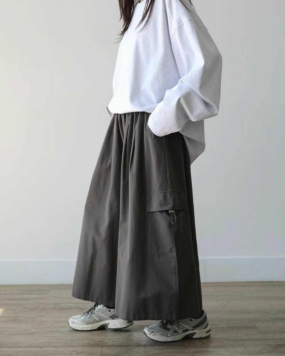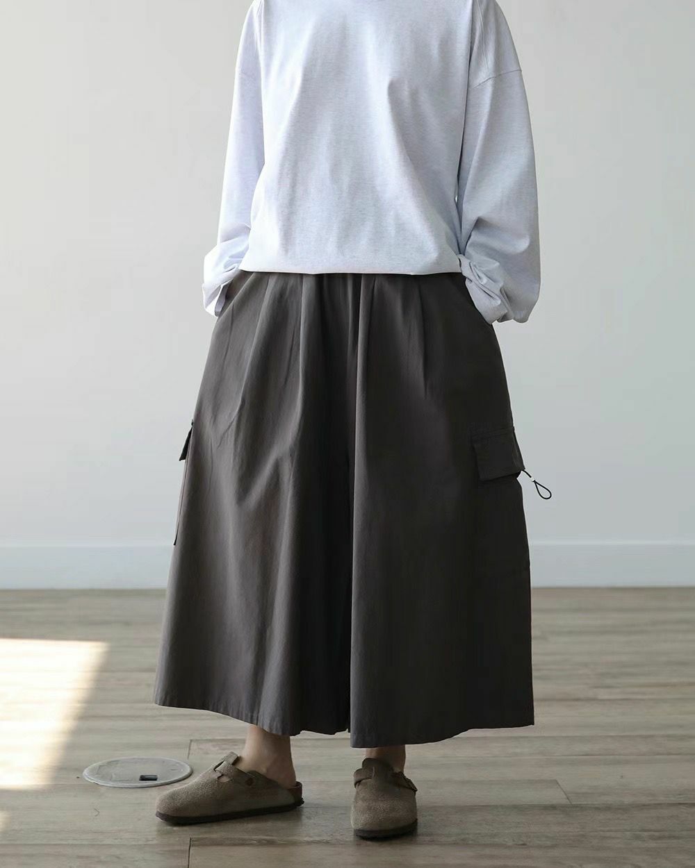 淨色工裝鬆身裙褲 P3000