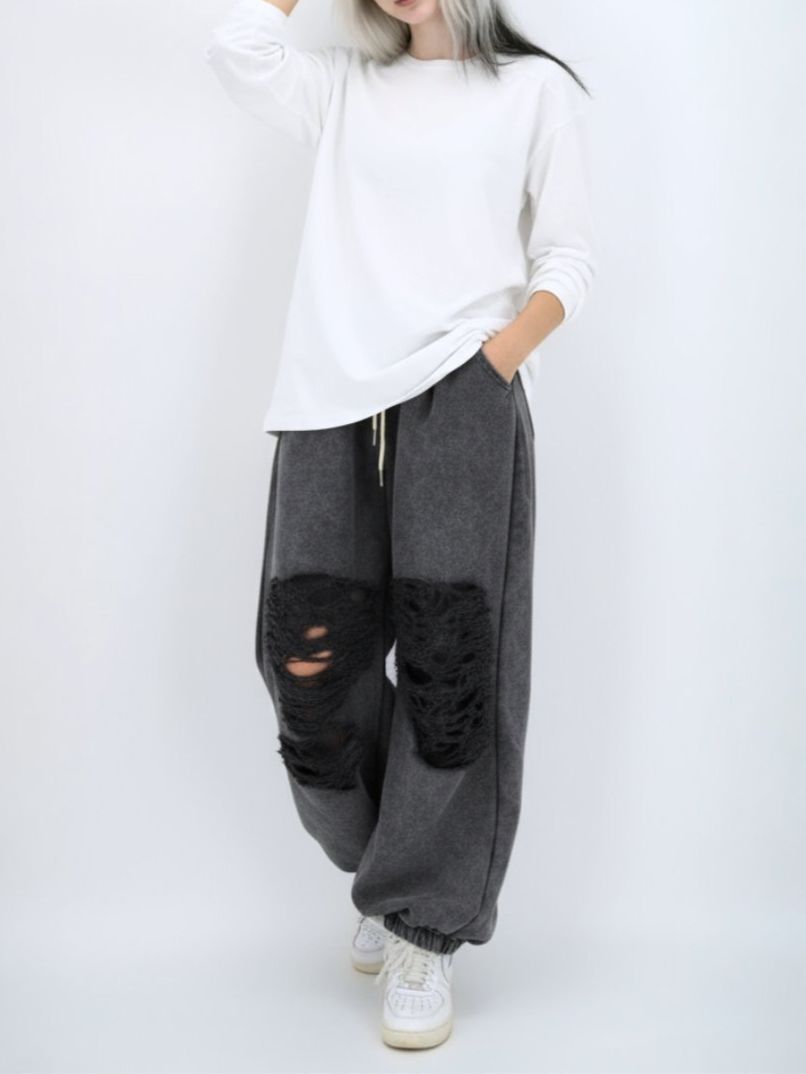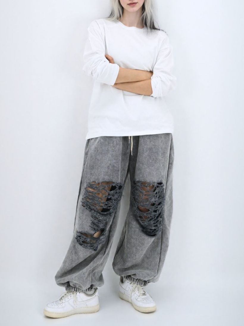 洗水破洞束腳運動褲 P3184