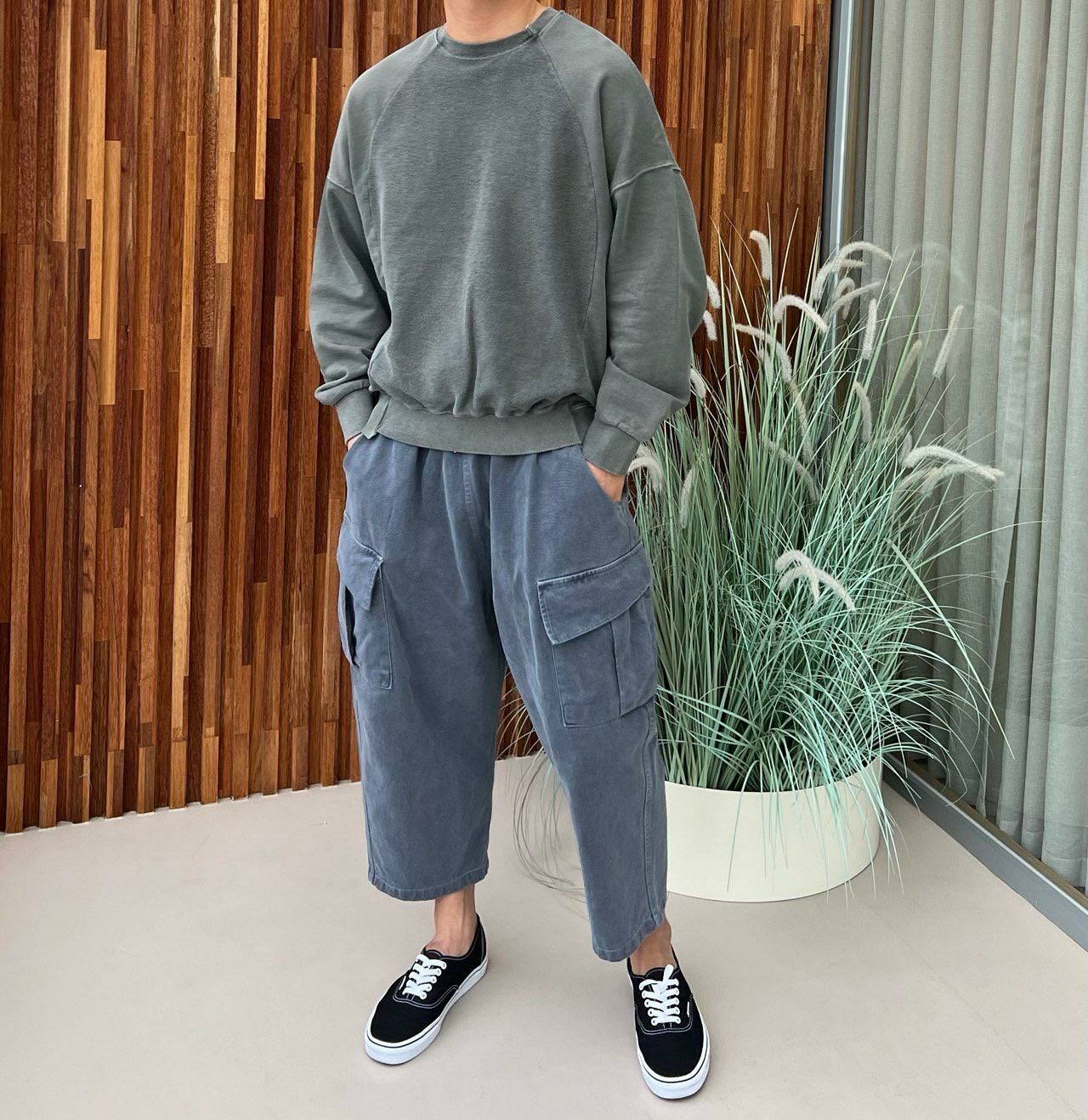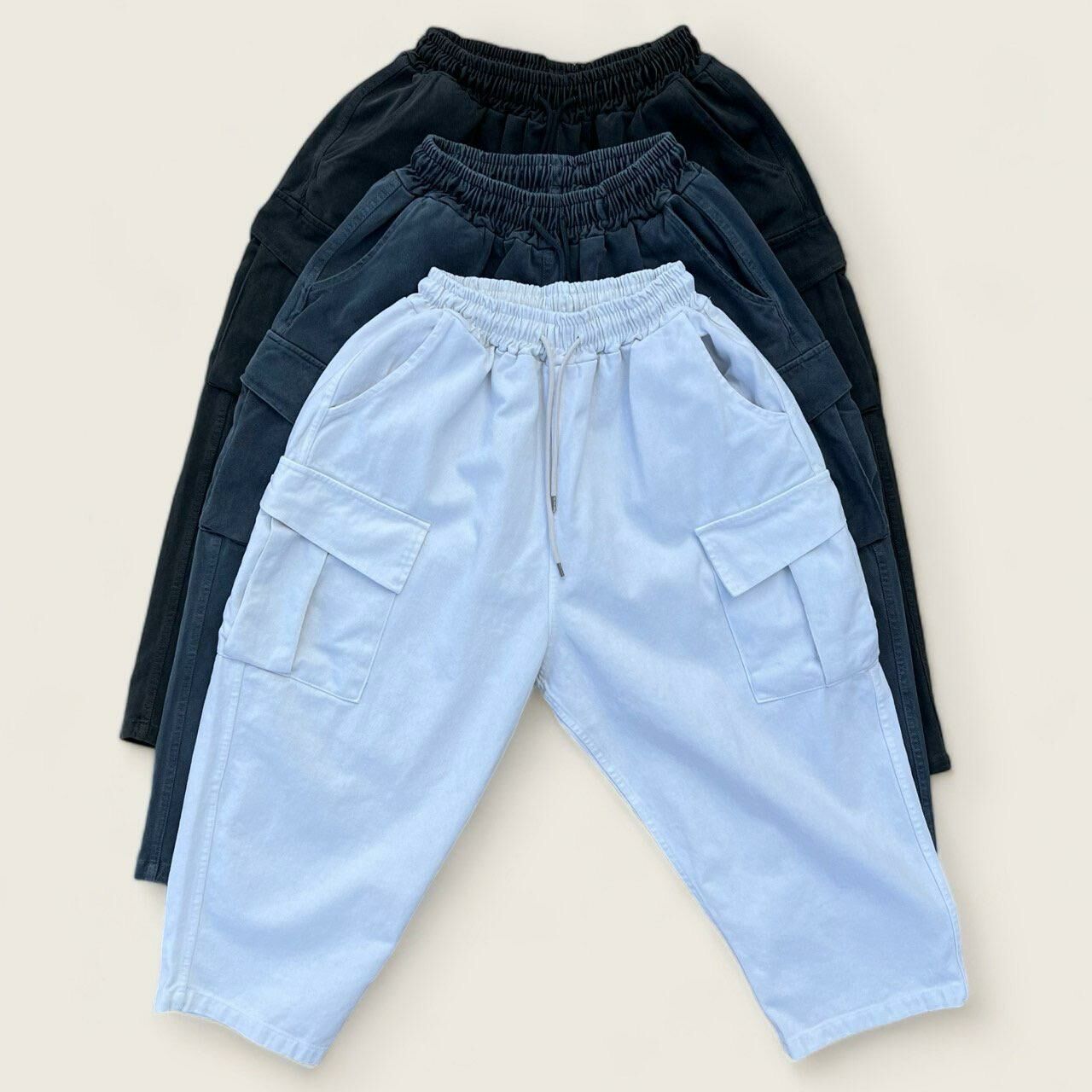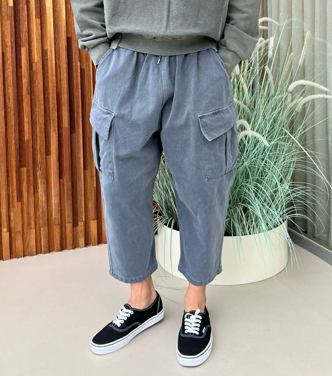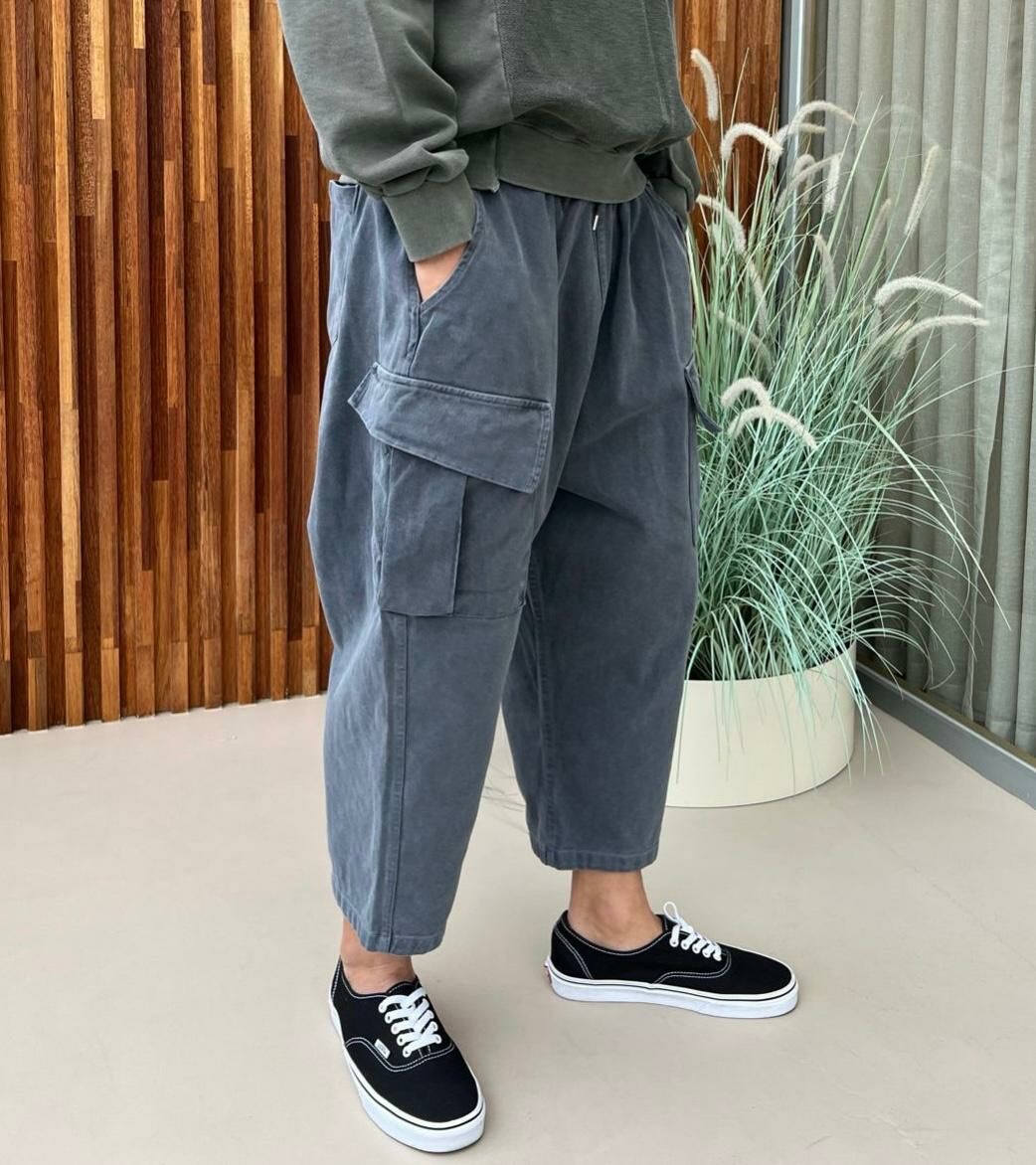 洗水淨色工裝鬆身褲 PEACOCK-062P