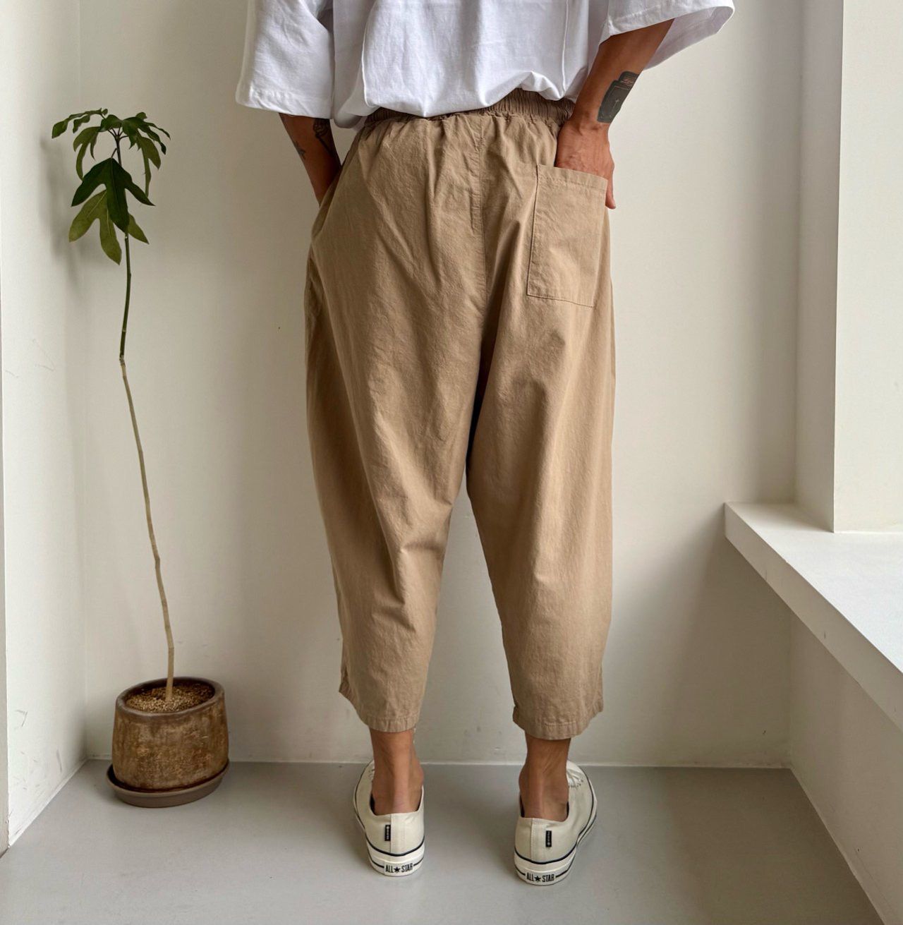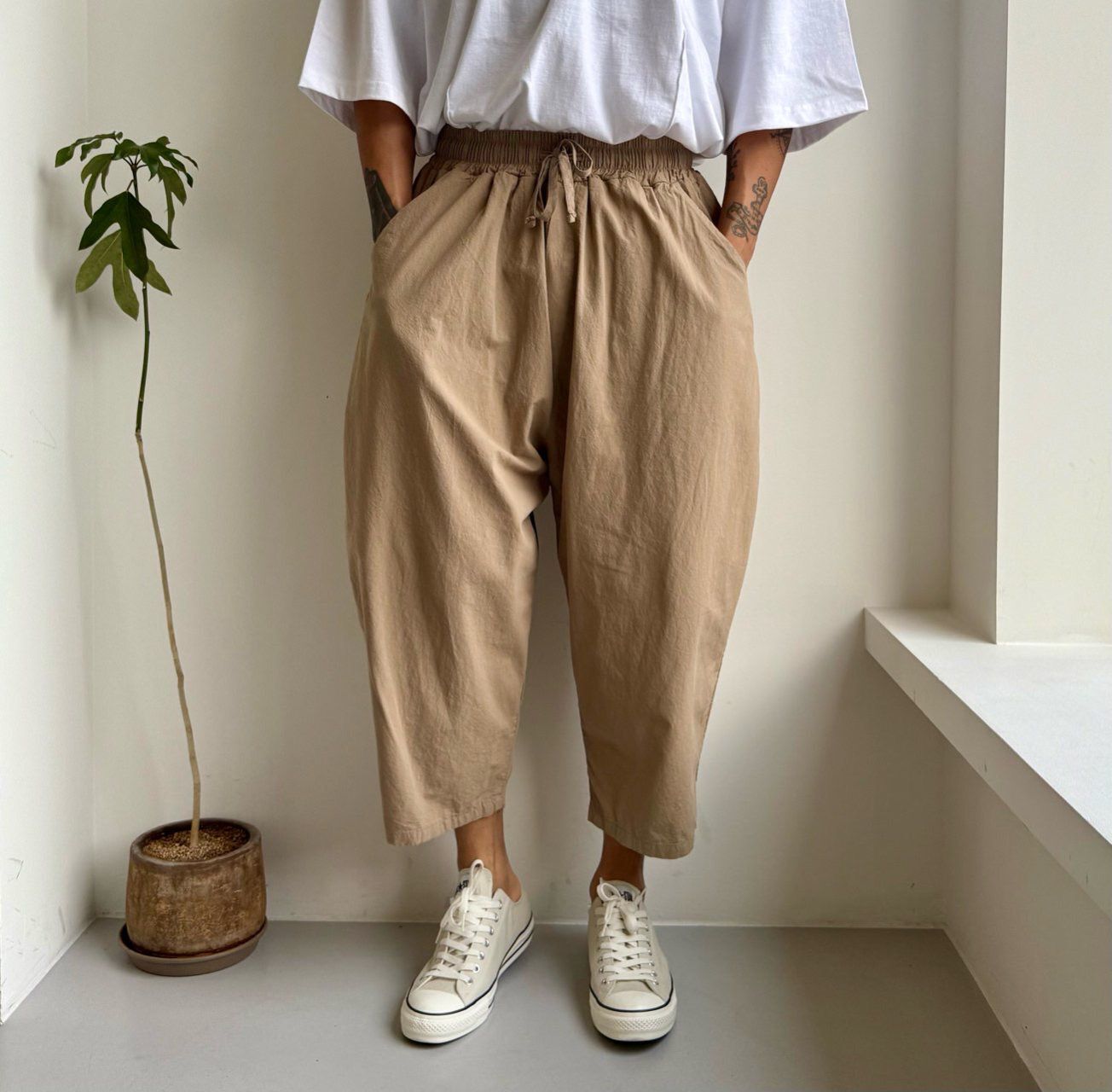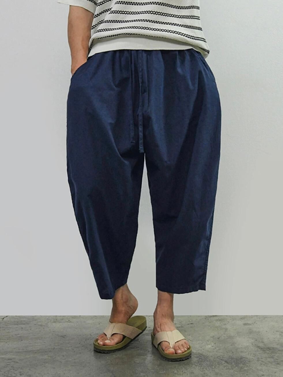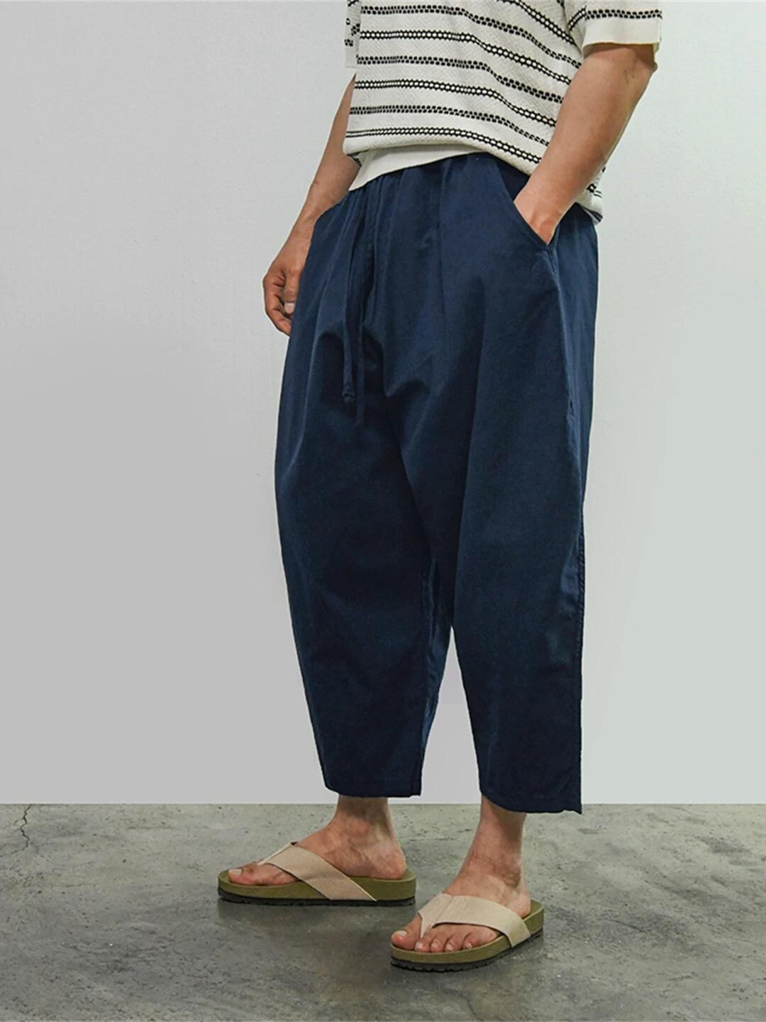 淨色薄洗水麻棉質地鬆身褲 PEACOCK-140P