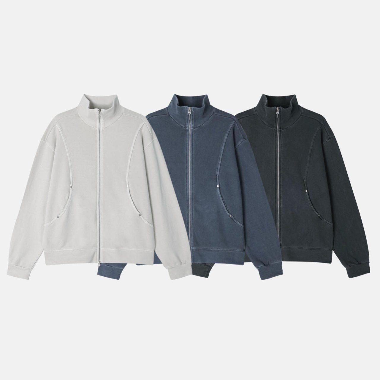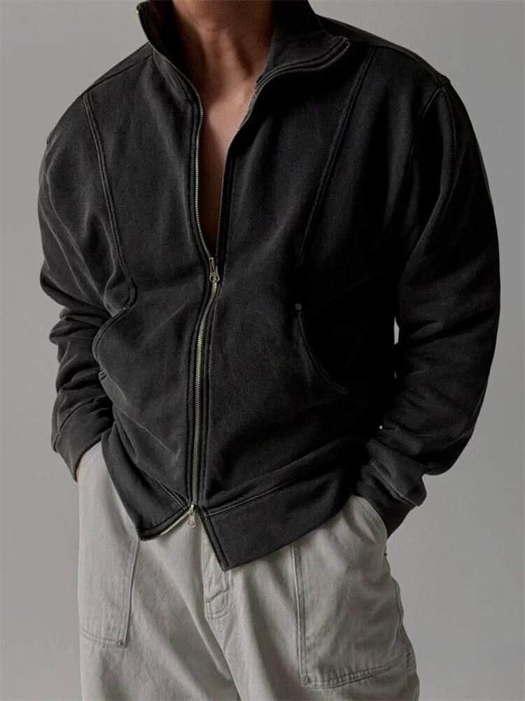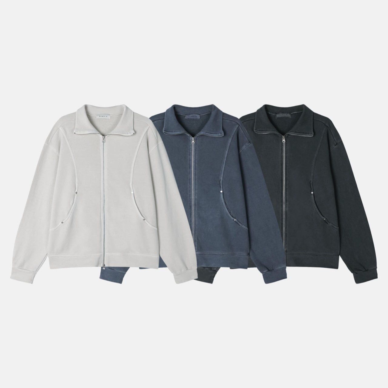 洗水淨色反領拉鍊外套 REMAIN-026JK