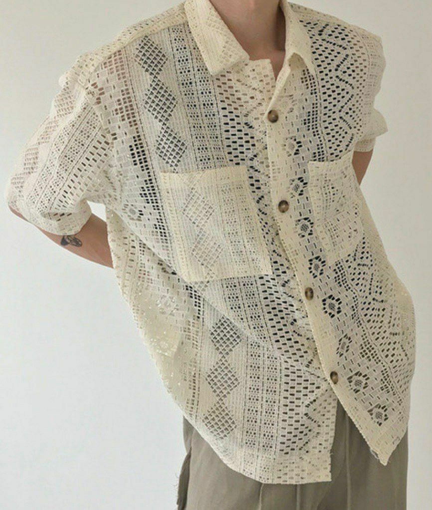 透視喱士圖案短袖恤衫 S1478