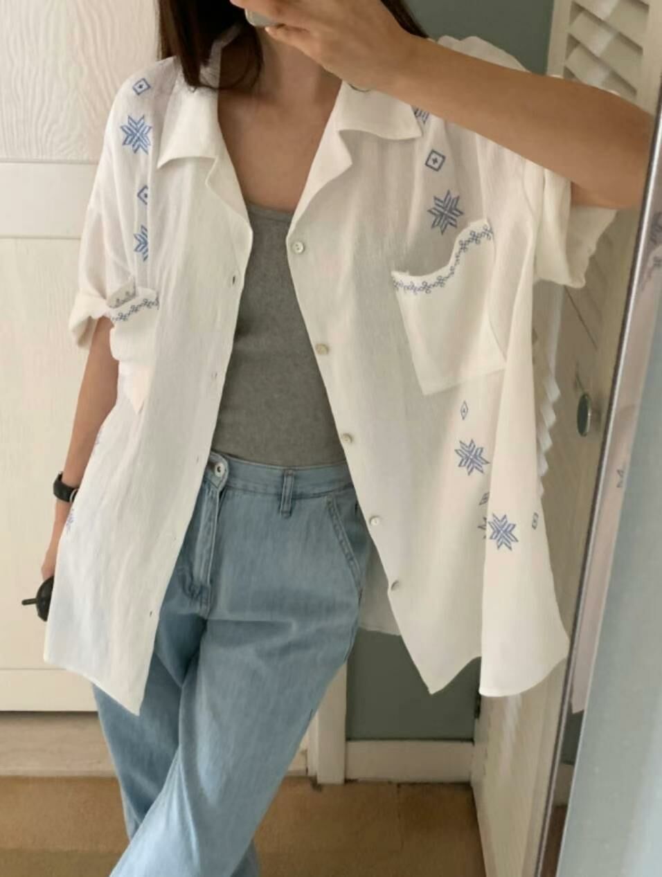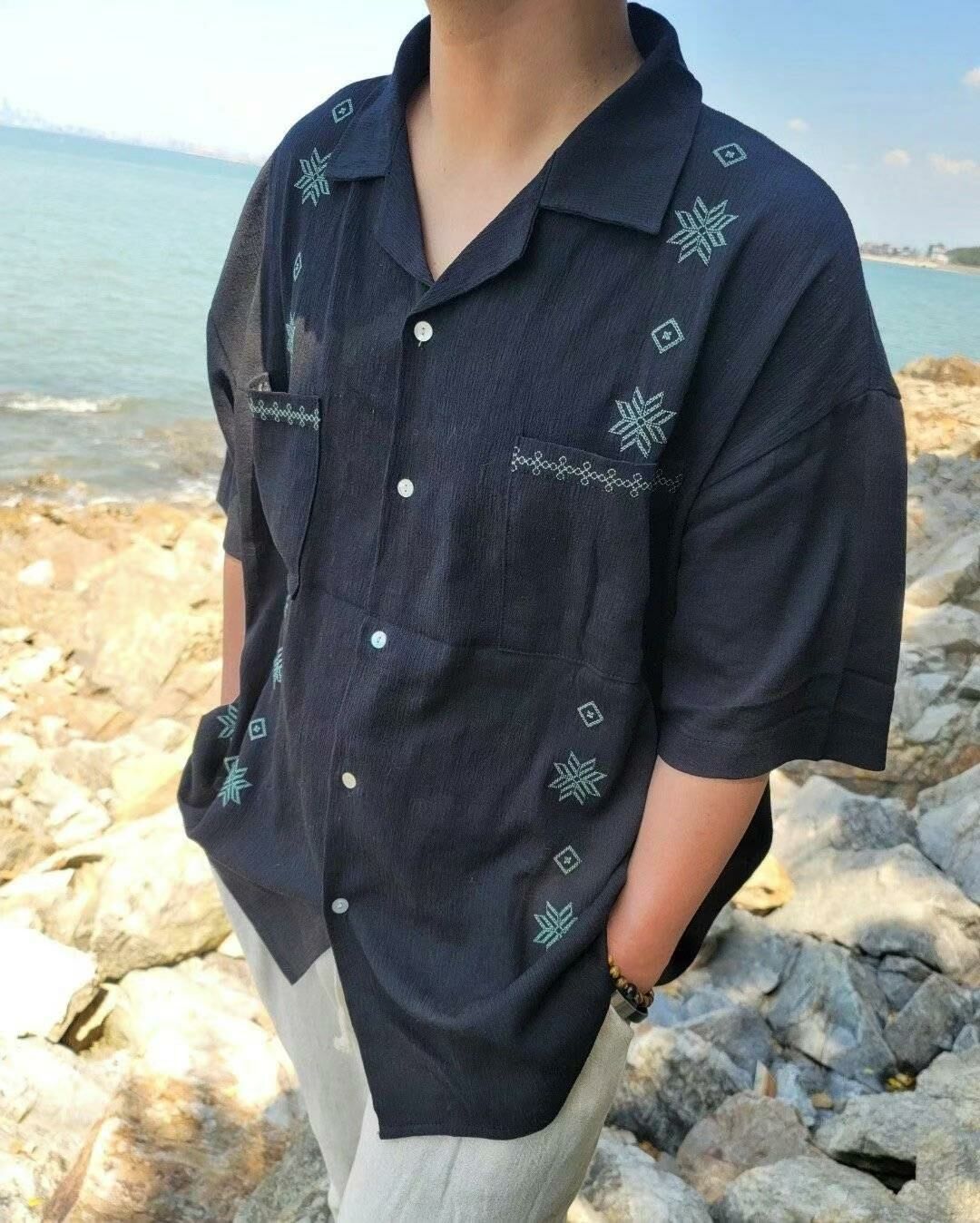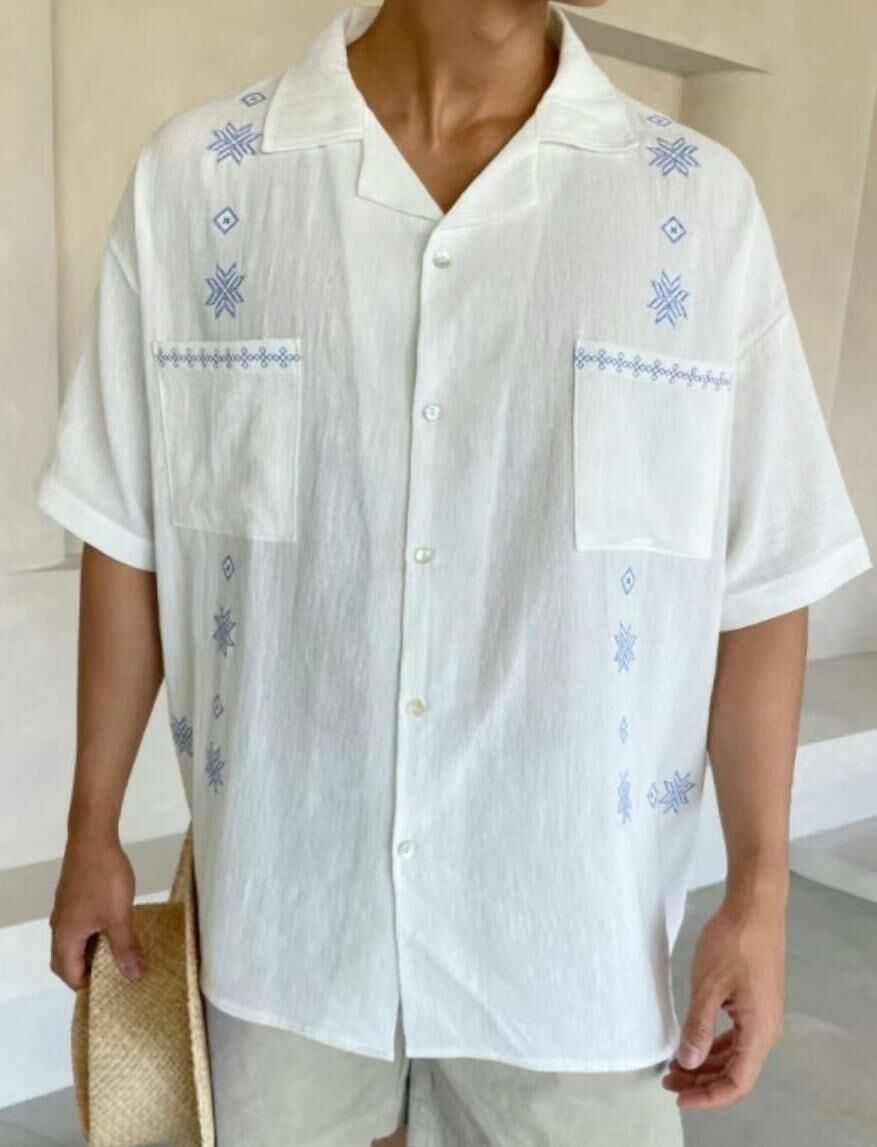 民族花圖案短袖恤衫 S2262