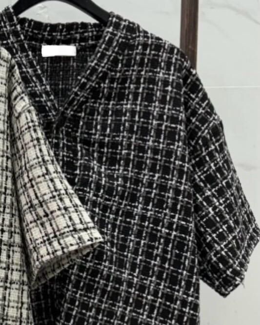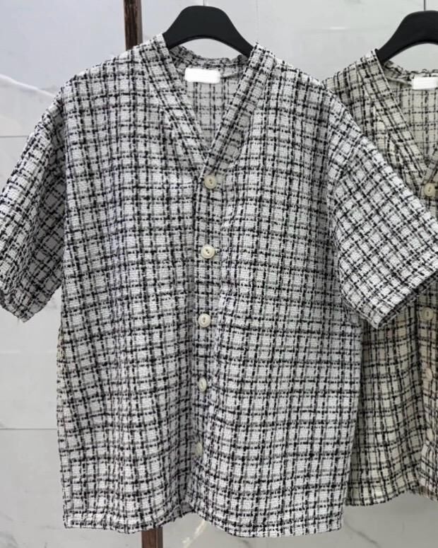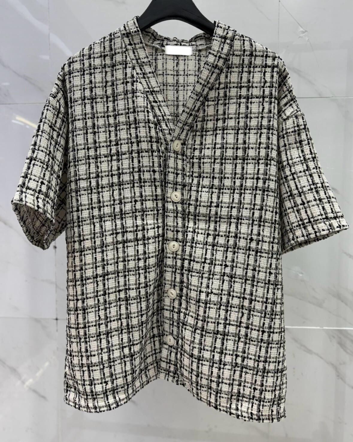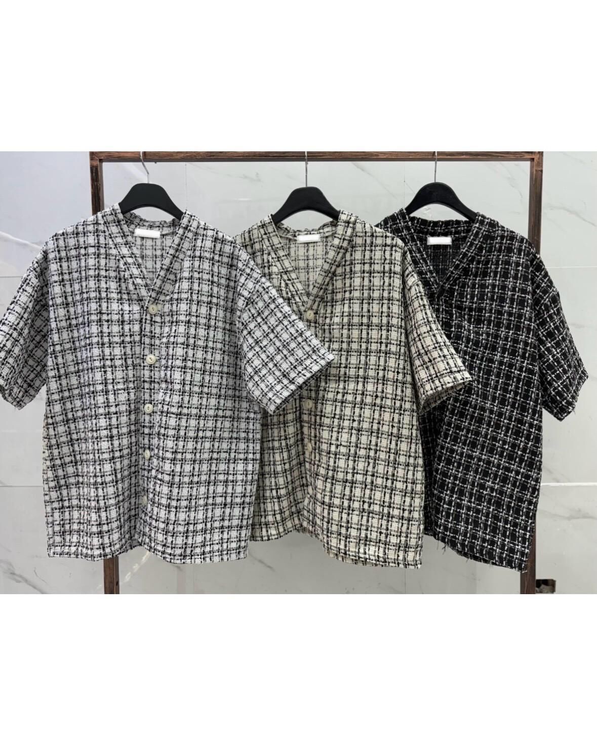 V領格仔短袖恤衫 S2320