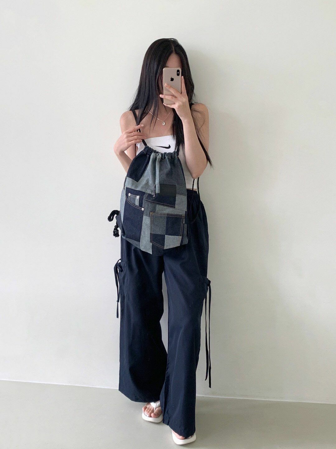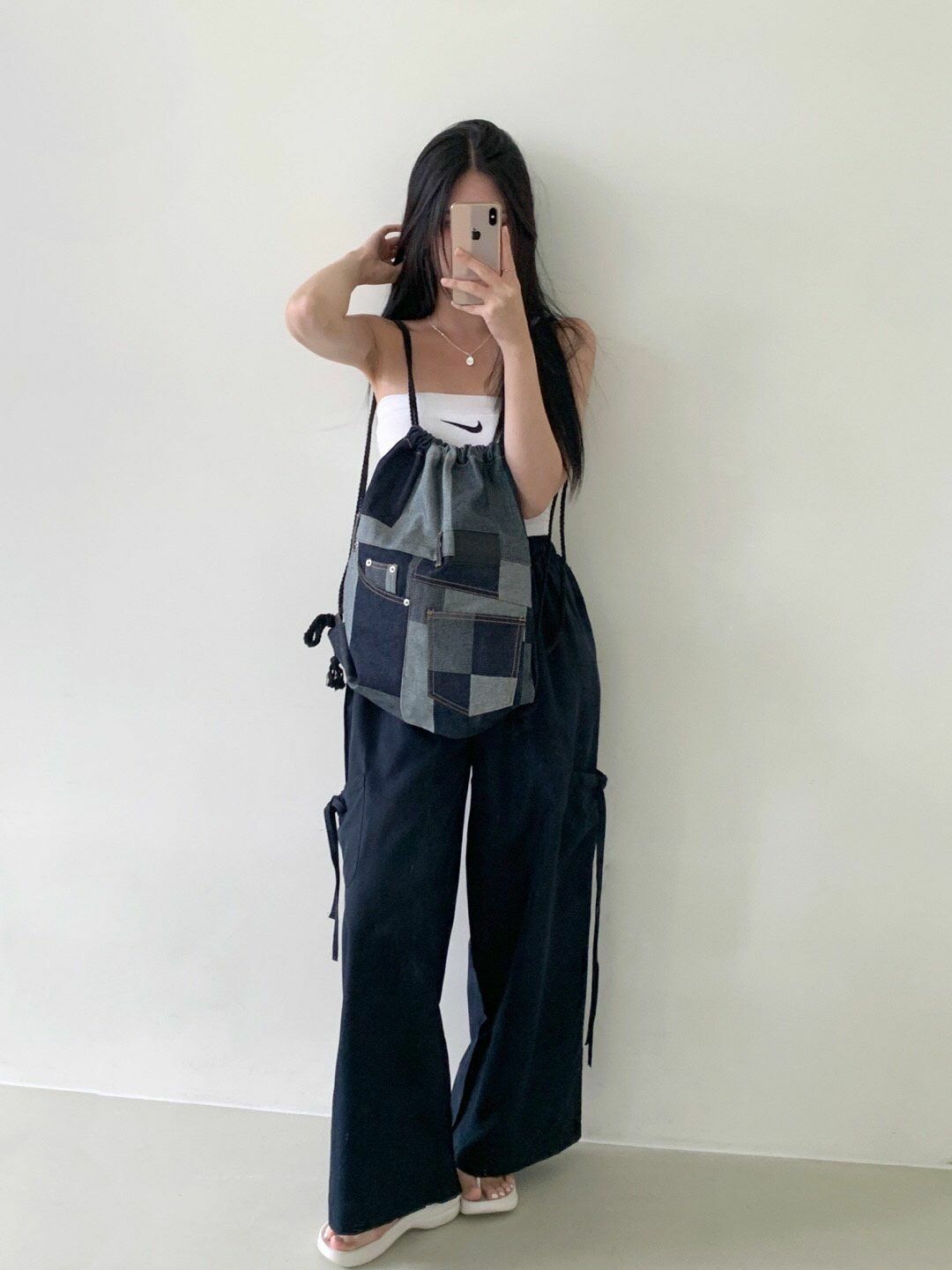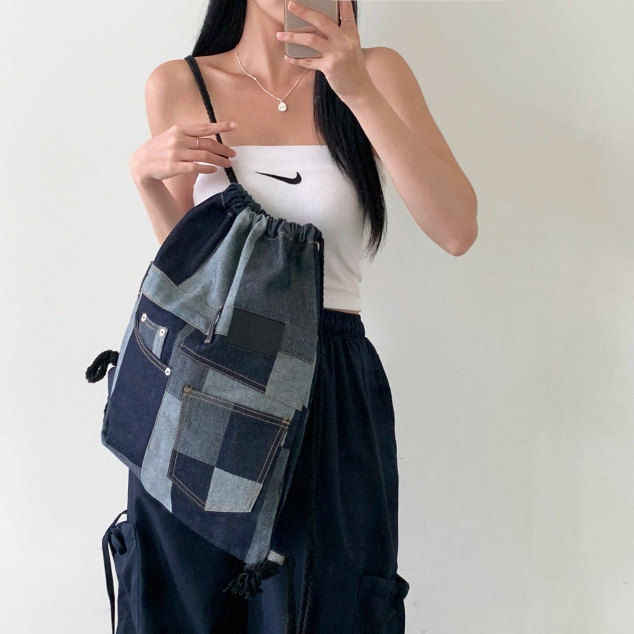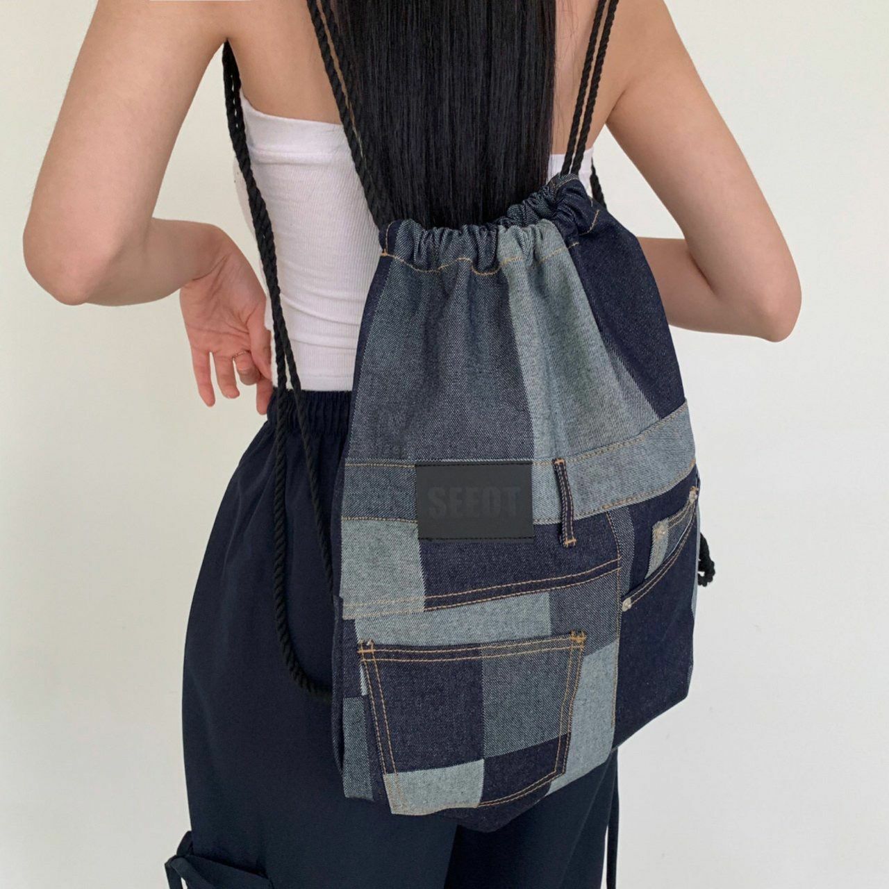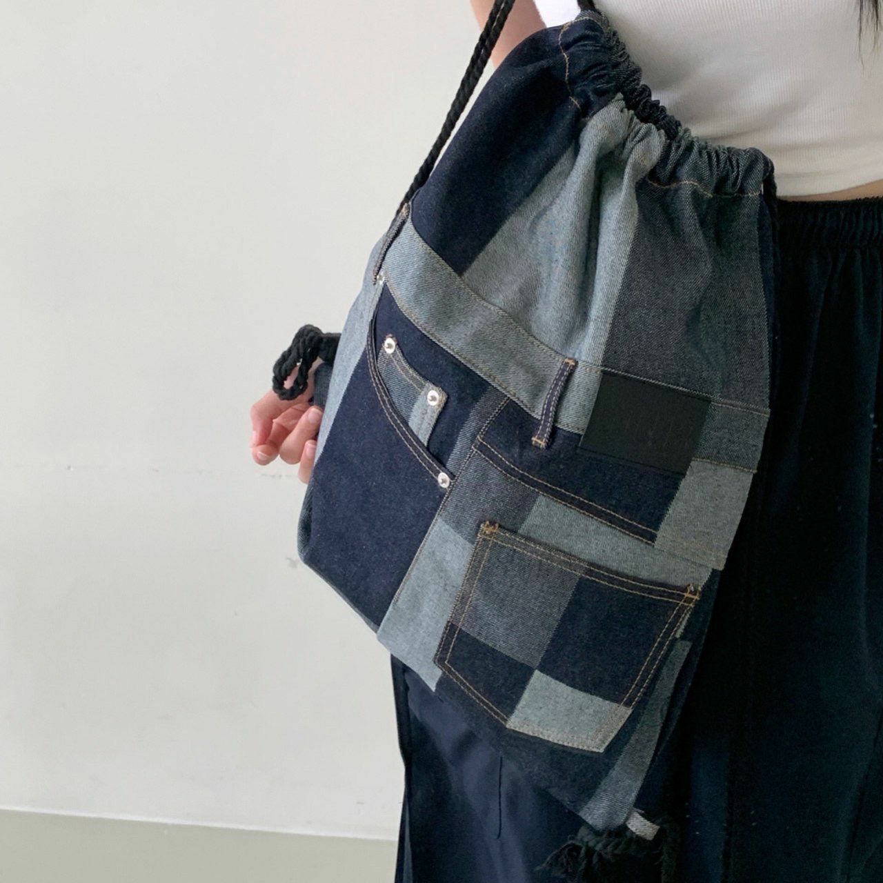 拼色牛仔索口背囊 Seeot-001B