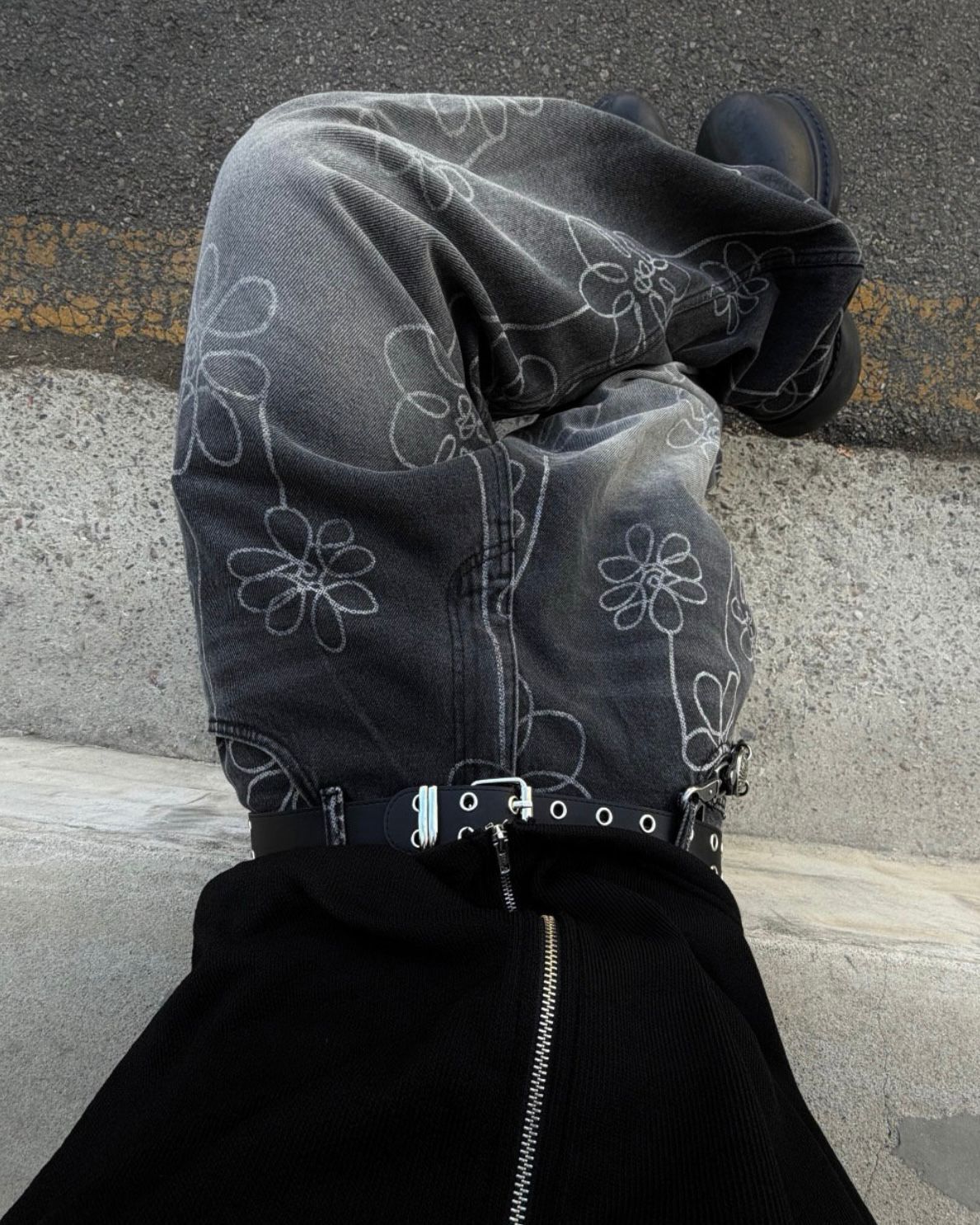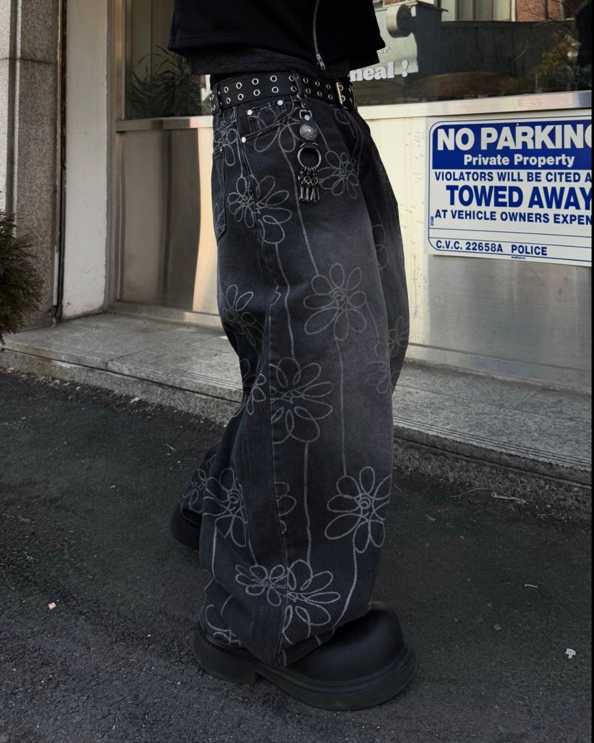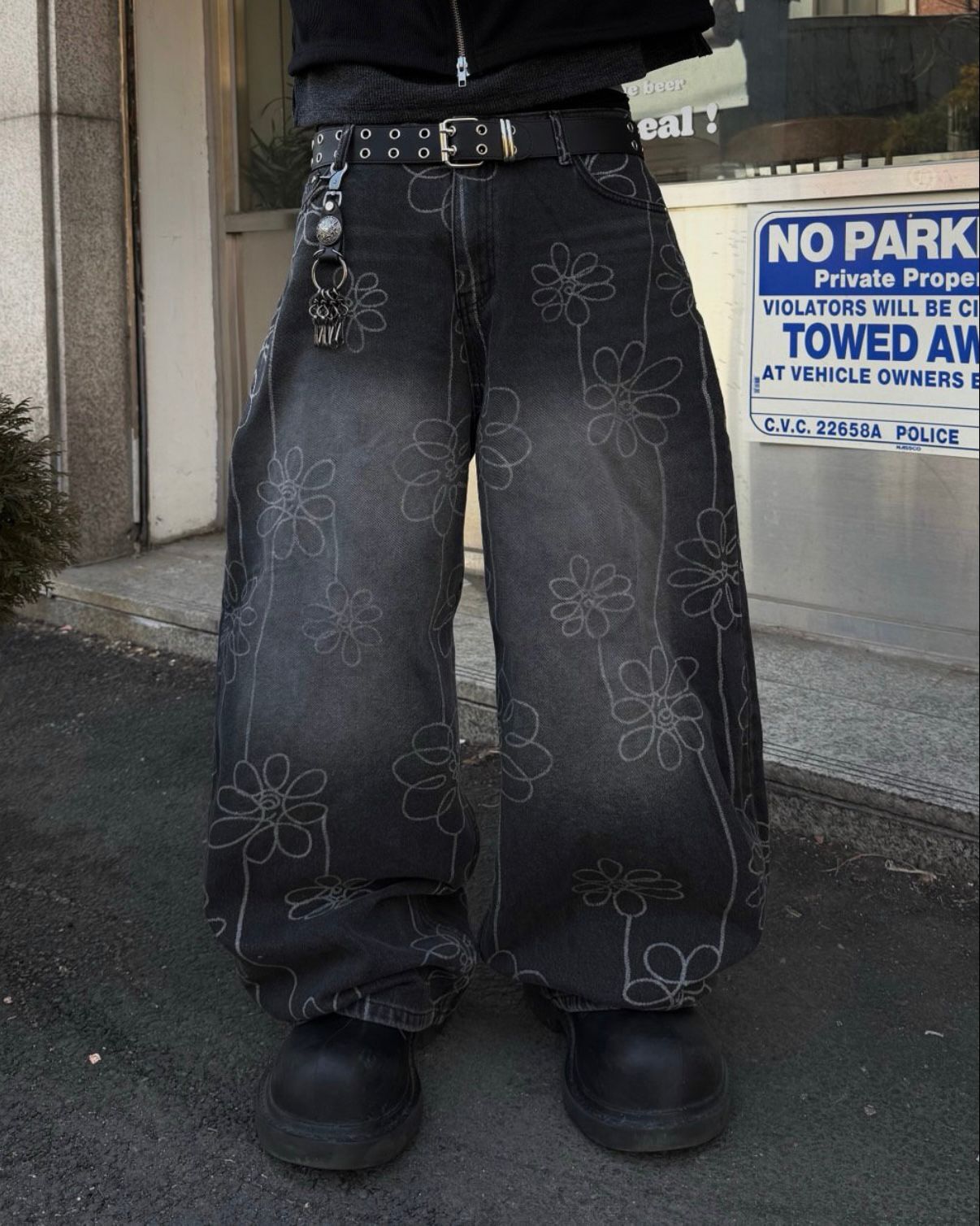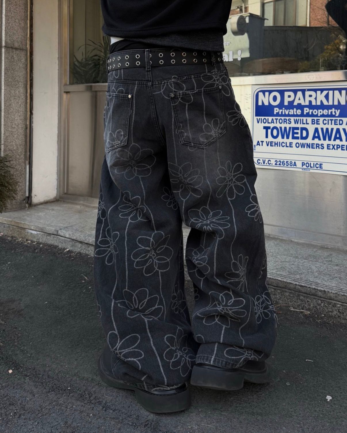 洗水花花圖案鬆身牛仔褲 Seeot-105P