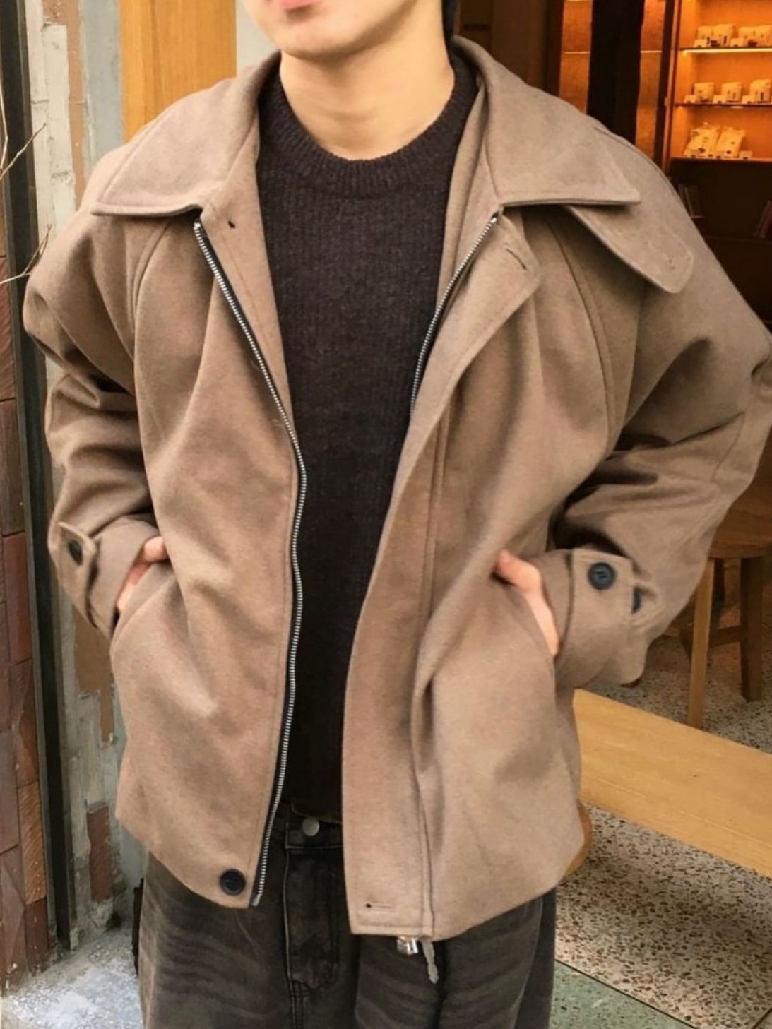 淨色反領拉鍊外套 SENSES-004JK