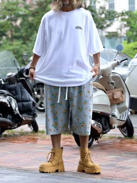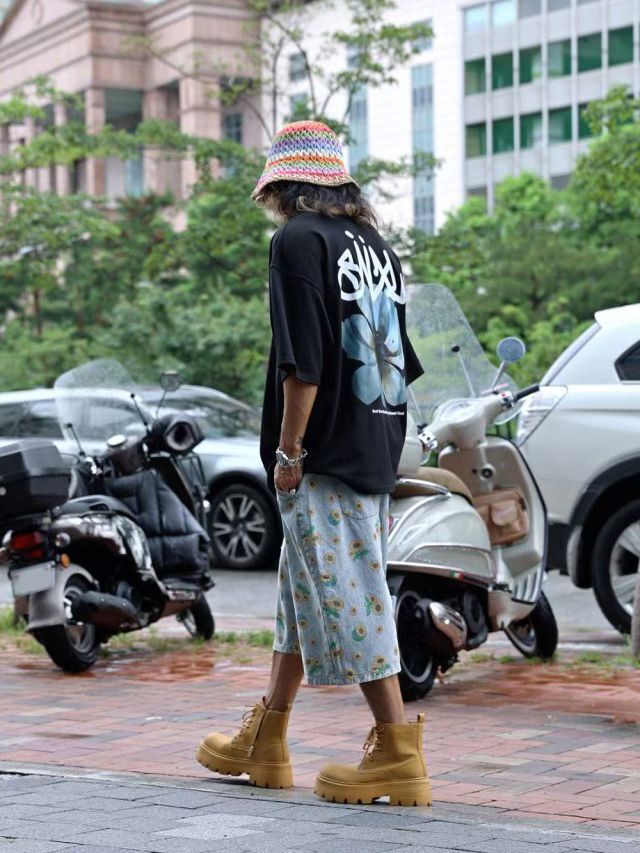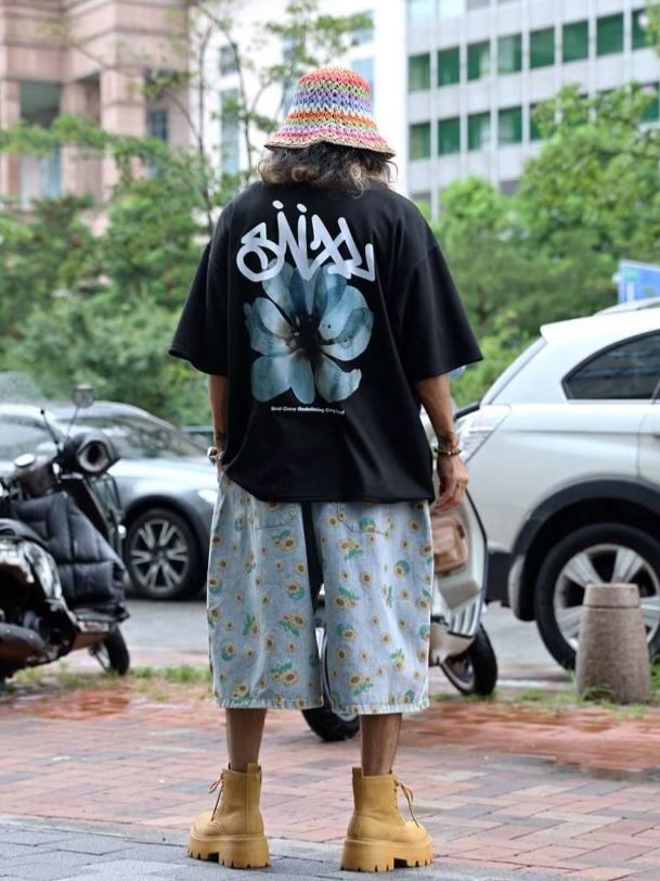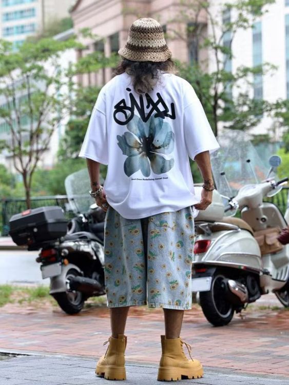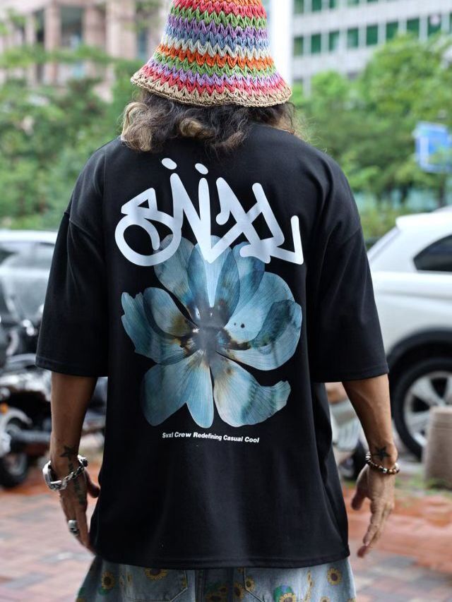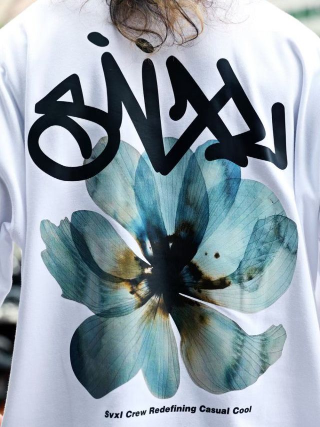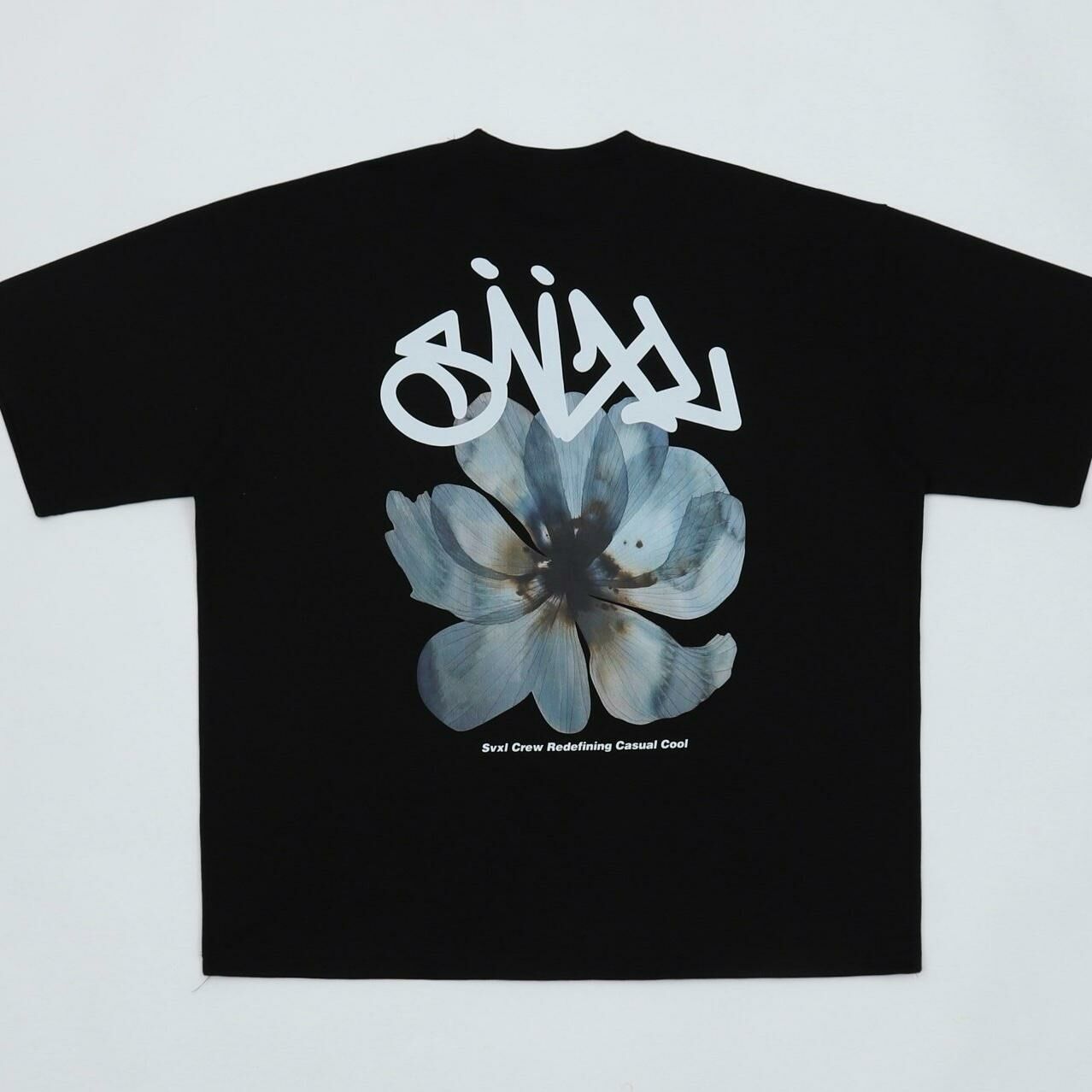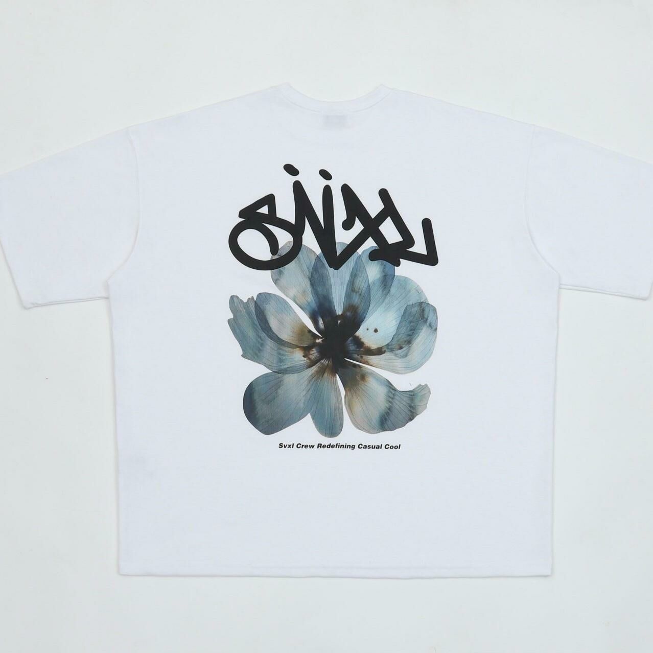 OverSize英文字花花圖案短袖Tee SVXL-060T