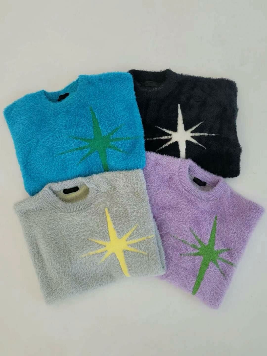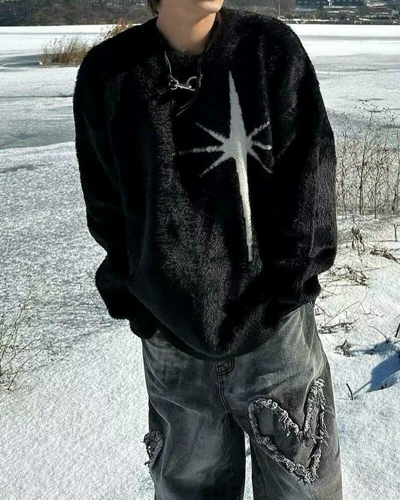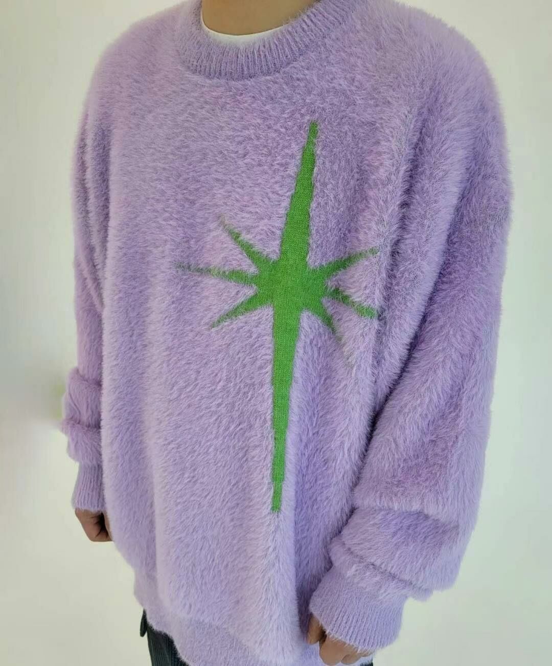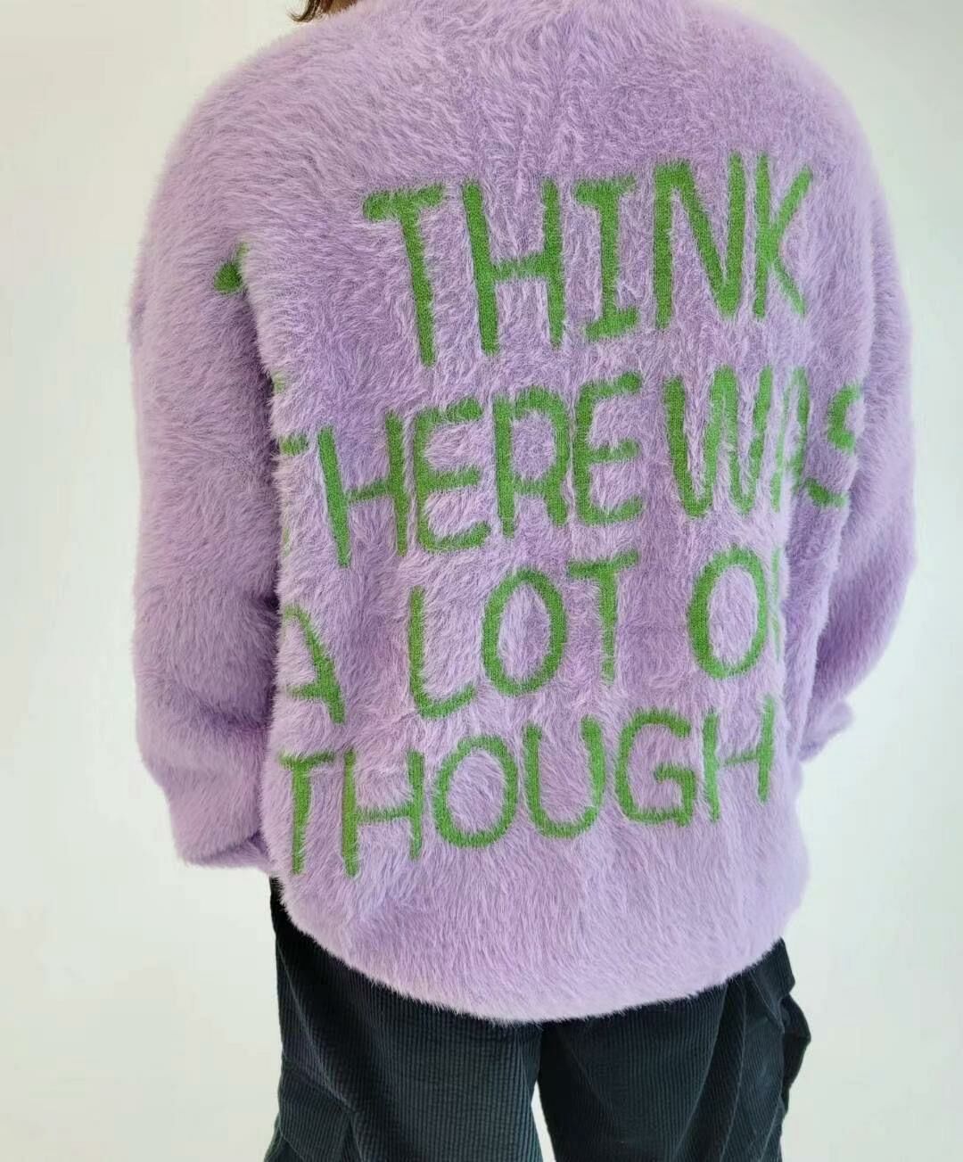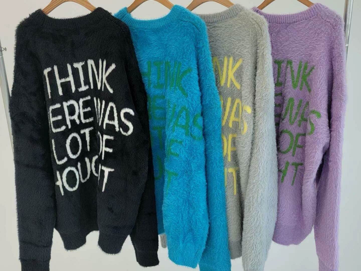 圓領英文字圖案毛毛針織衫 T5320