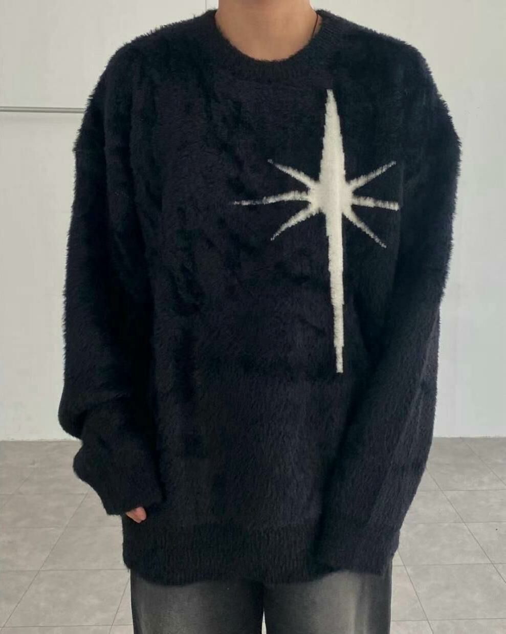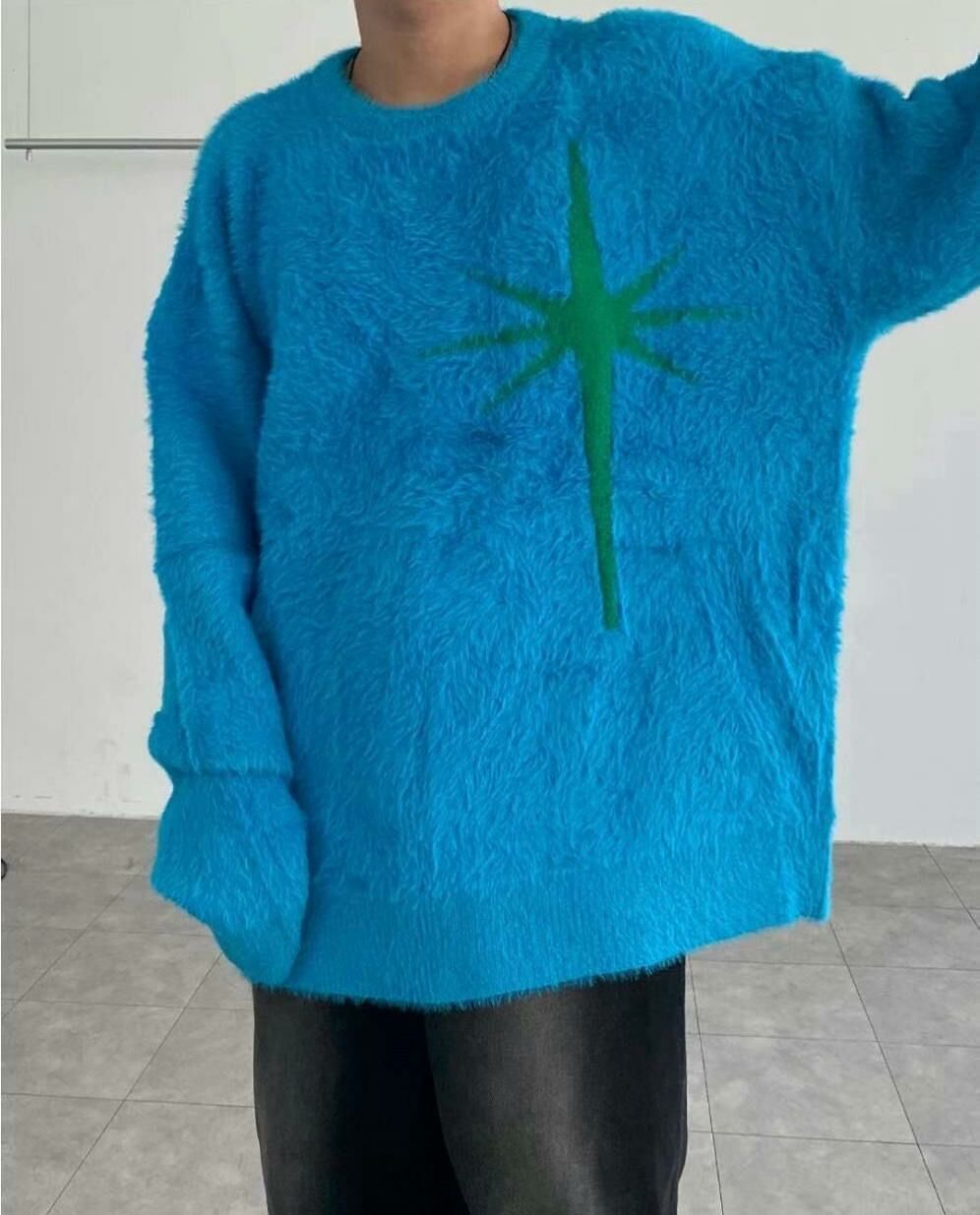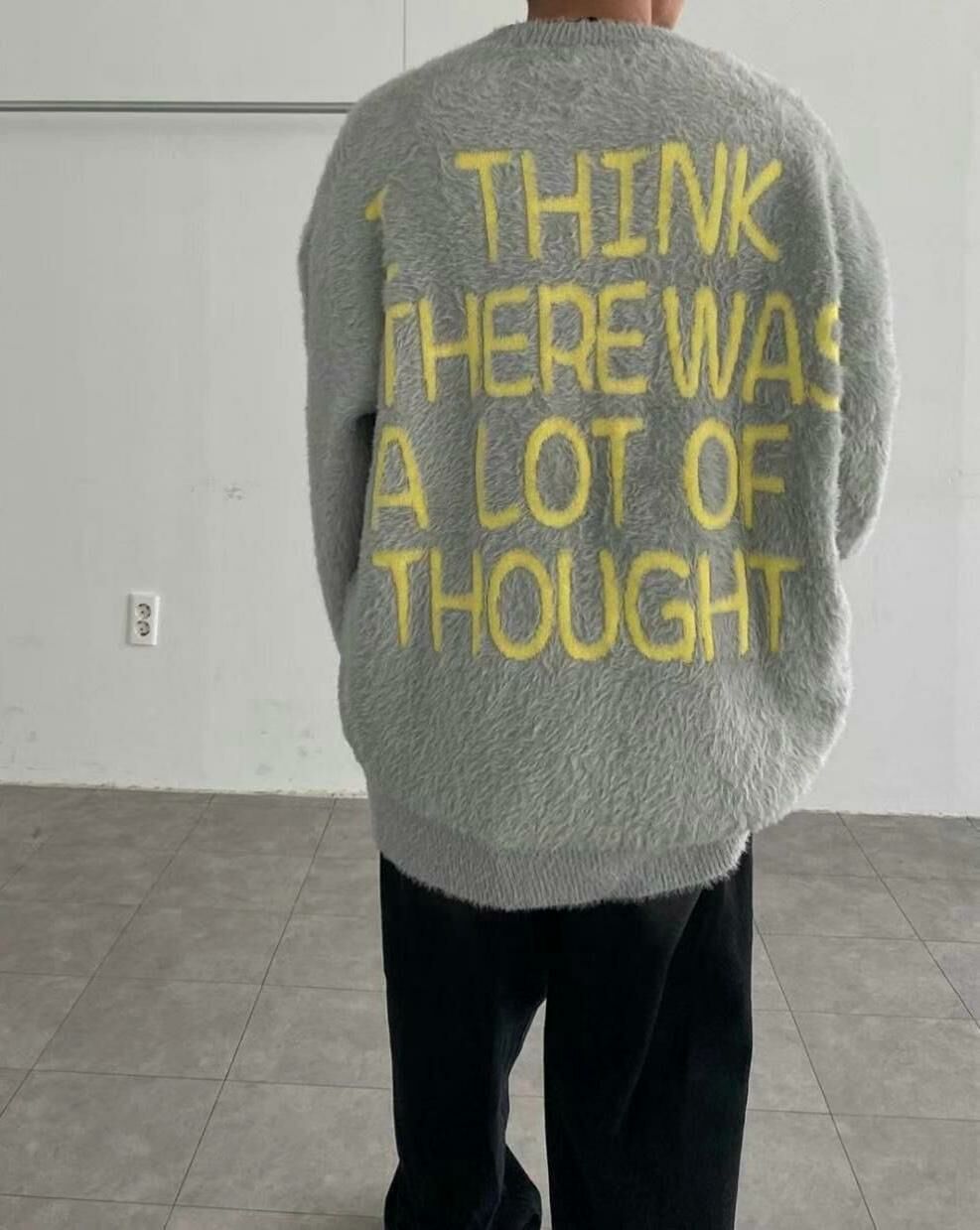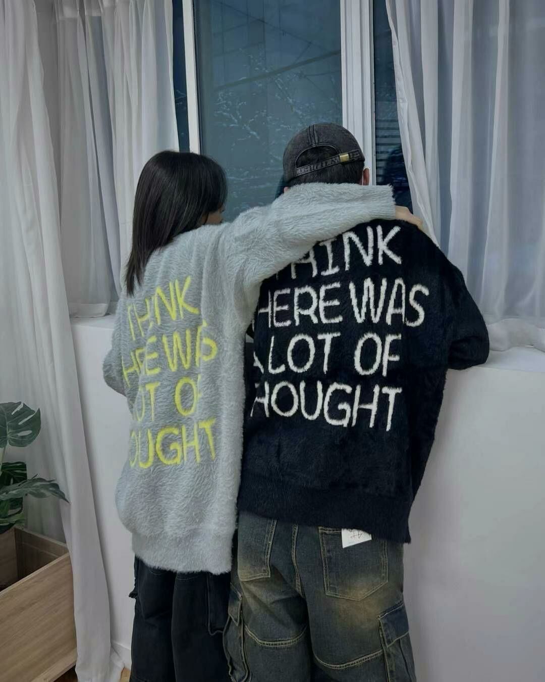 圓領英文字圖案毛毛針織衫 T5320