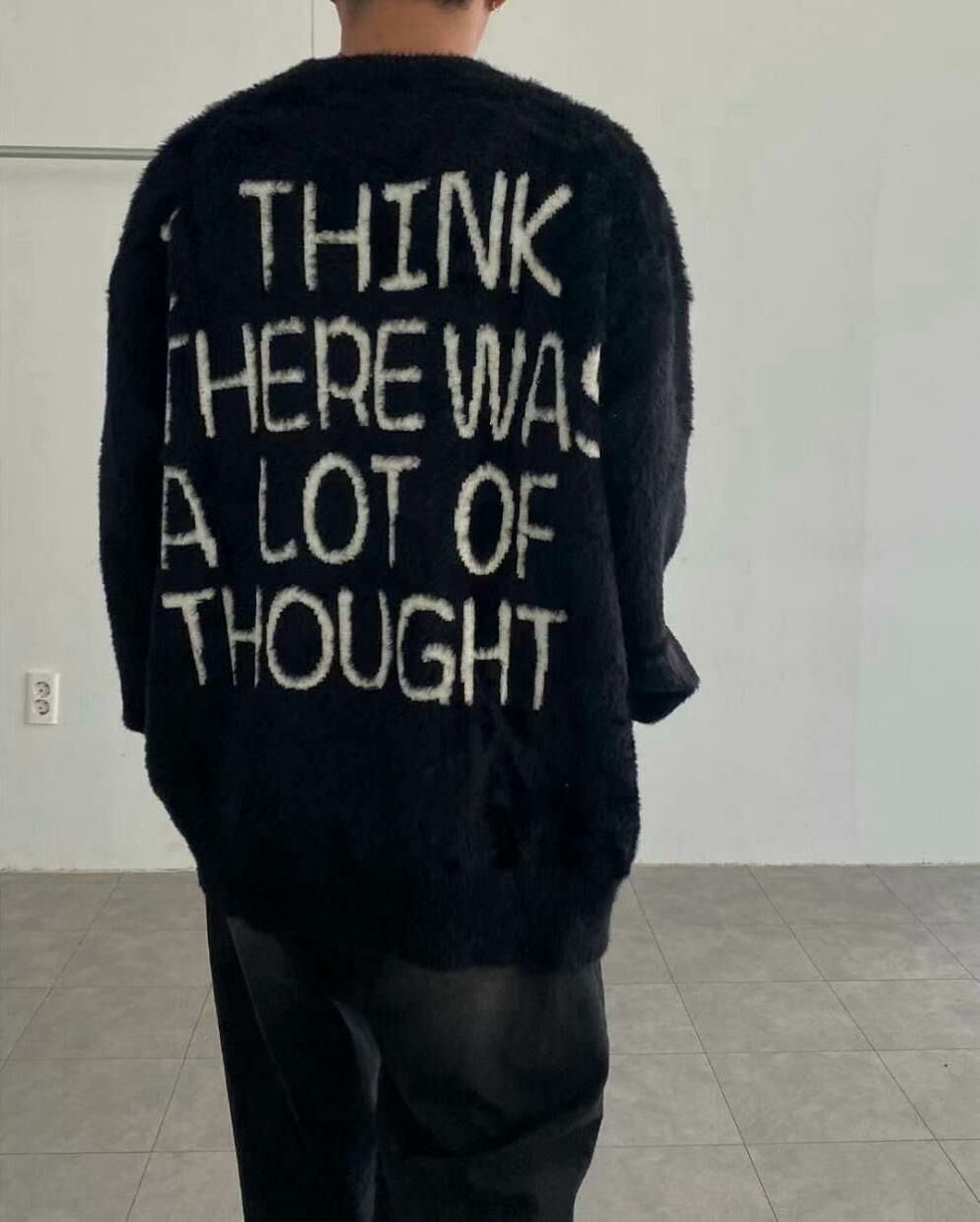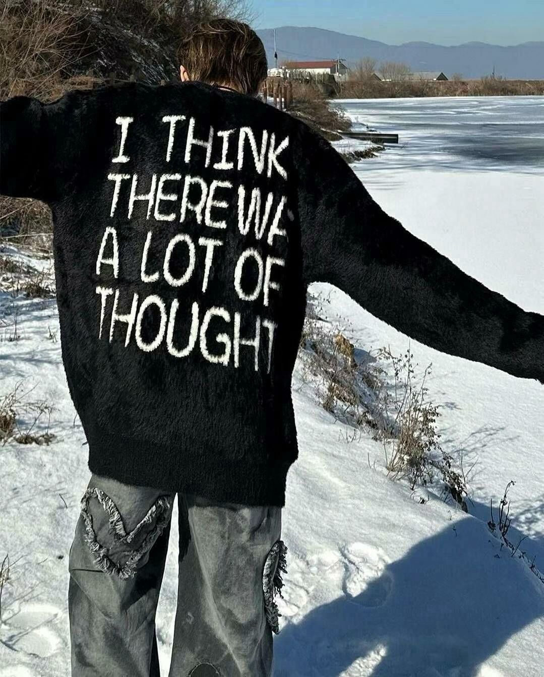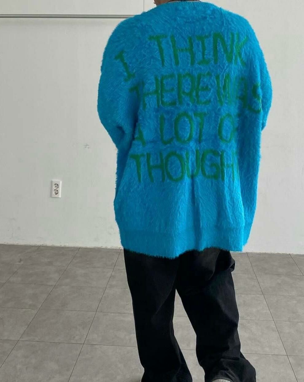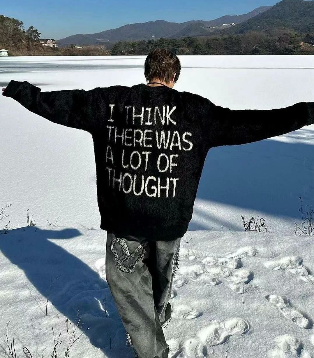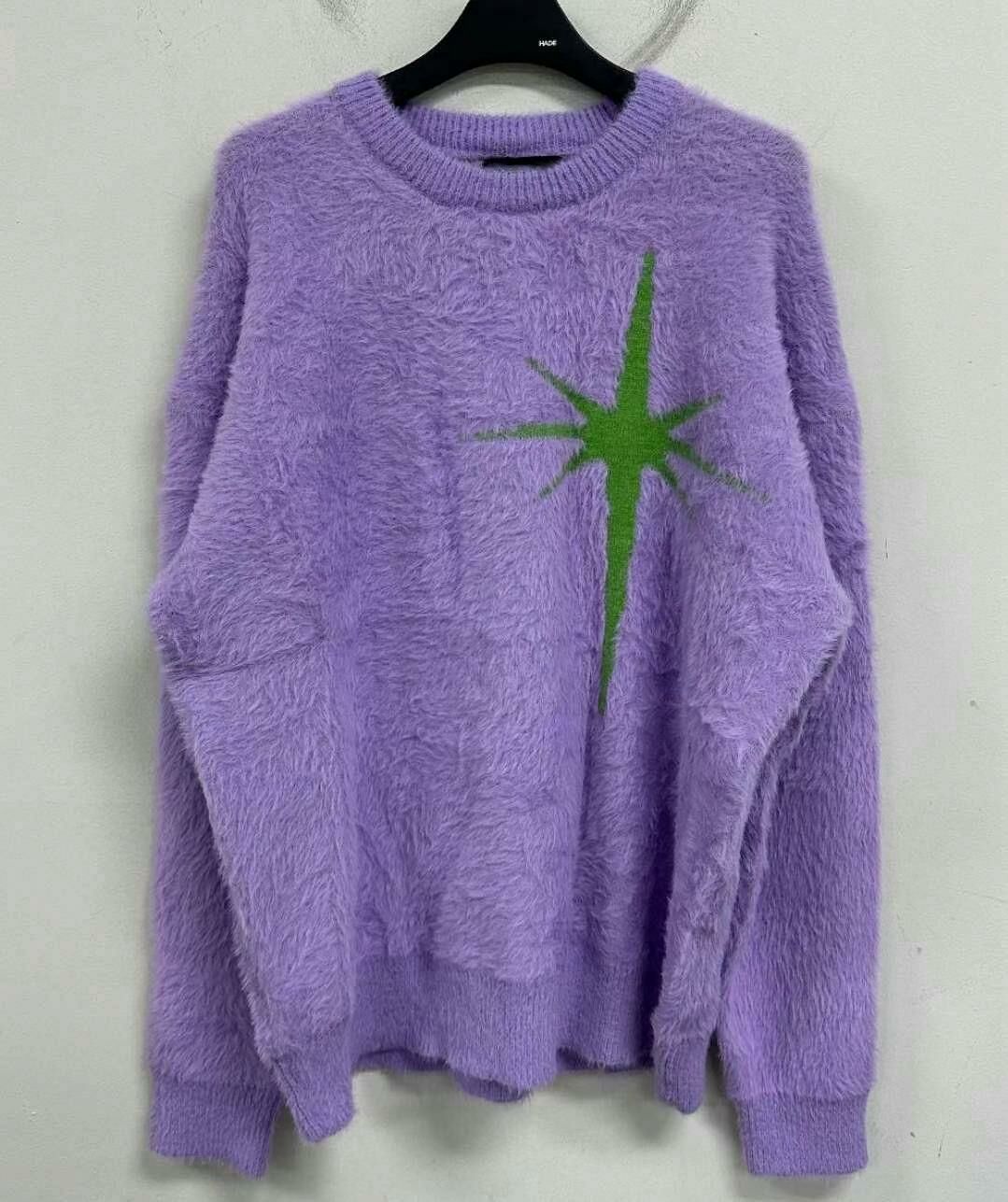 圓領英文字圖案毛毛針織衫 T5320
