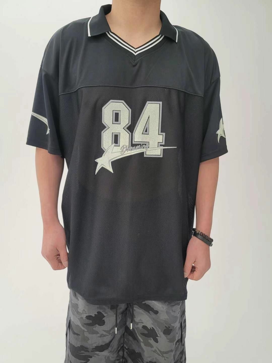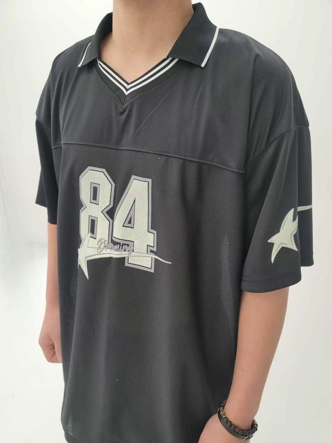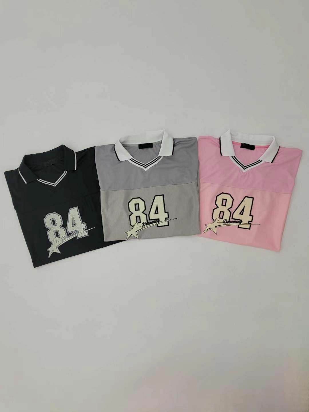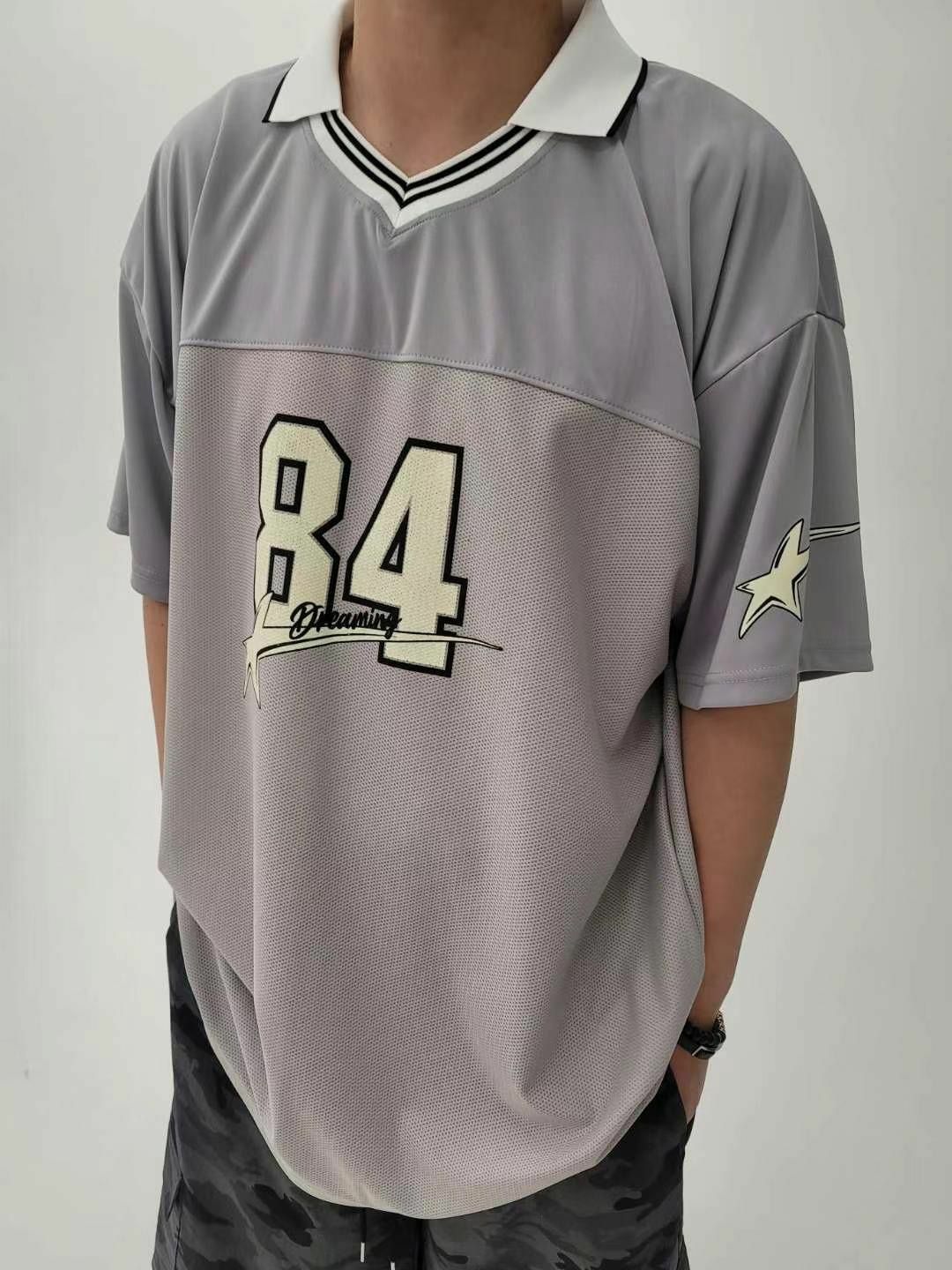 反V領數字圖案短袖Tee T5380